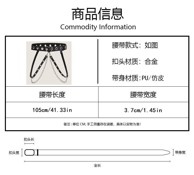 Cinturón de hebilla de amor transfronterizo hip hop estilo cóncavo cinturón colgante falda corta uniforme jk cadena de cintura de cadena de chica oscura