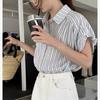 Camisa de protección solar a rayas para mujer, estilo vintage francés de verano, estilo cárdigan fino, abrigo, top de moda