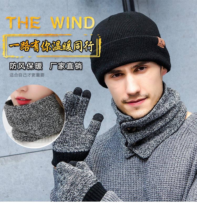 Otoño e invierno 2023 nuevos bufanda para amantes para hombre y mujer, gorro de punto, guantes para pantalla táctil, juego de tres piezas para regalo, explosiones de Taobao