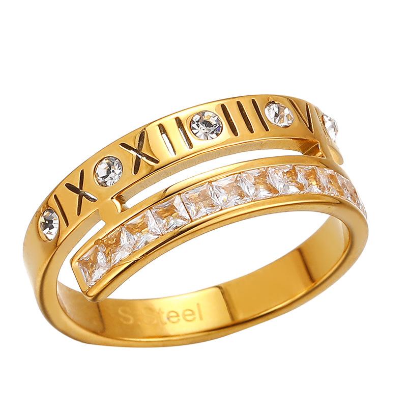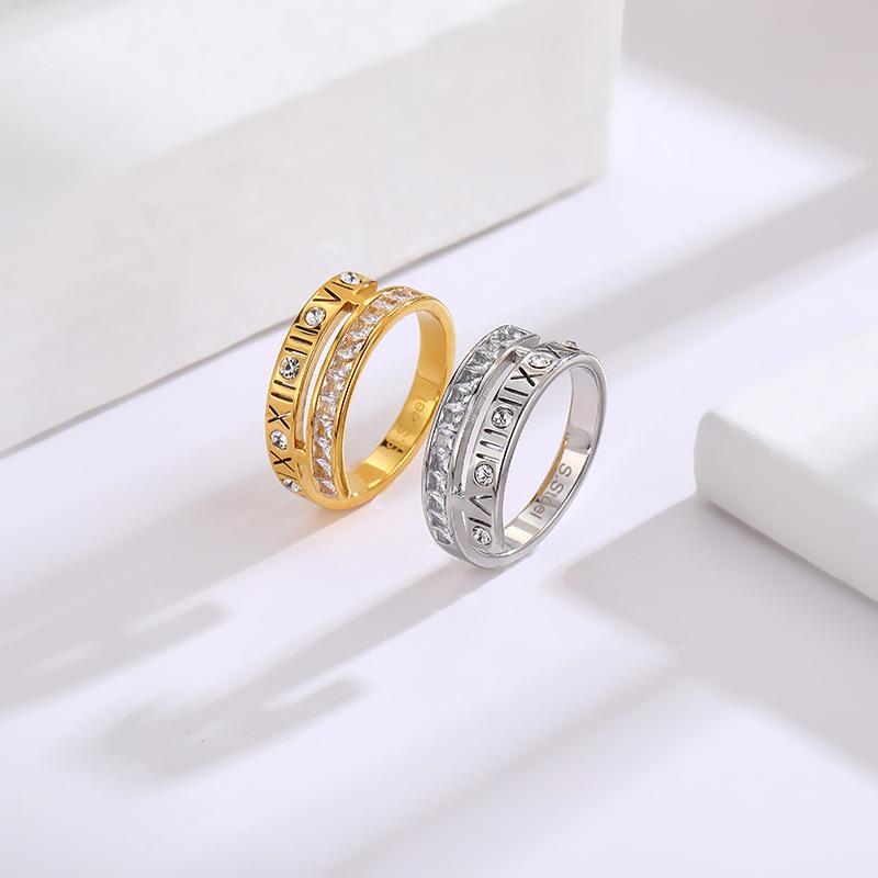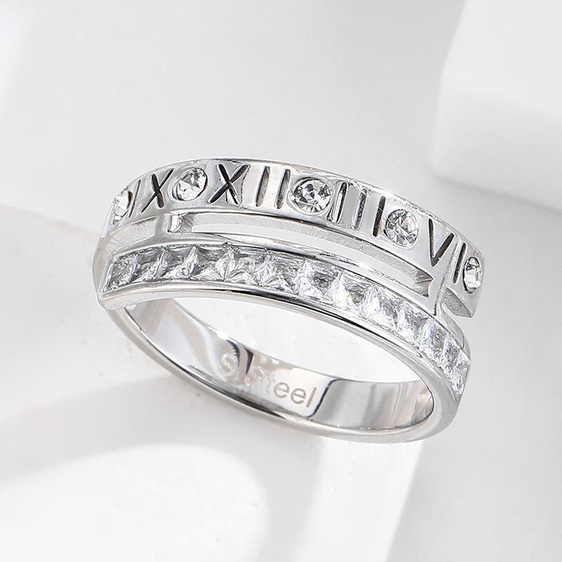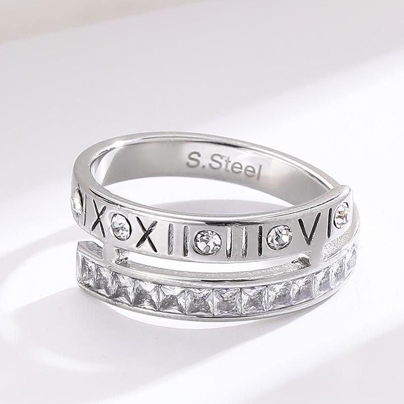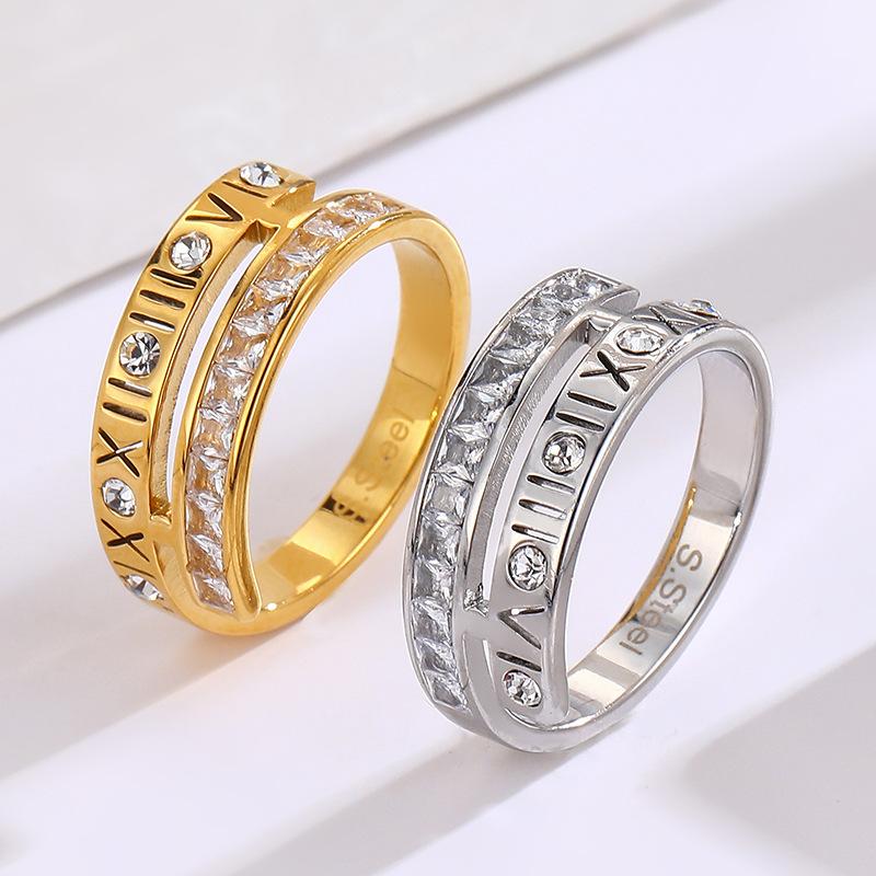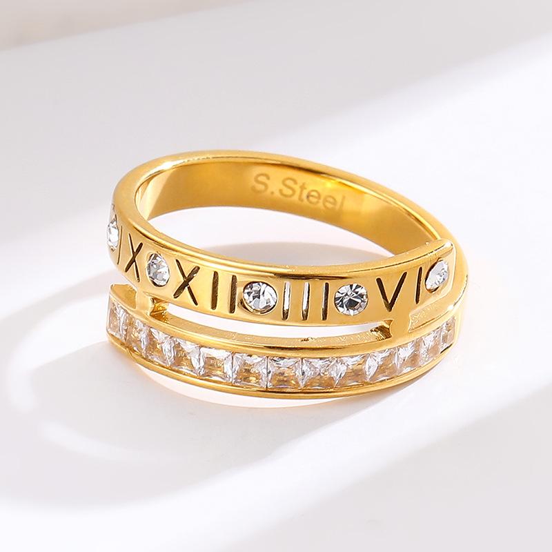 Suministro de comercio electrónico transfronterizo de anillo de circonita digital romana de acero inoxidable que conserva el color de la moda europea y americana popular