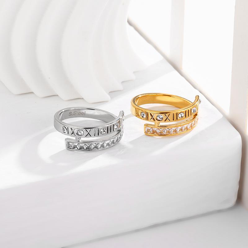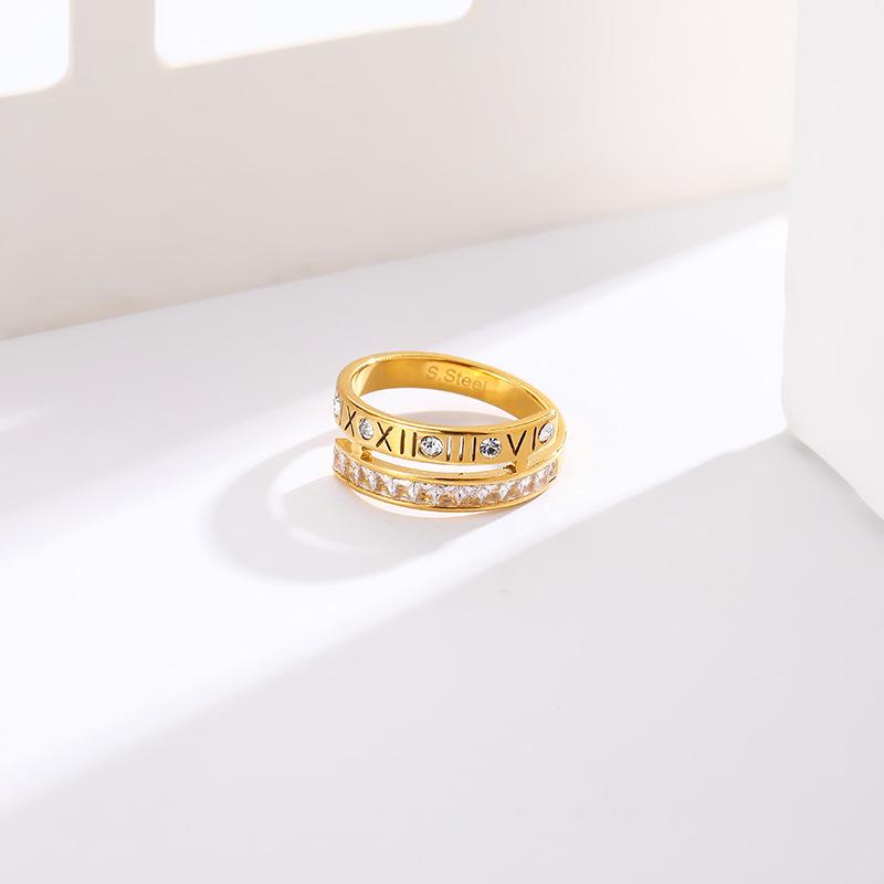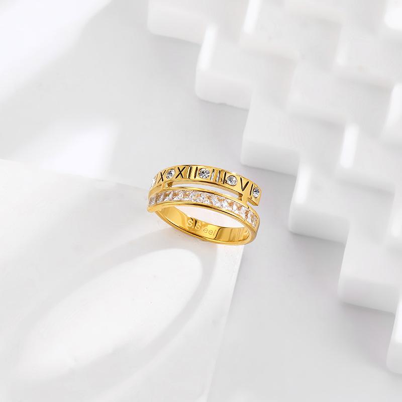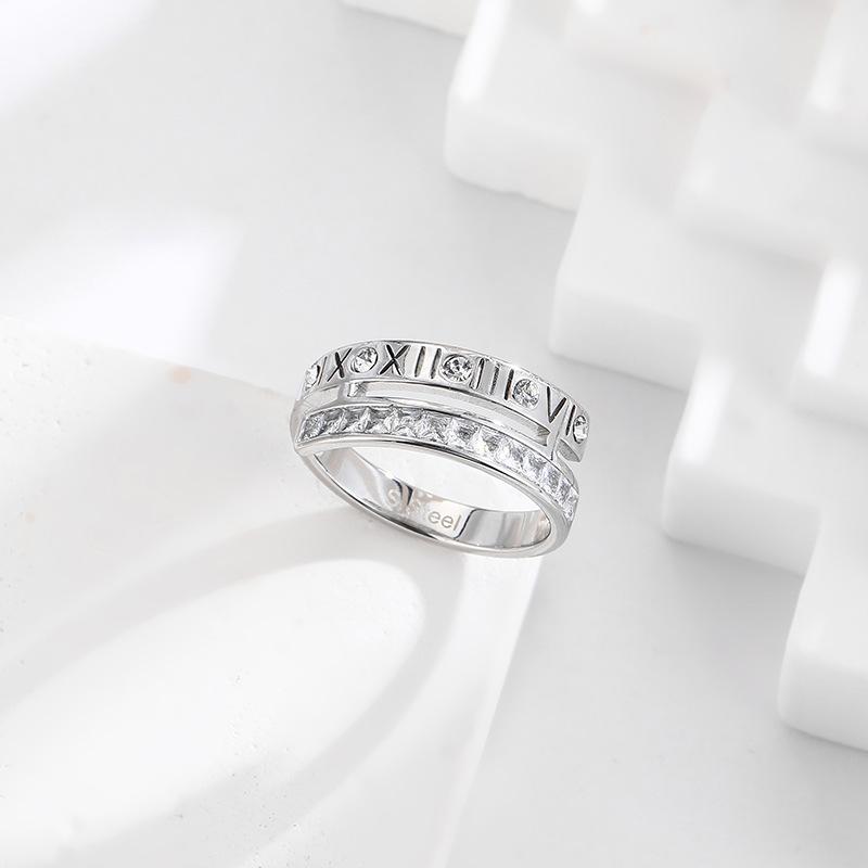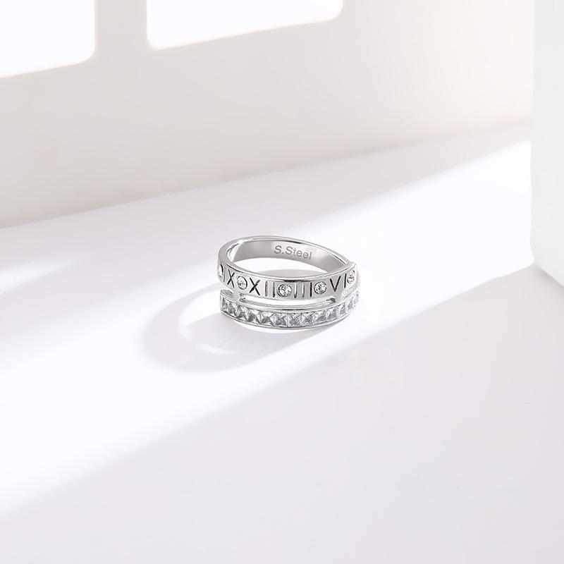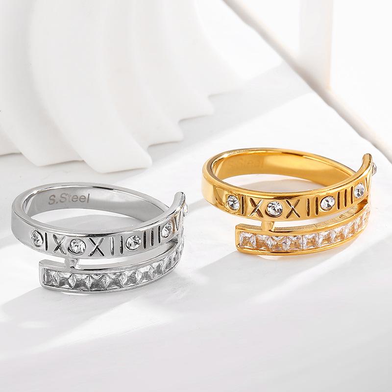 Suministro de comercio electrónico transfronterizo de anillo de circonita digital romana de acero inoxidable que conserva el color de la moda europea y americana popular