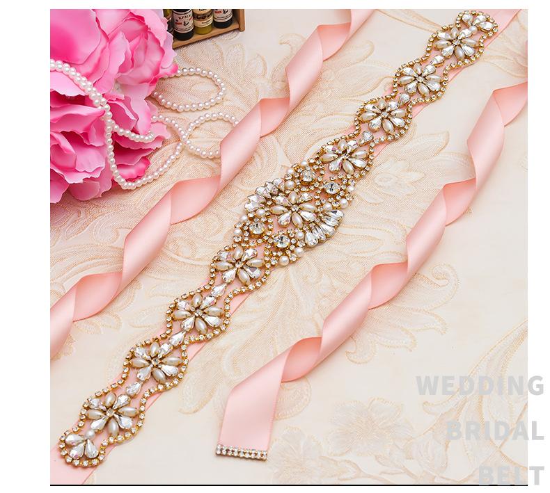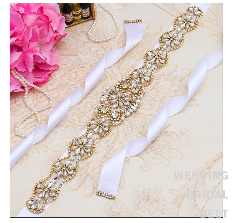 Comercio Exterior Nuevo Cinturón de Seda con Cuentas y Pedrería Cosido a Mano Moda Vestido de Novia Sello de Cintura Cristal Perla Cinturón Nupcial