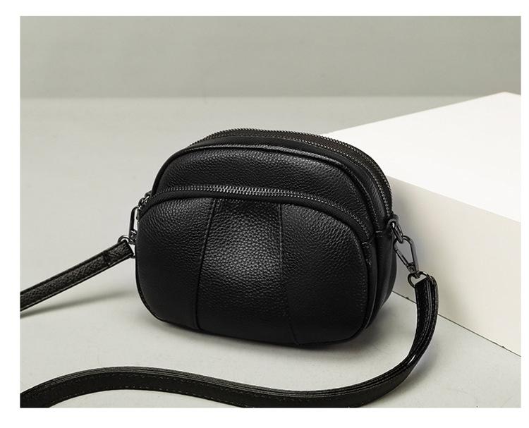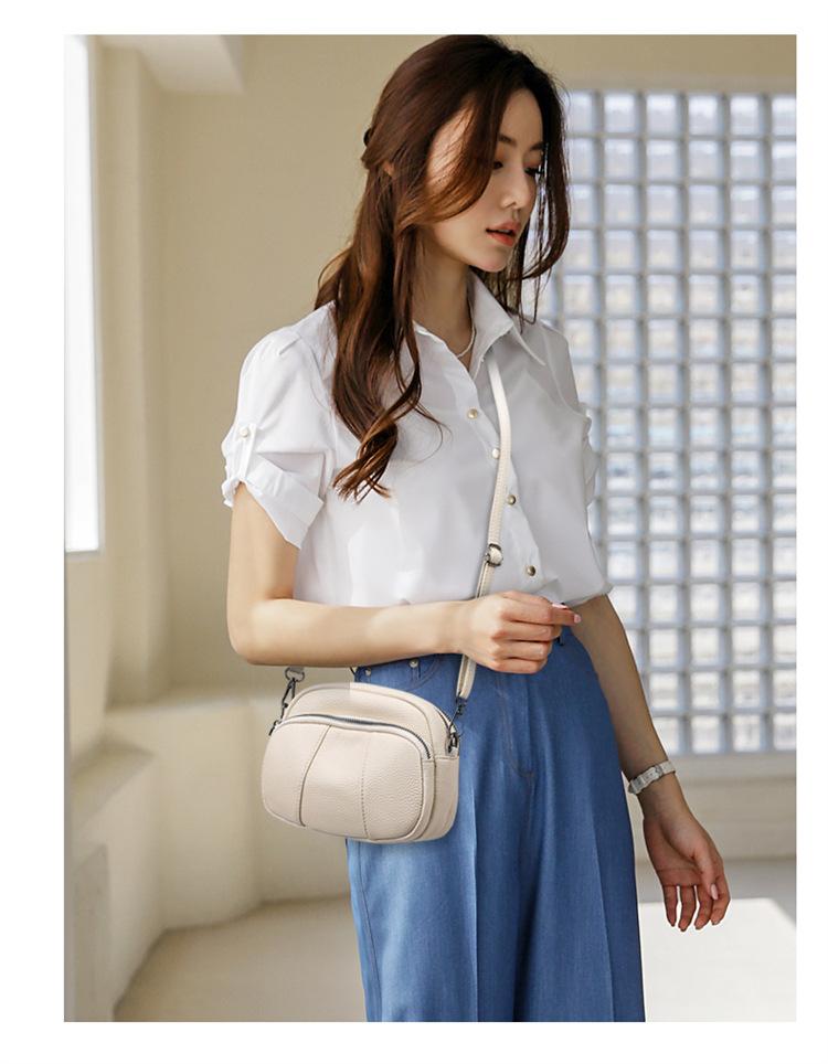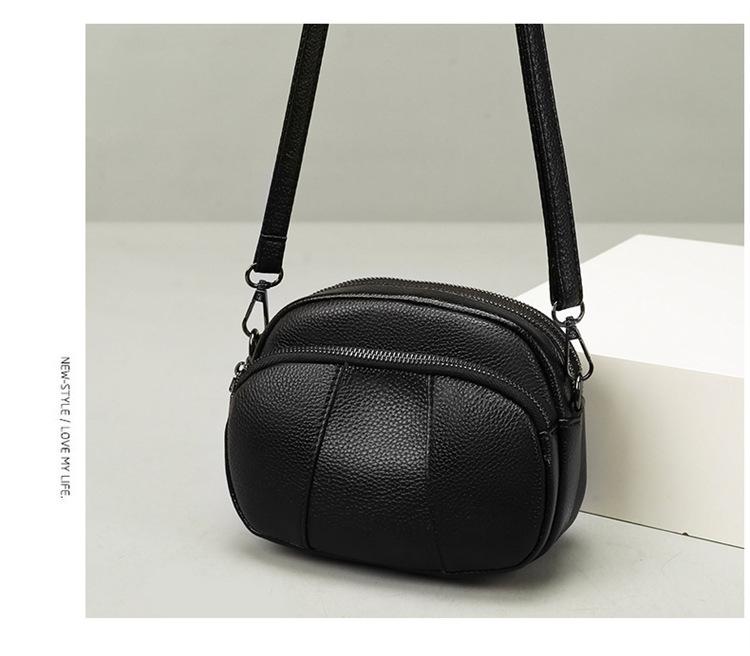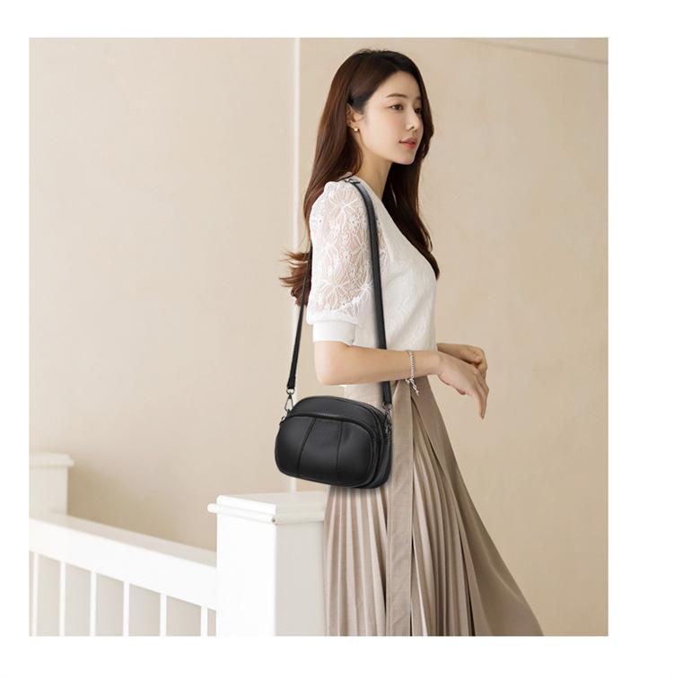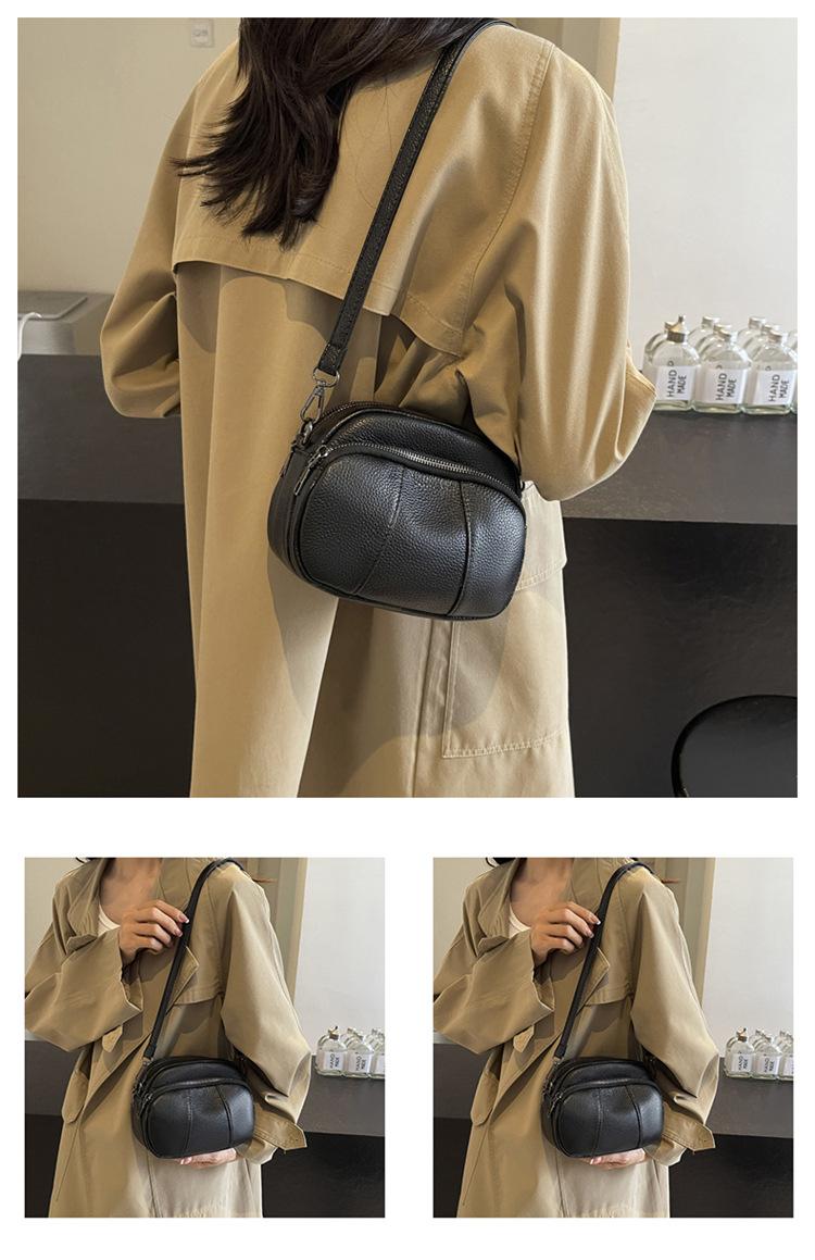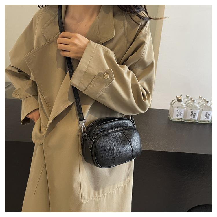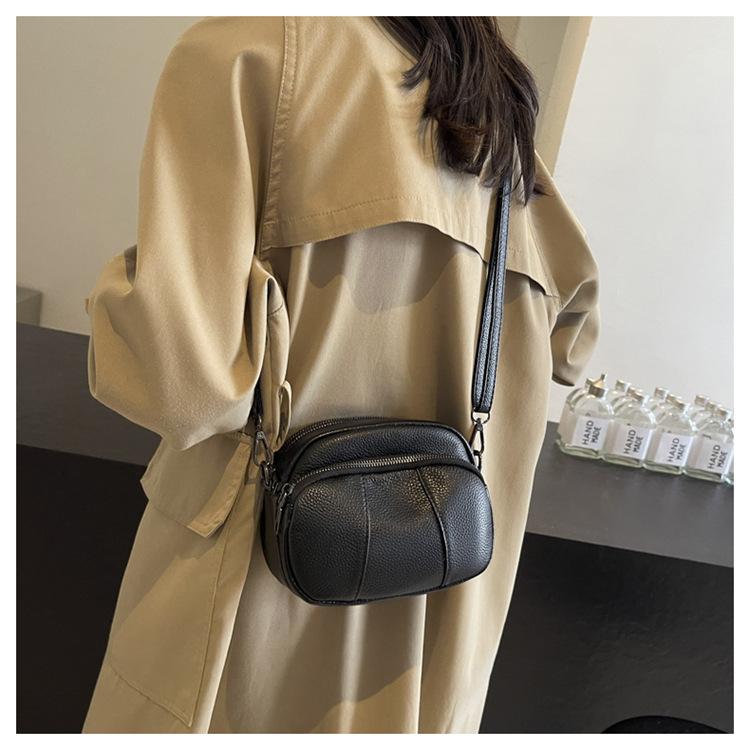 Bolso de Piel de Vacuno de Primera Capa para Mujer con Cremallera de Tres Capas 2025 Nueva Moda Bolso de Hombro de Cuero Genuino Bolso Bandolera Bolso Pequeño Casual