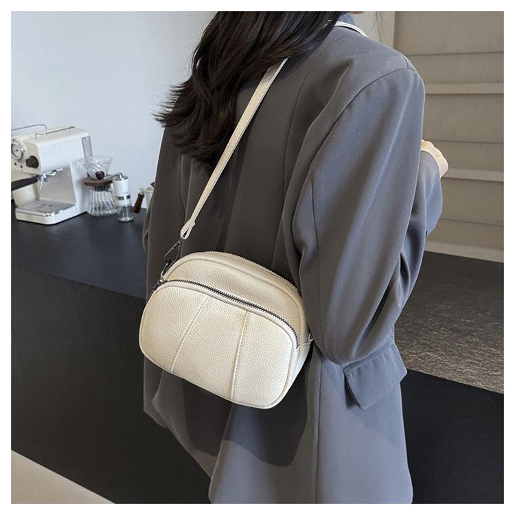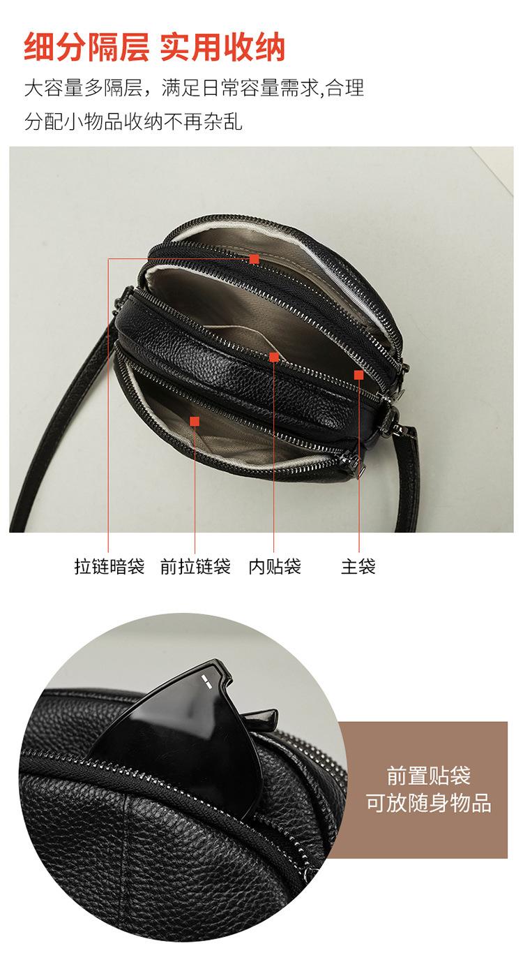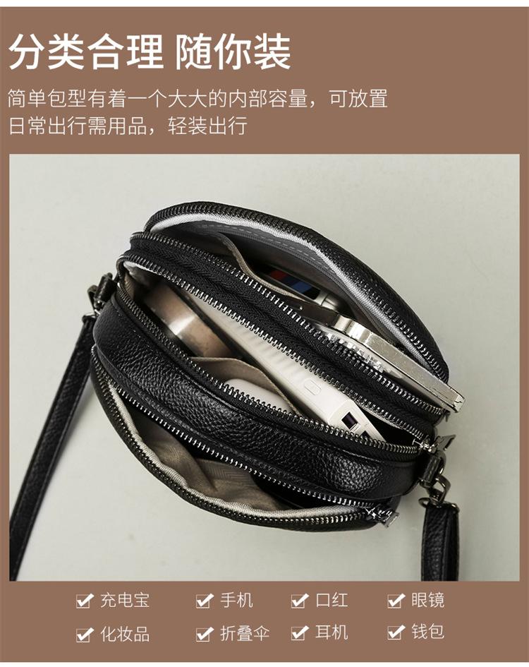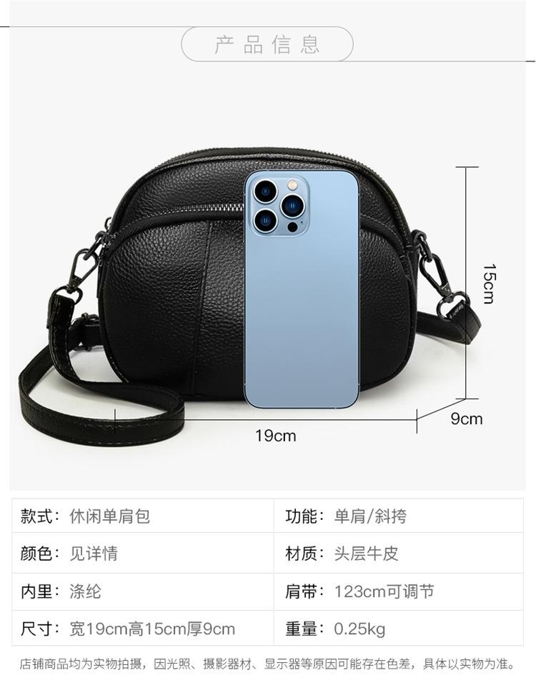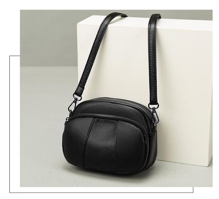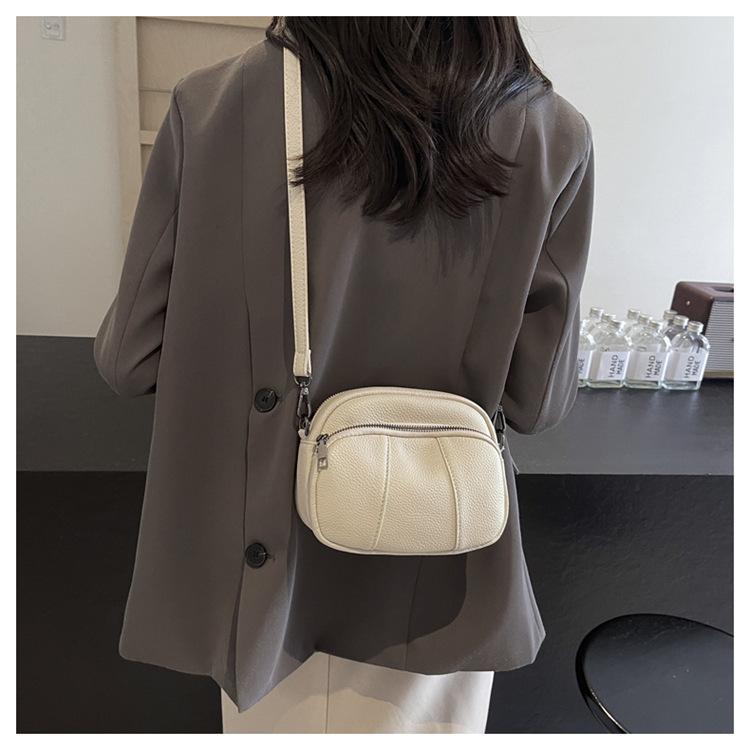 Bolso de Piel de Vacuno de Primera Capa para Mujer con Cremallera de Tres Capas 2025 Nueva Moda Bolso de Hombro de Cuero Genuino Bolso Bandolera Bolso Pequeño Casual