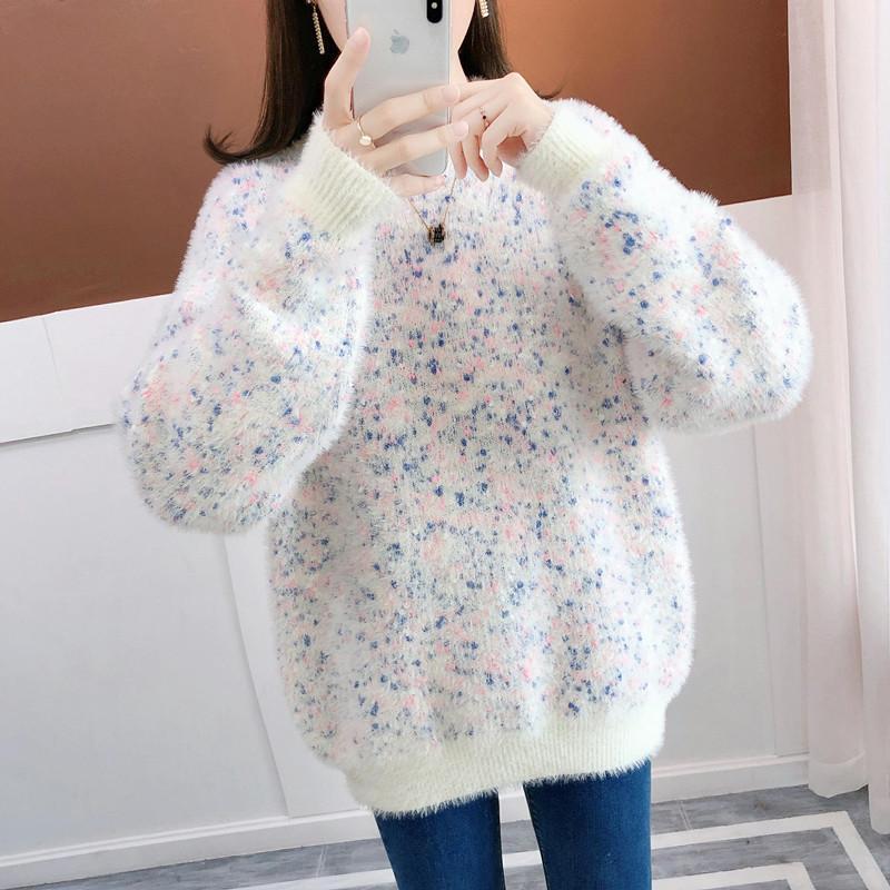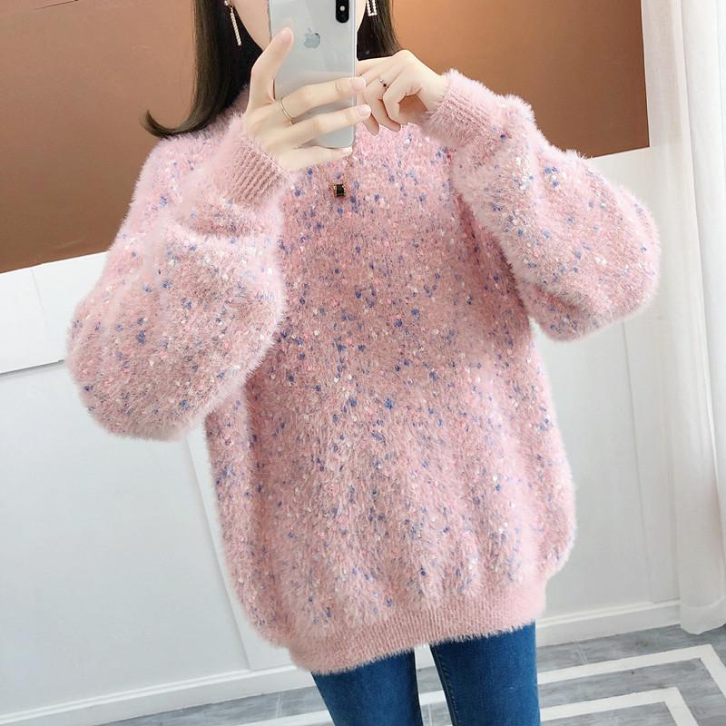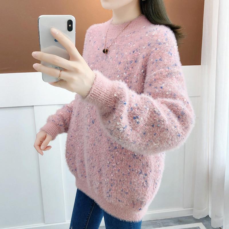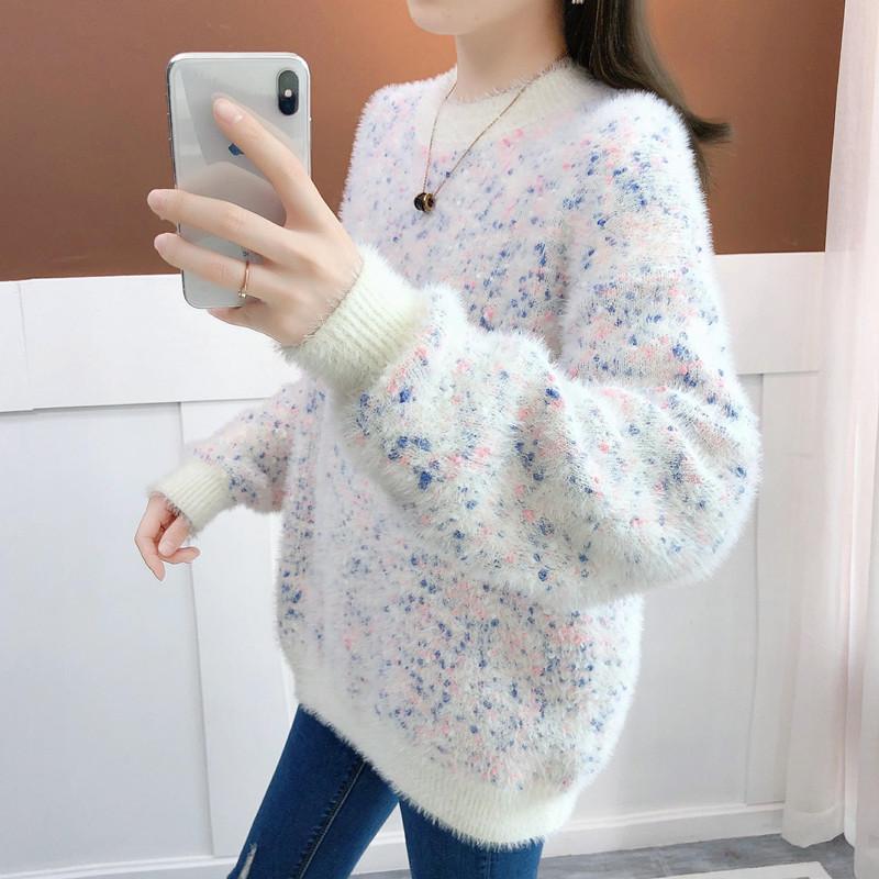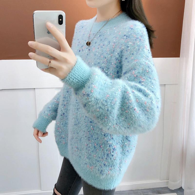 Suéter de estilo coreano, informal, a la moda, combinable, grueso, cálido, con cuello redondo, de imitación de visón y cachemira, para mujer, otoño e invierno.