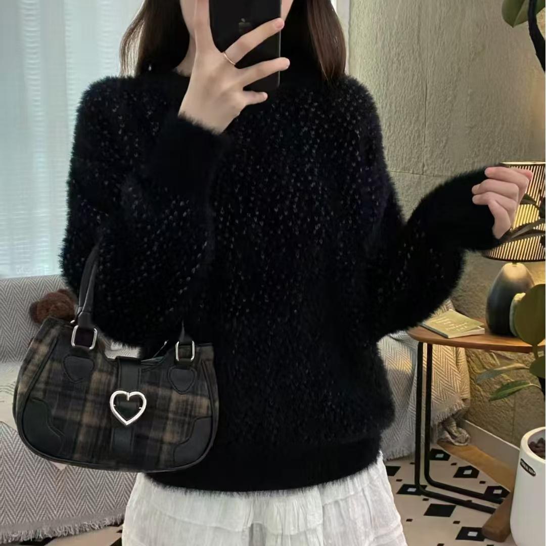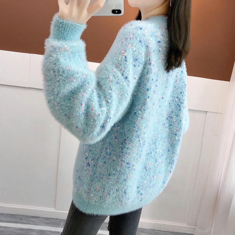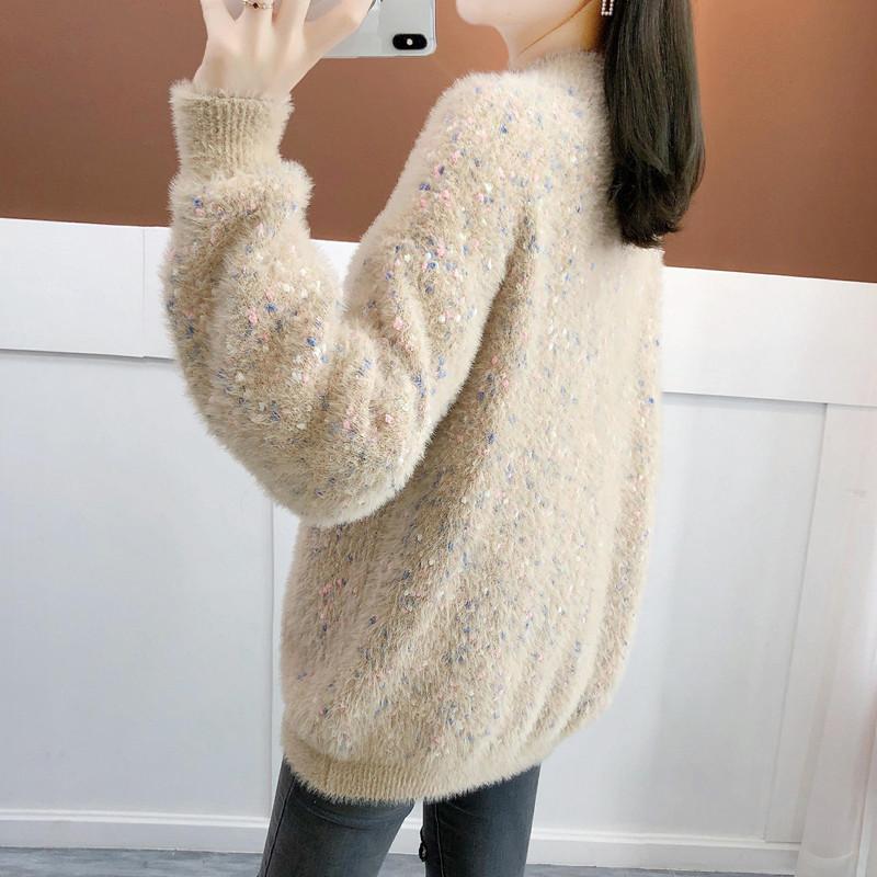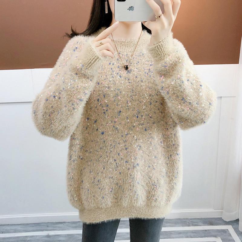 Suéter de estilo coreano, informal, a la moda, combinable, grueso, cálido, con cuello redondo, de imitación de visón y cachemira, para mujer, otoño e invierno.