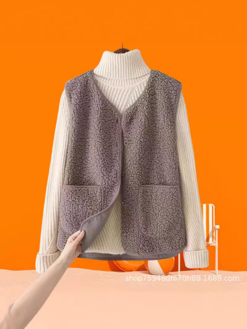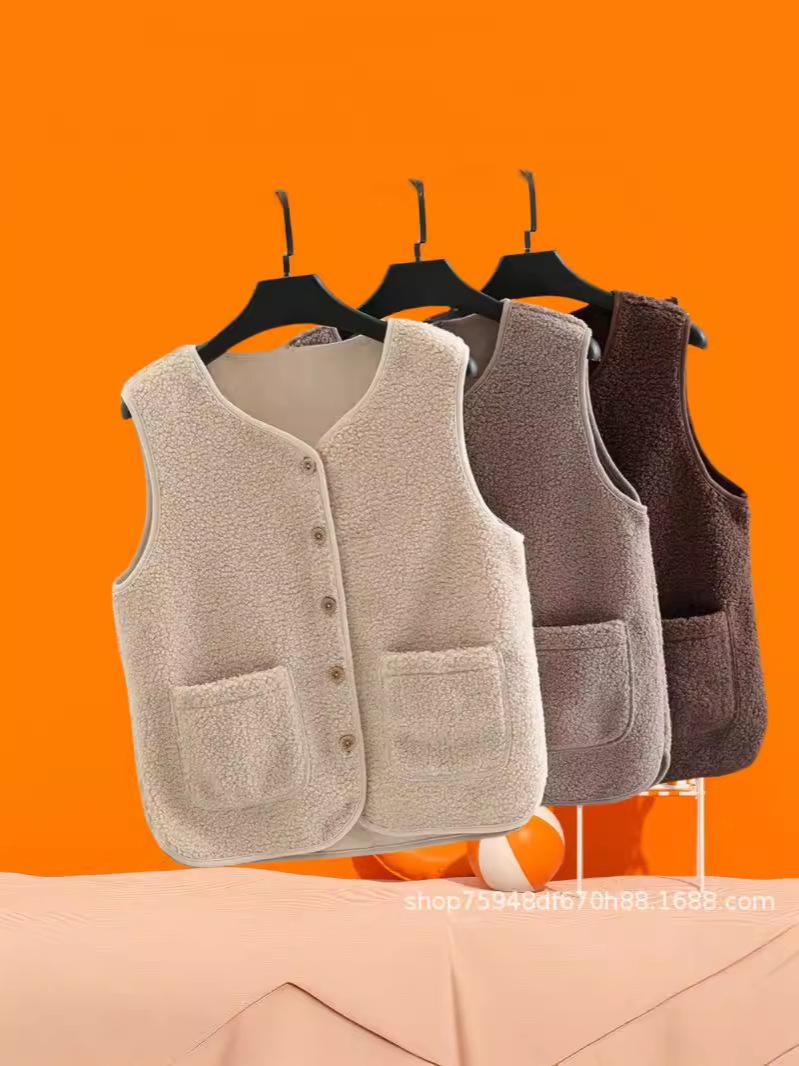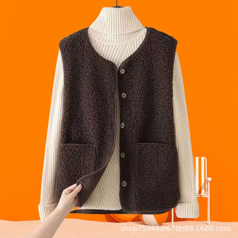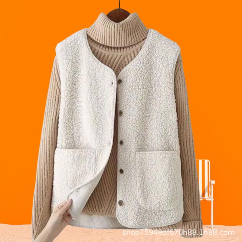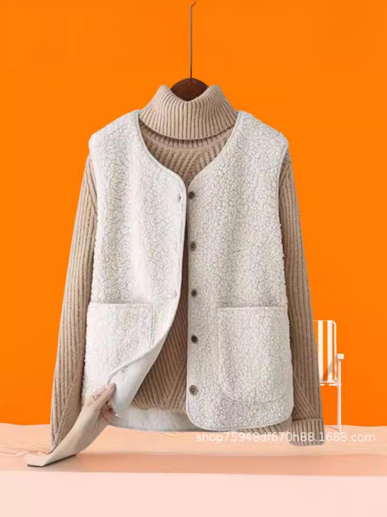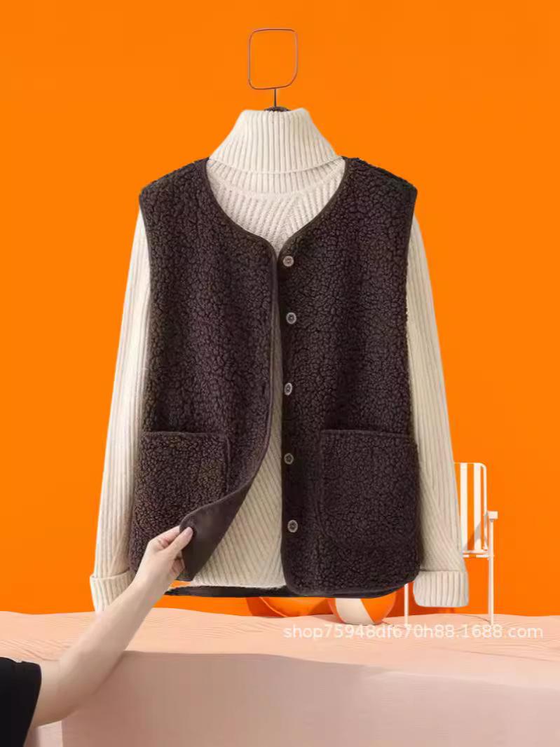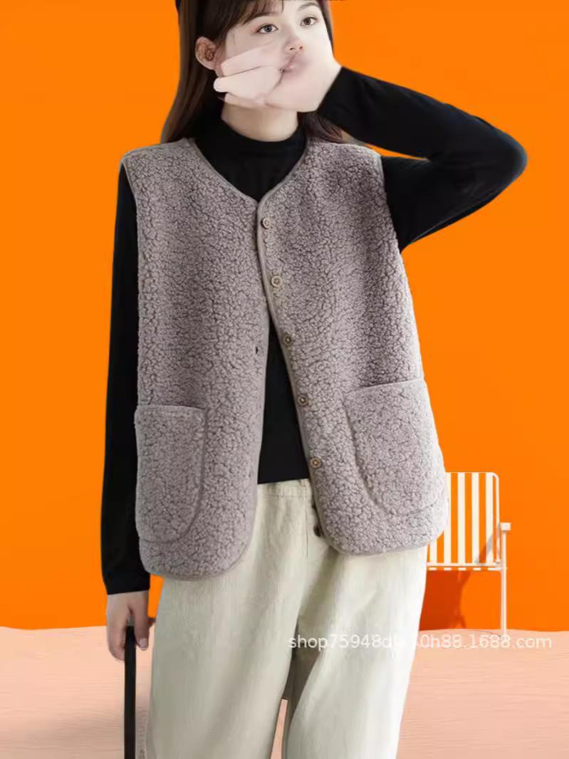 Chaleco polar de moda para mujer, estilo corto de otoño e invierno, versión coreana, piel integrada, versátil, chaleco de corte holgado, chaleco exterior