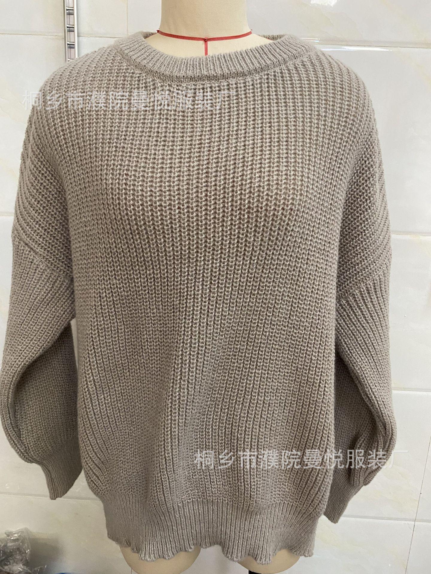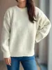 Ropa de Punto Gruesa de Color Puro Europeo y Americano con Cuello Redondo para Mujer 2025 Otoño e Invierno Nuevo Suéter de Punto Holgado de Manga Larga Estilo Perezoso para Mujer