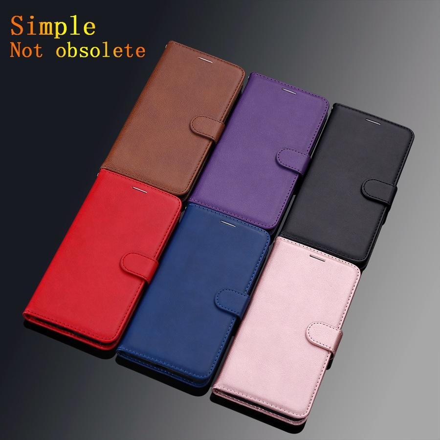 [Nombre del producto]: Funda de cuero para teléfono móvil con clip y billetera abatible en color sólido.