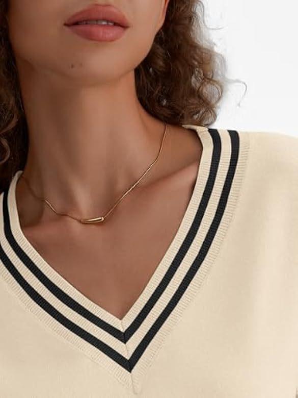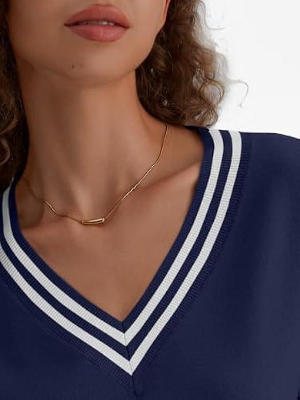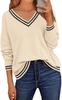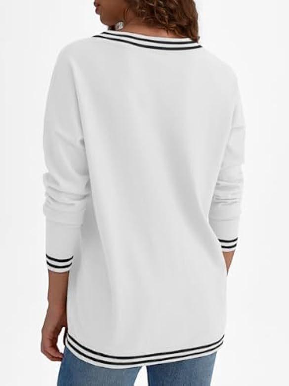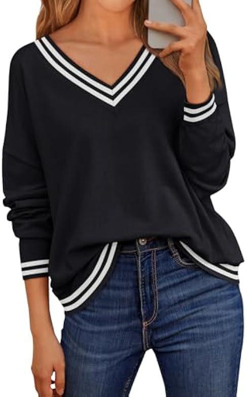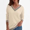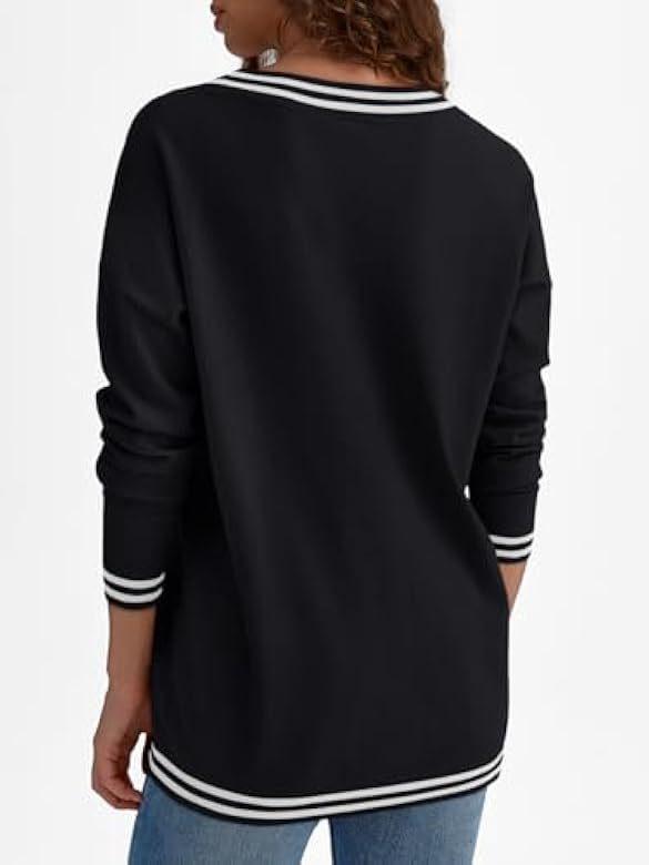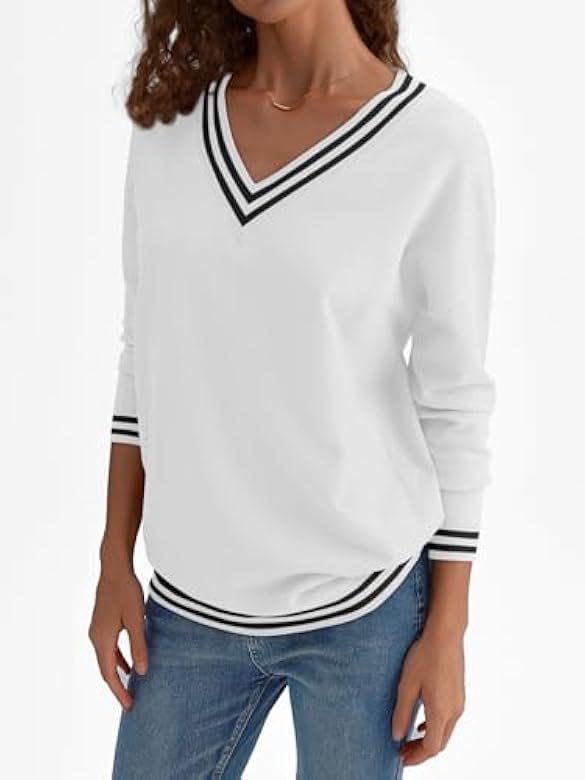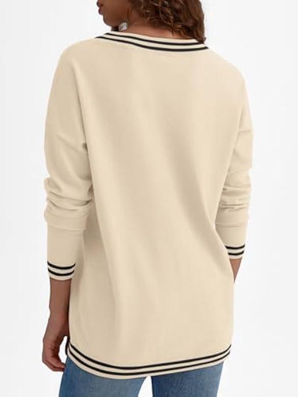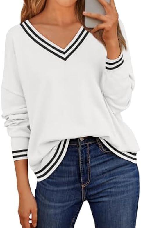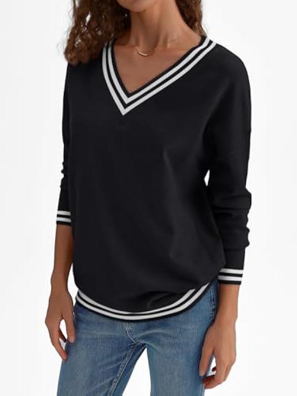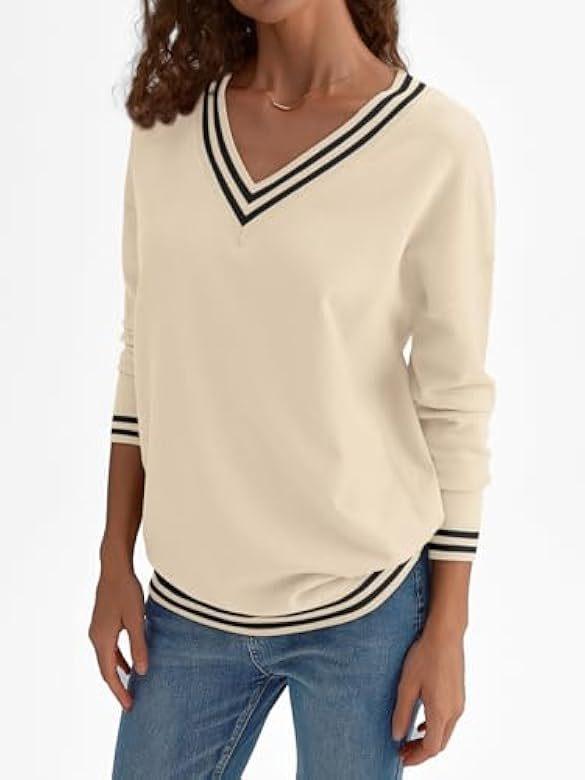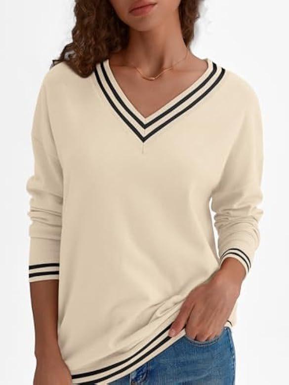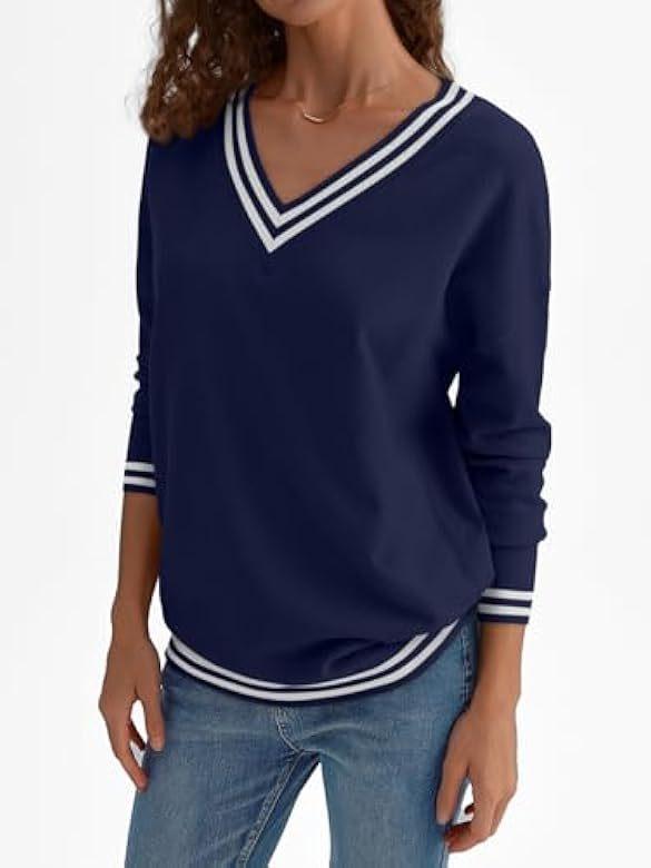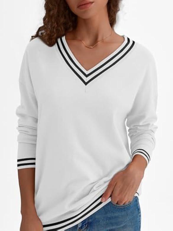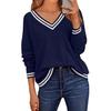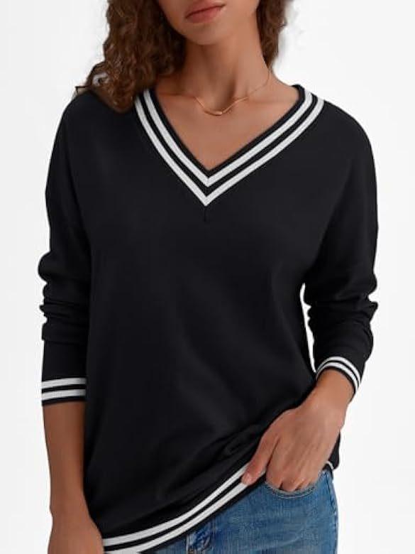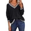 Suéter de manga larga con cuello en V y ribete de canalé para mujer, nueva boutique de otoño e invierno de Amazon 2024, disponible en Europa y América.
