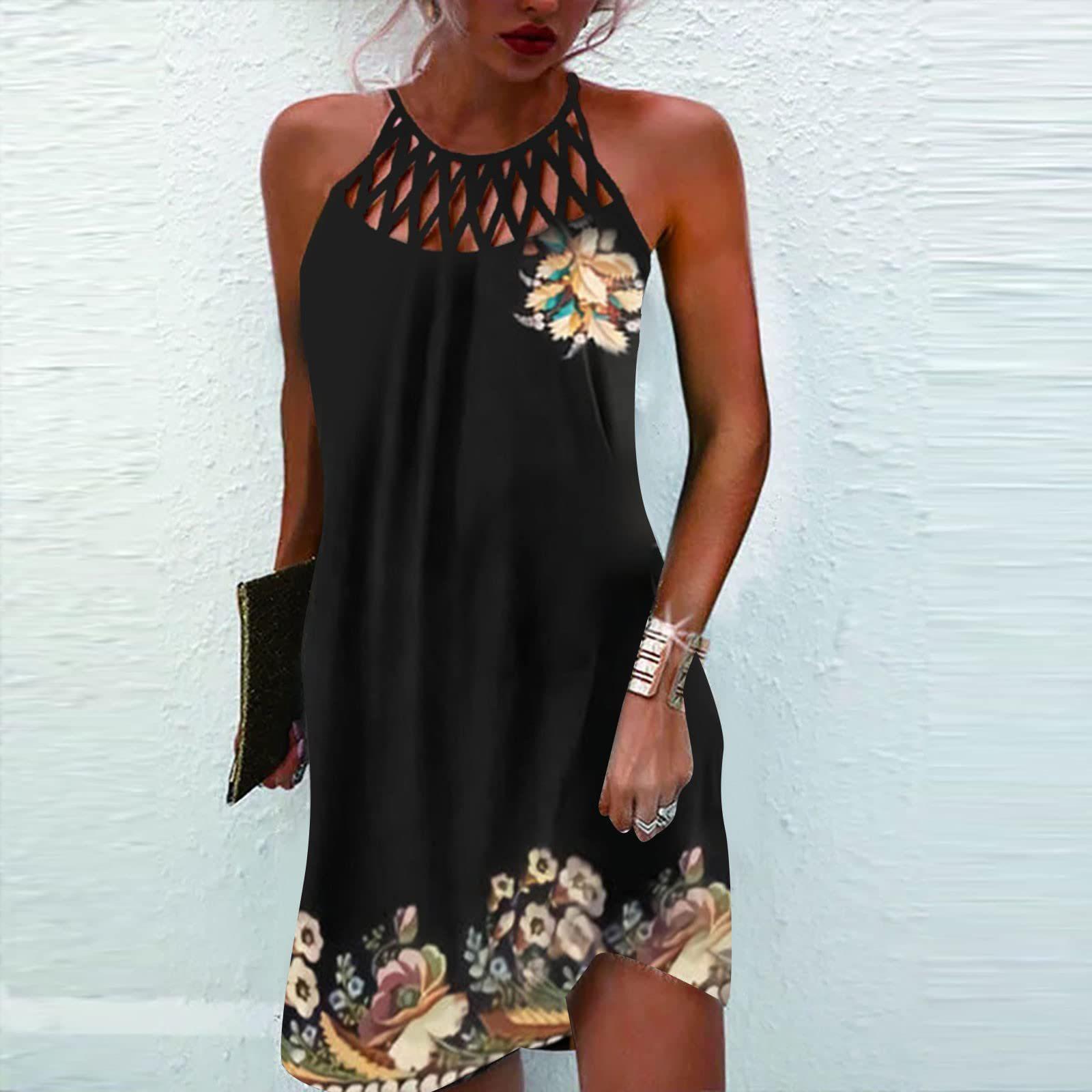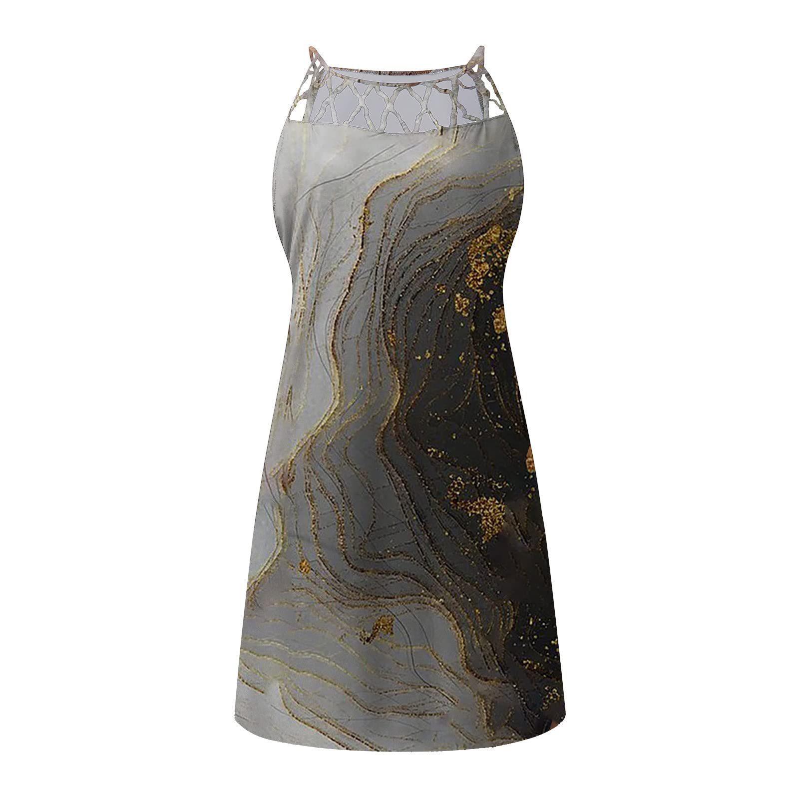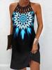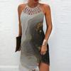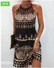 Vestido informal sin mangas con cinturón de malla y estampado de posicionamiento de estilo étnico de Amazon para primavera y verano de 2023, estilo europeo y americano, ropa para mujer