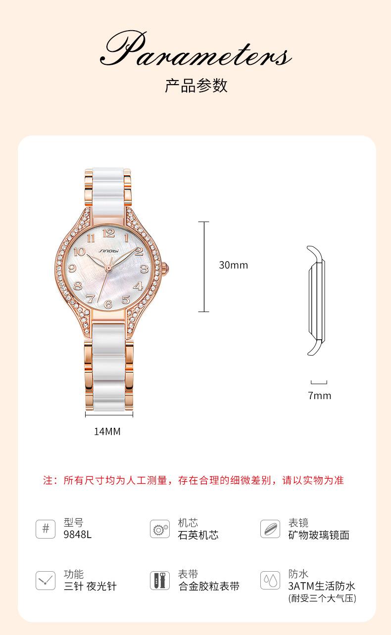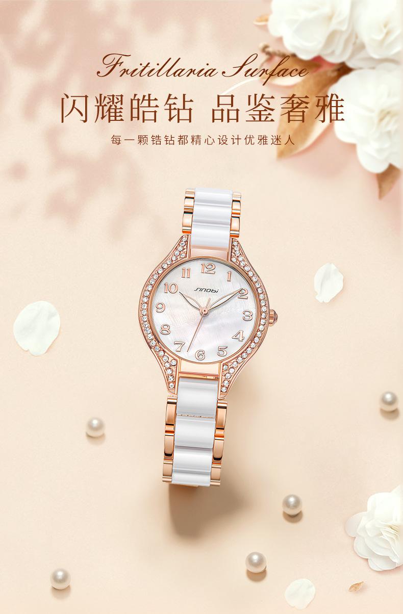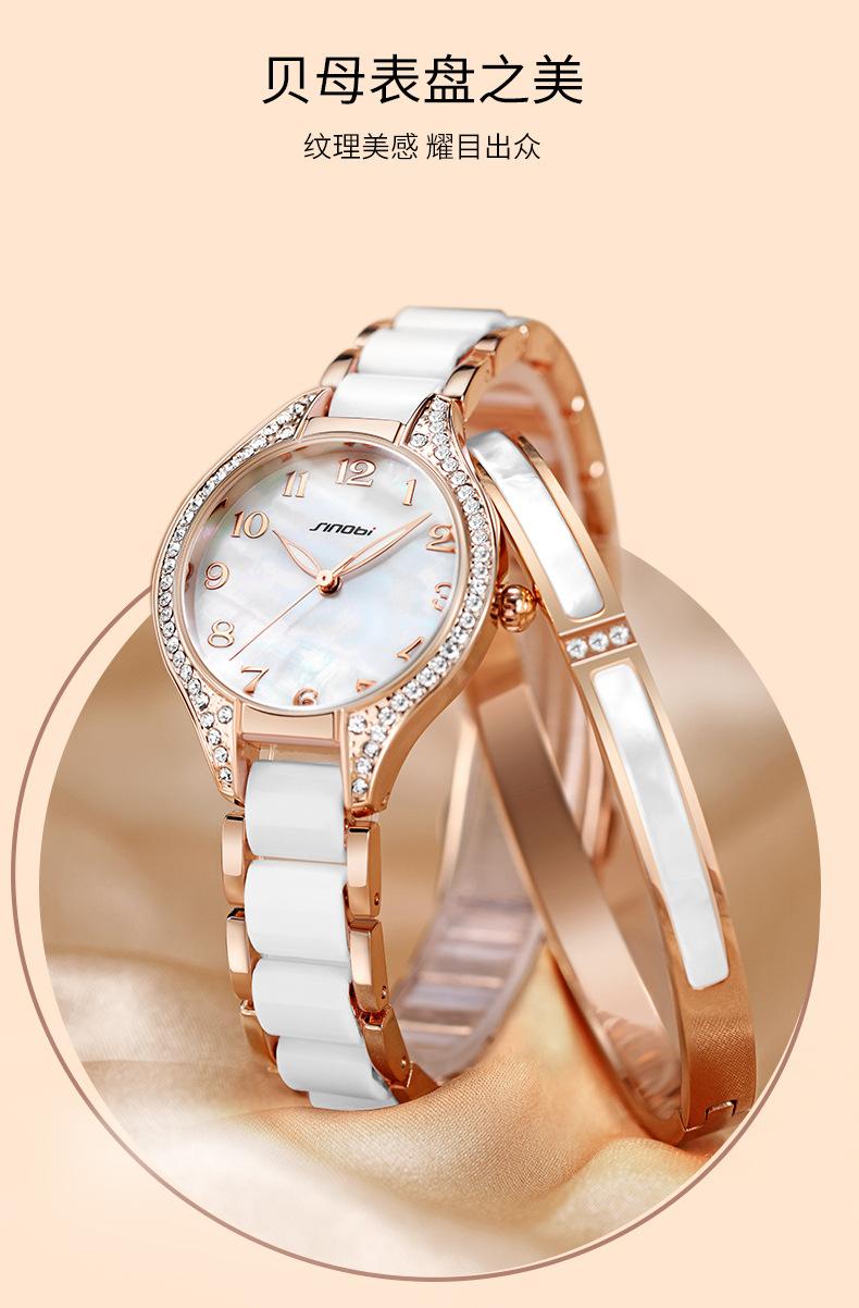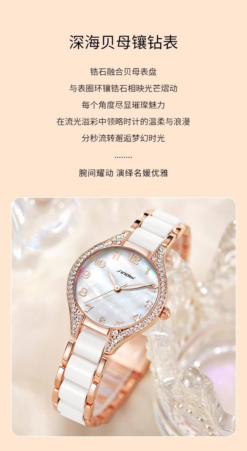 Reloj Sinobi para mujer 2024, reloj de cuarzo con diamantes, venta al por mayor, correa de acero, reloj impermeable, reloj de comercio exterior transfronterizo, reloj para mujer