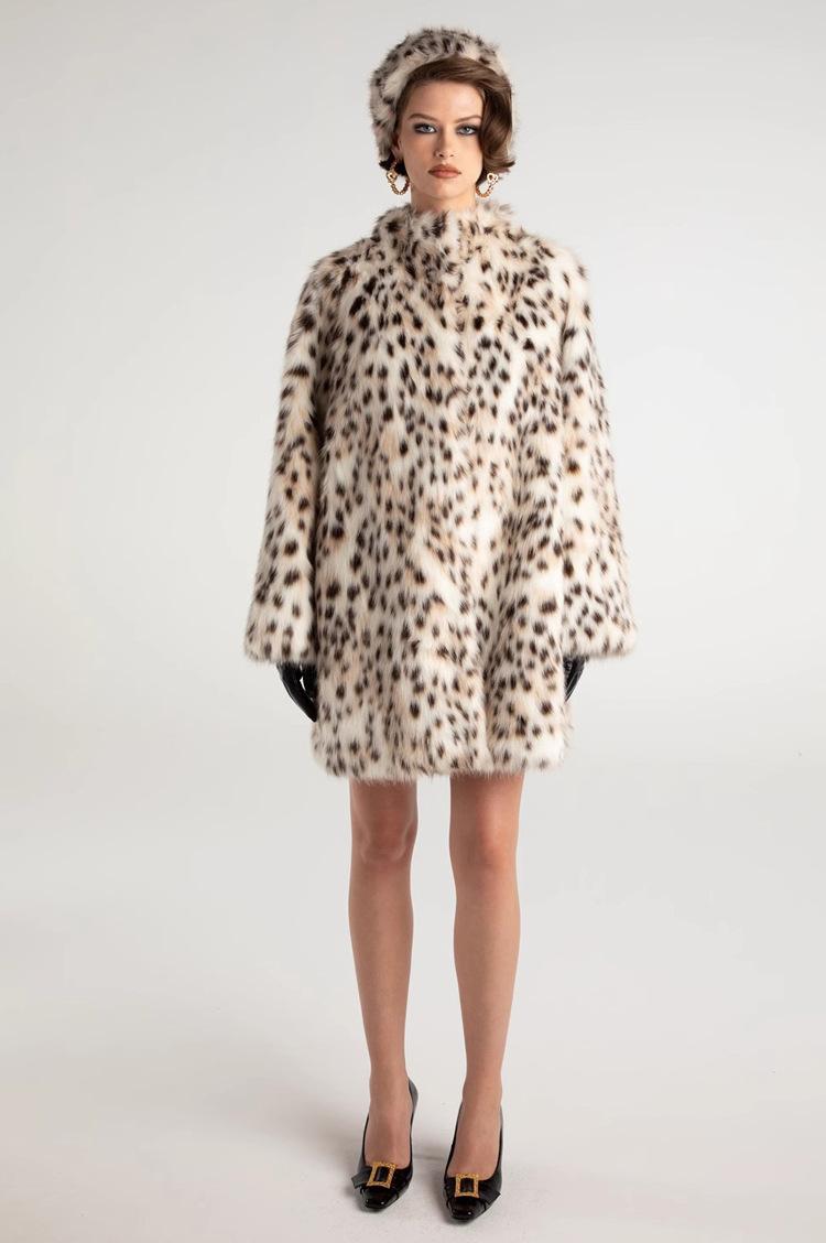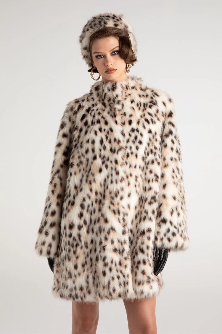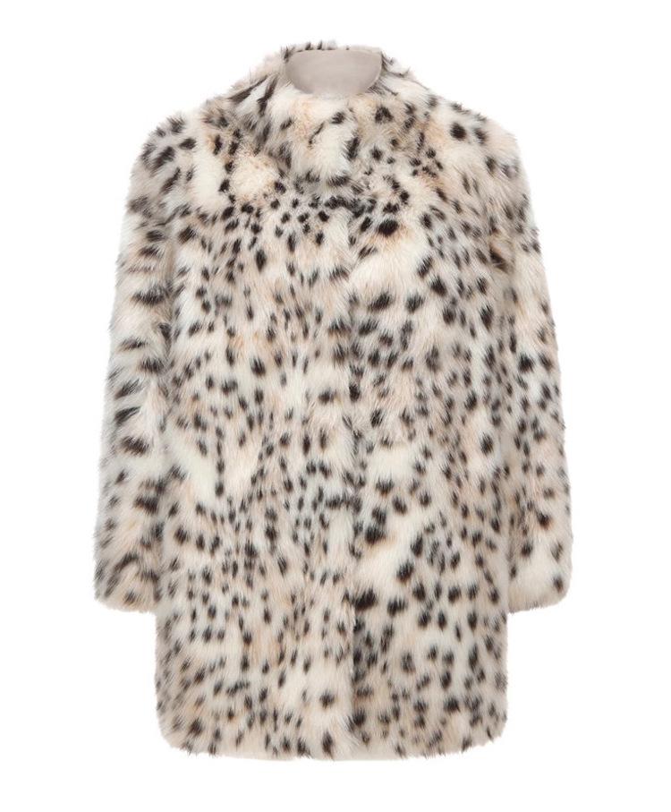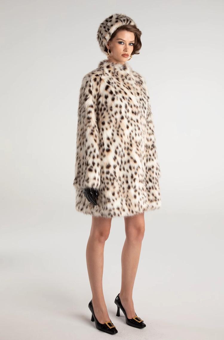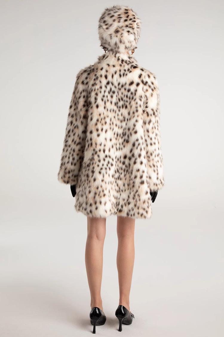Abrigo de piel sintética de zorro para mujer, largo medio, otoño e invierno, nuevo, con cuello alto y estampado de lince, abrigo holgado y cálido.