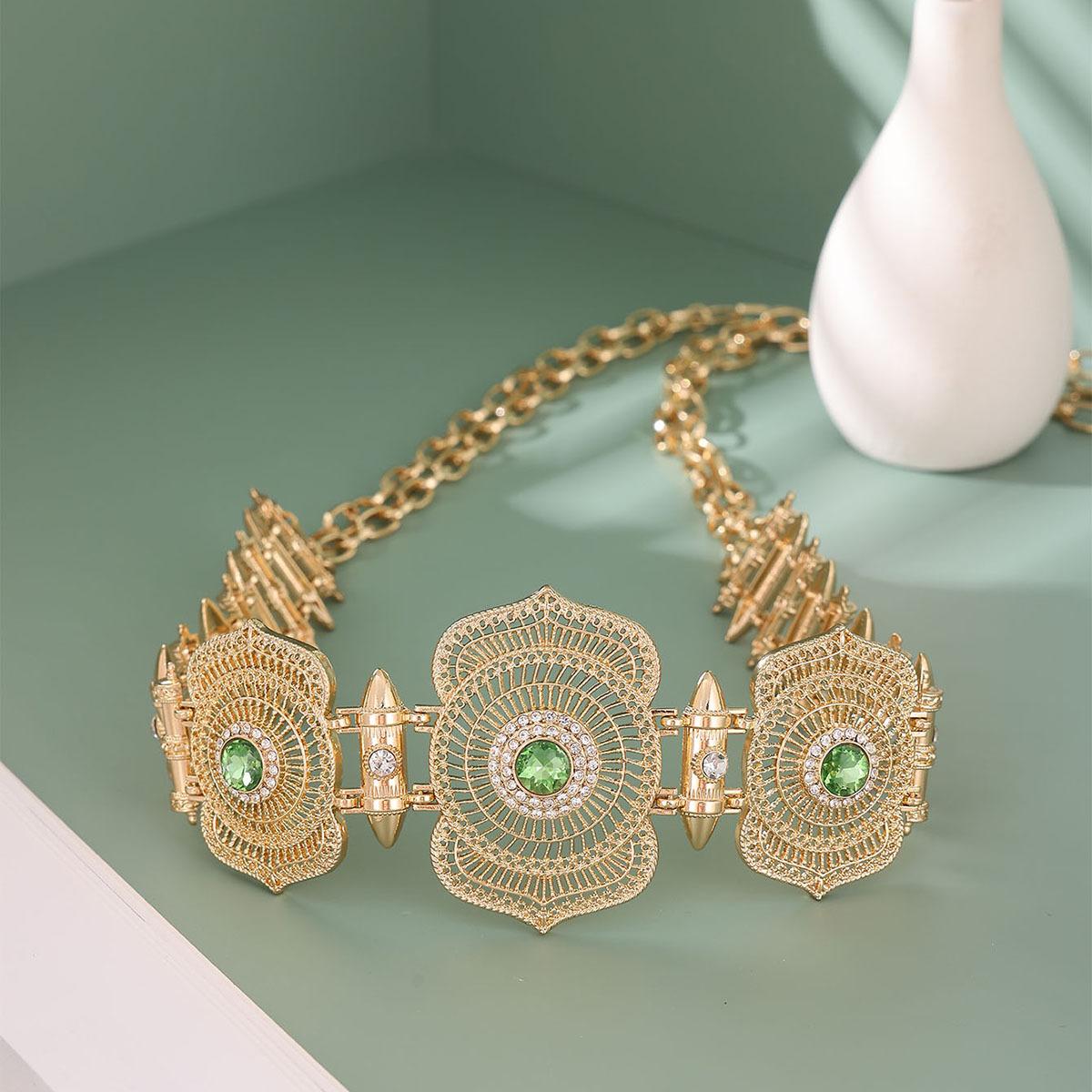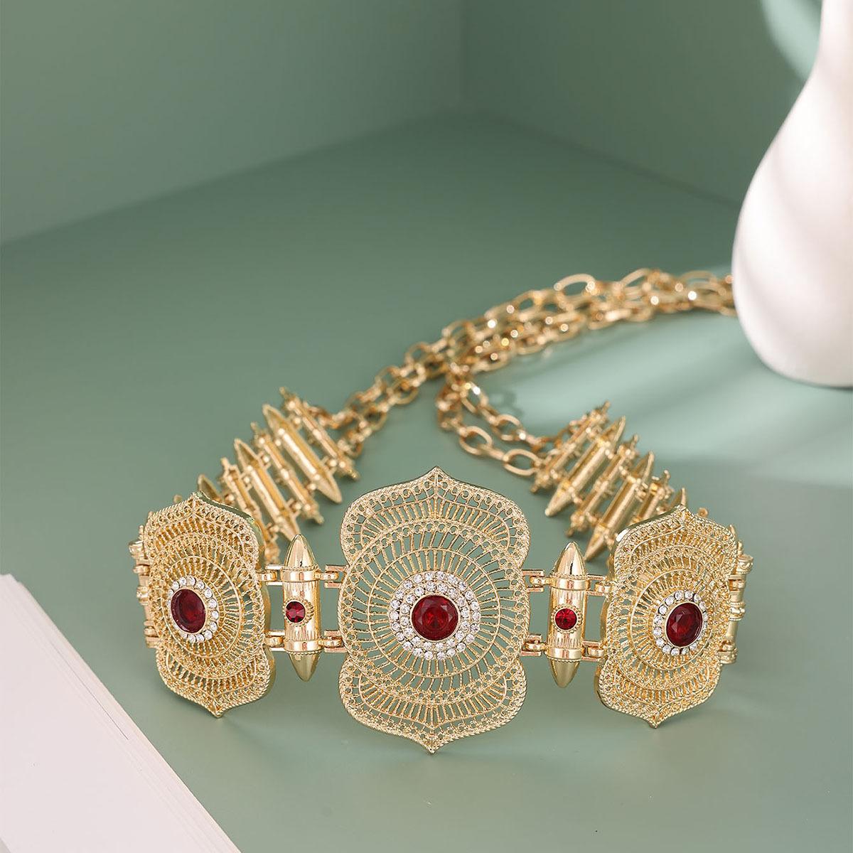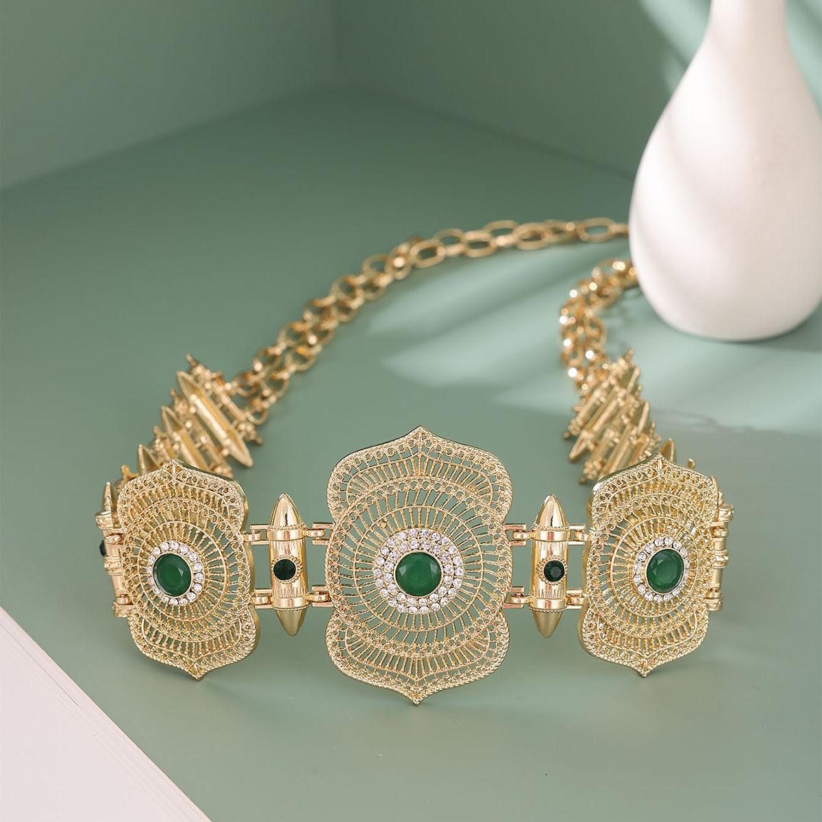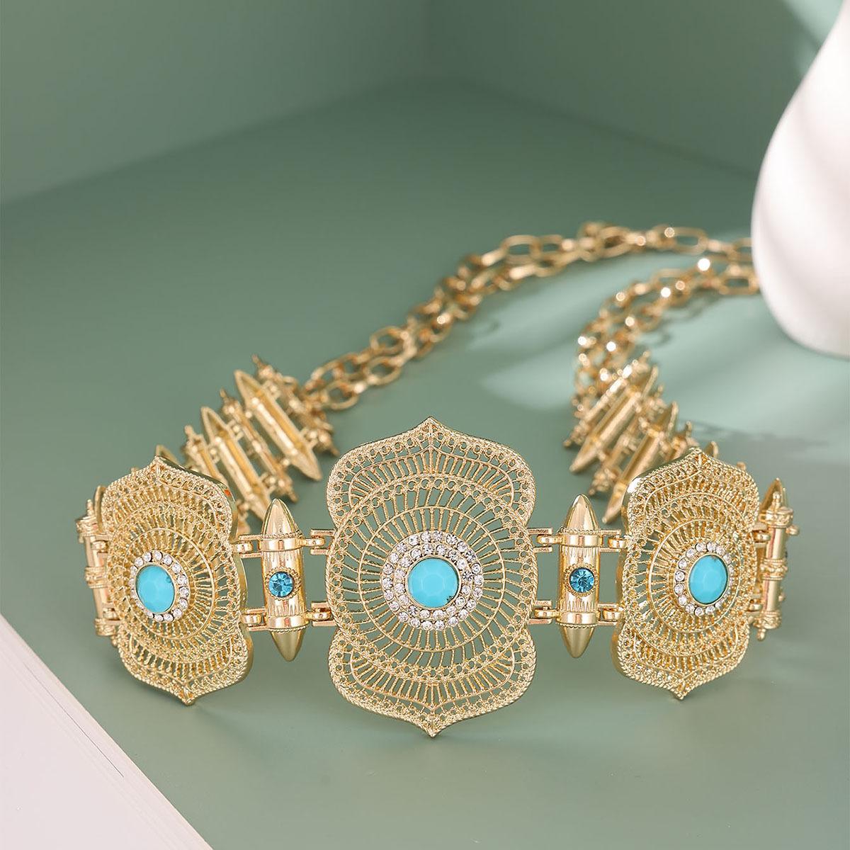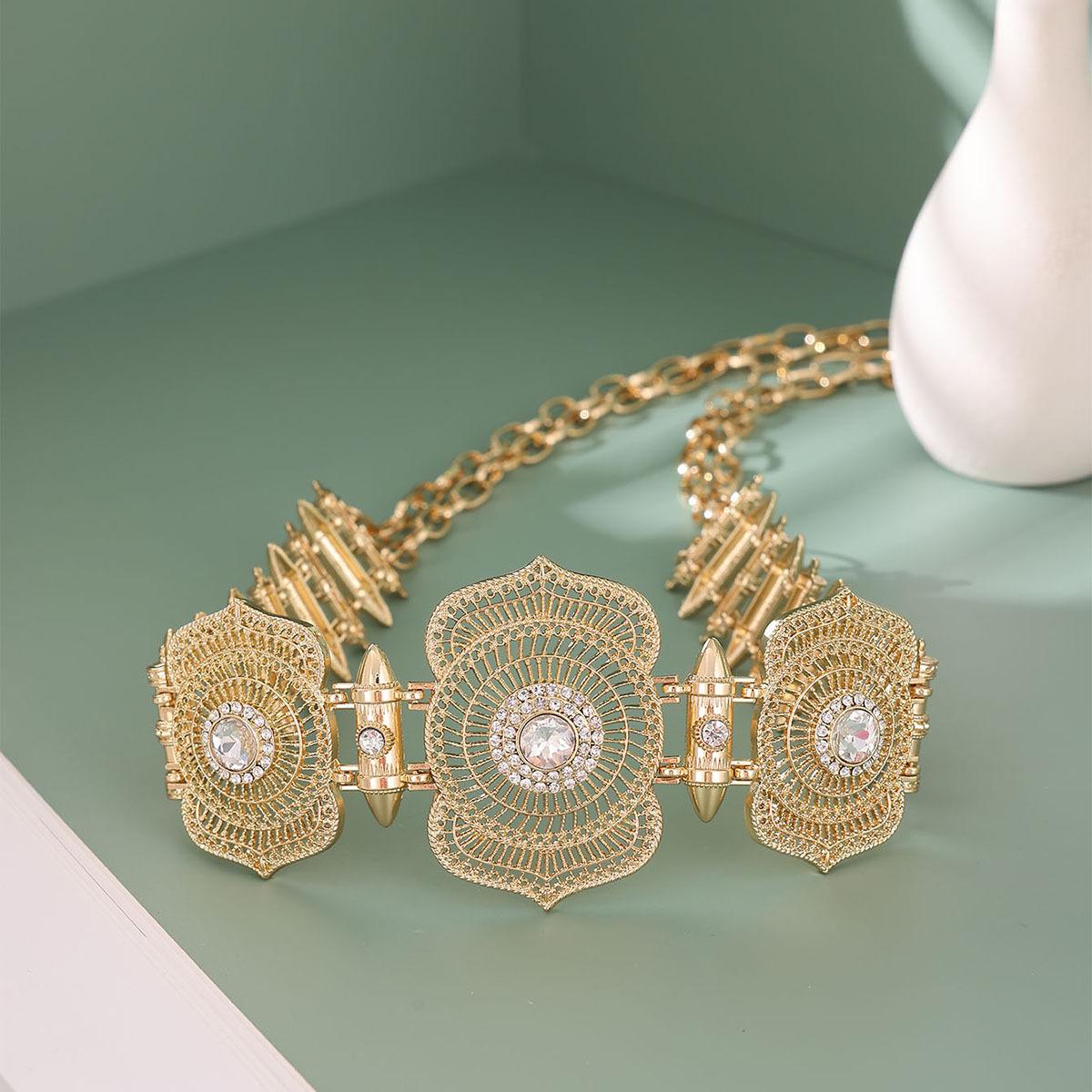 Cadena corporal de joyería delicada marroquí, cadena de cintura para bata nupcial árabe, cadena de bala con cinturón chapado en oro