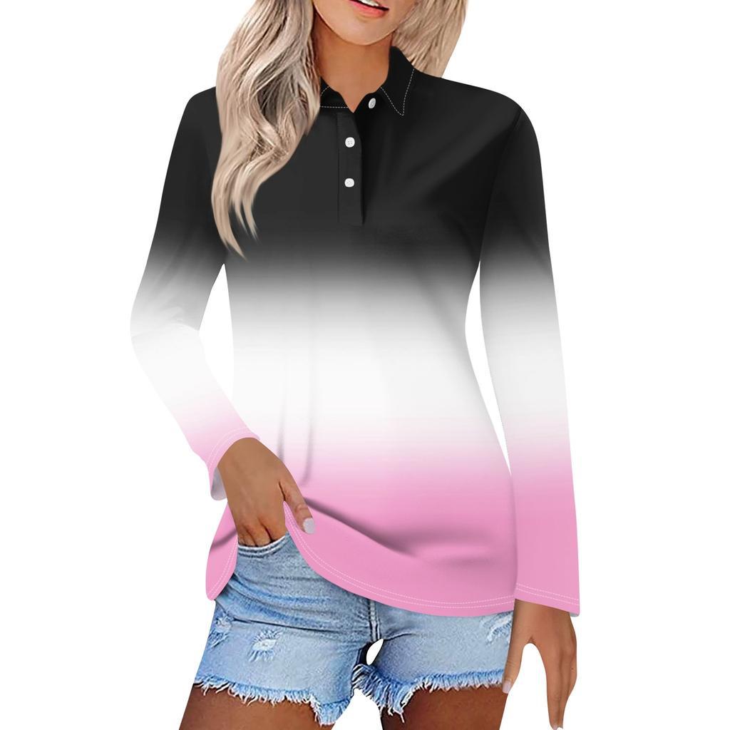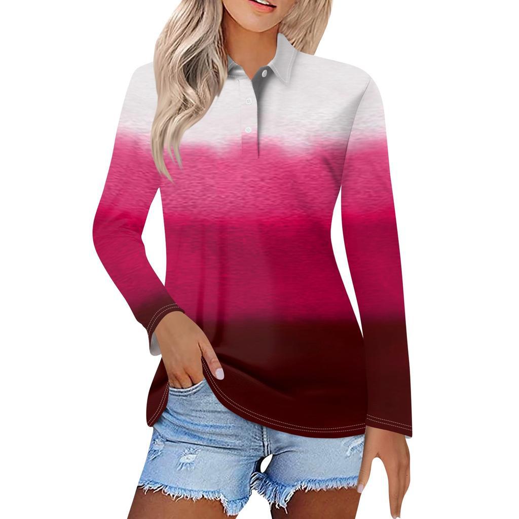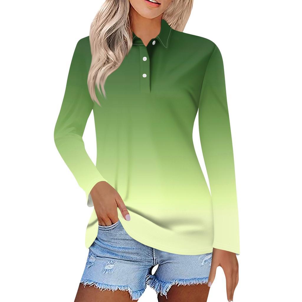 Camisa POLO de manga larga con botones y degradado de color, estilo Joker, informal, de comercio exterior europeo y americano, MB14, 2024