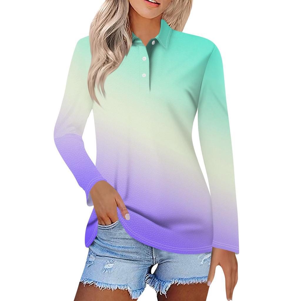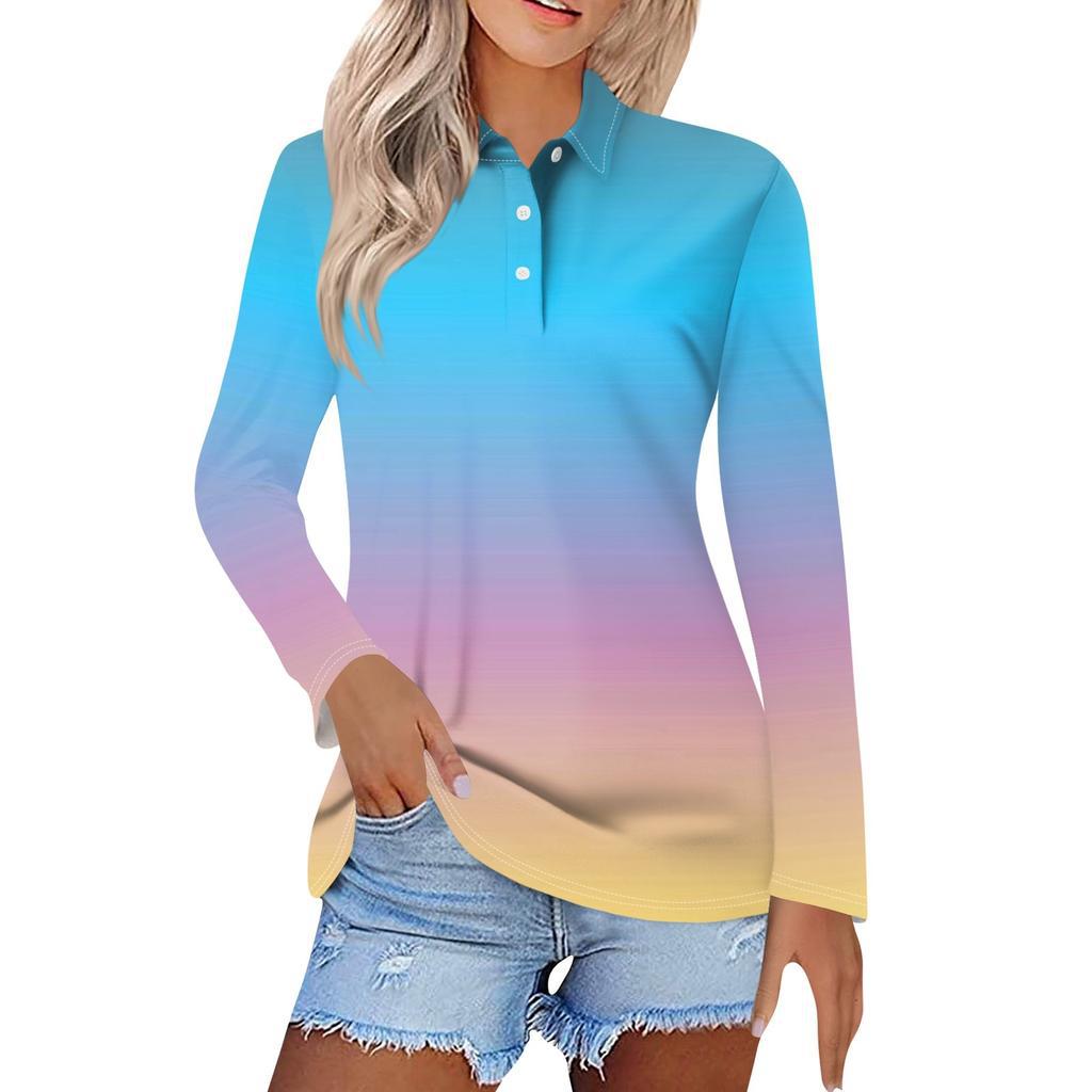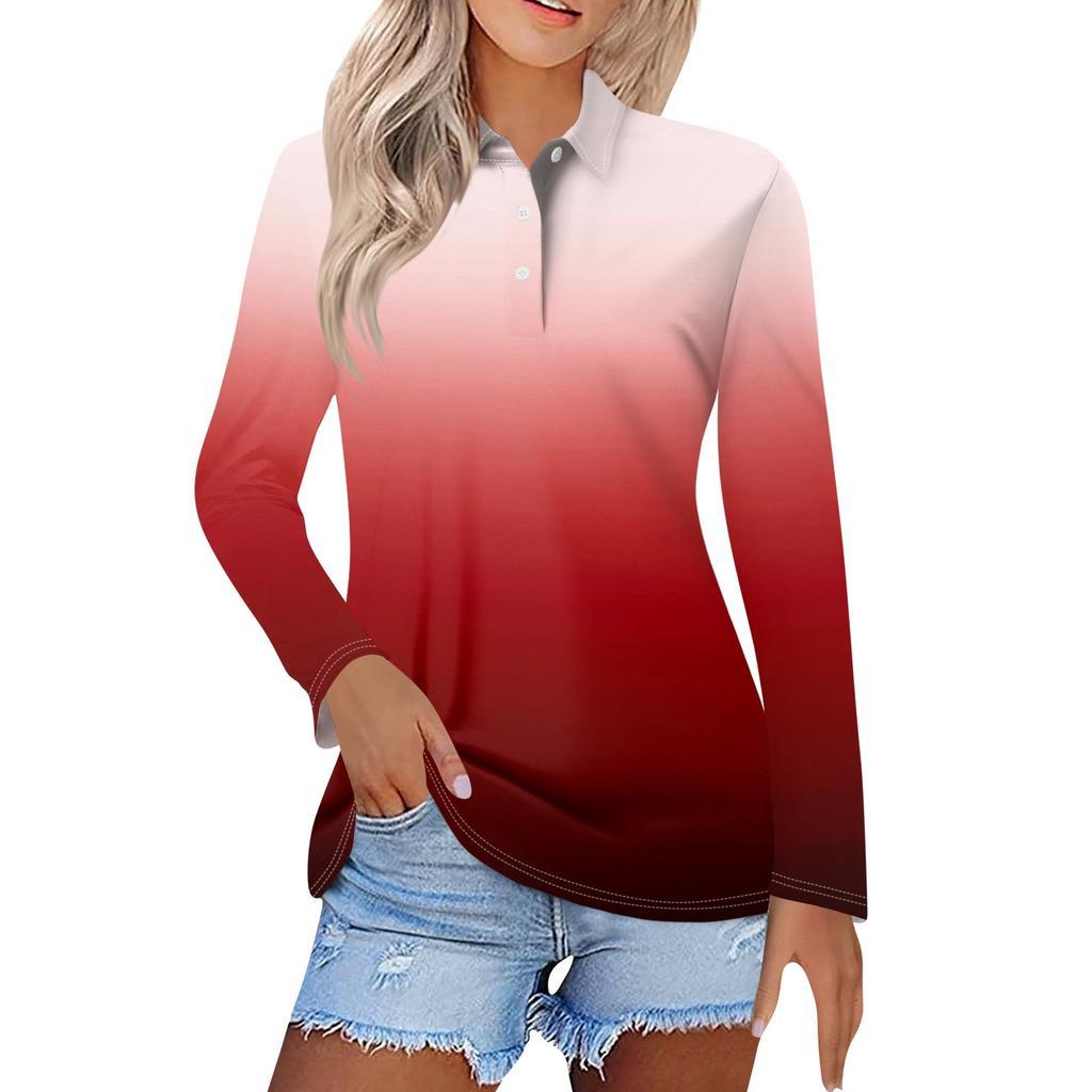 Camisa POLO de manga larga con botones y degradado de color, estilo Joker, informal, de comercio exterior europeo y americano, MB14, 2024