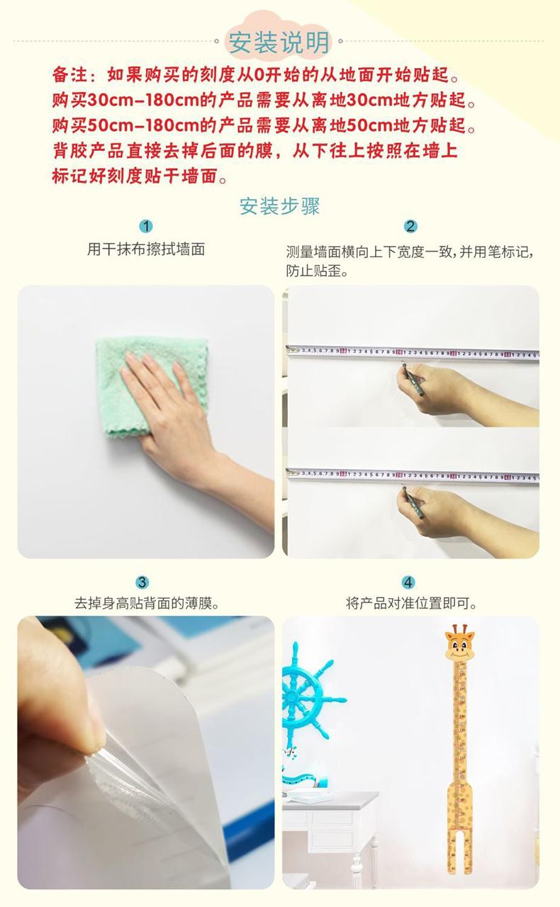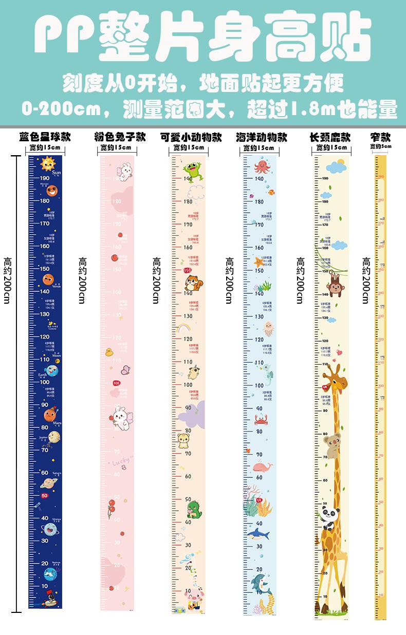 Un Juego Completo de Calcomanías de Pared de Altura 2m Regla de Medición de Altura Dibujos Animados Calcomanías de Altura para Bebés Habitación de Niños Xu Ping