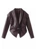 Chaqueta de Cuero PU con Cordones Estilo Europeo y Americano Primavera 2024 con Cuello Vuelto, Manga Larga, Abrigo de Moda Urbana de Color Sólido
