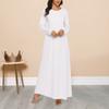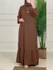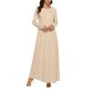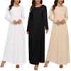 Vestido Musulmán Casual de Color Sólido para Mujer Bata Vestido Islámico de Manga Larga Cárdigan de Lentejuelas Caladas Suelto