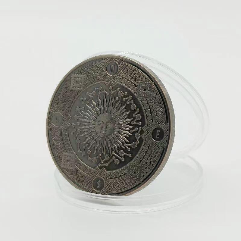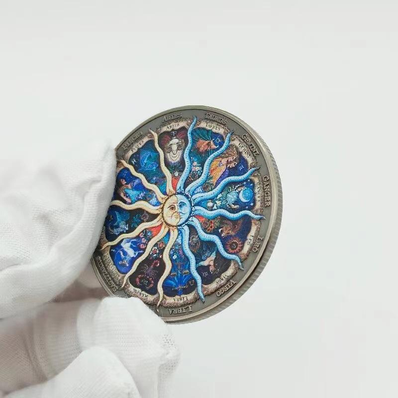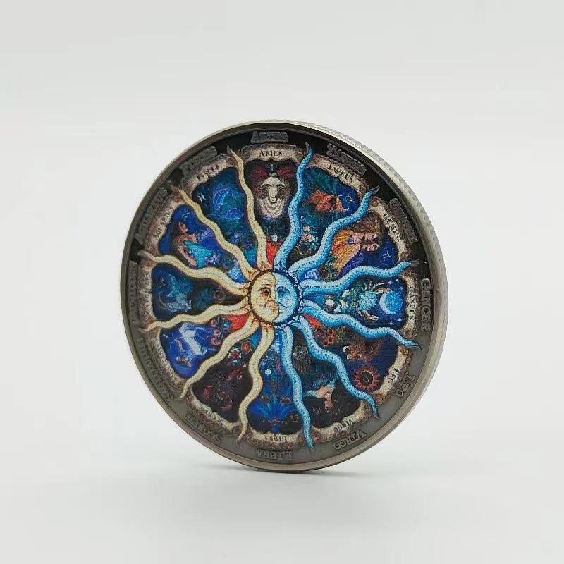 Moneda de la suerte transfronteriza de doce constelaciones del dios del sol y la luna, moneda conmemorativa antigua de color plata, moneda de color de la constelación europea y americana