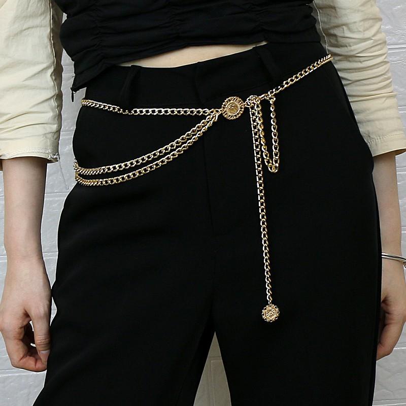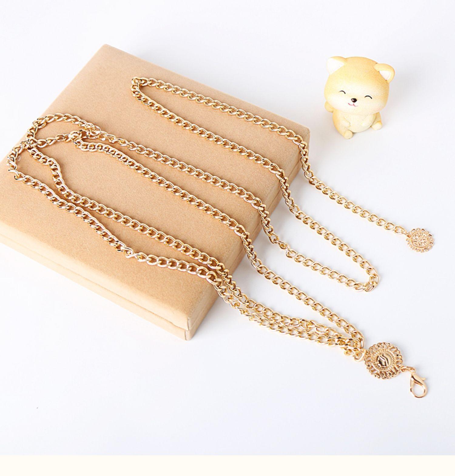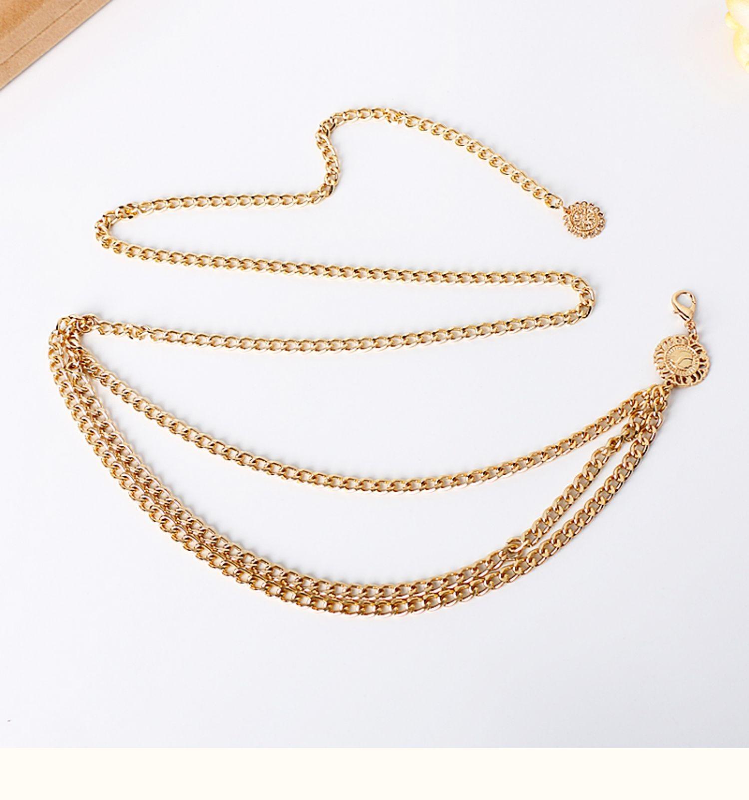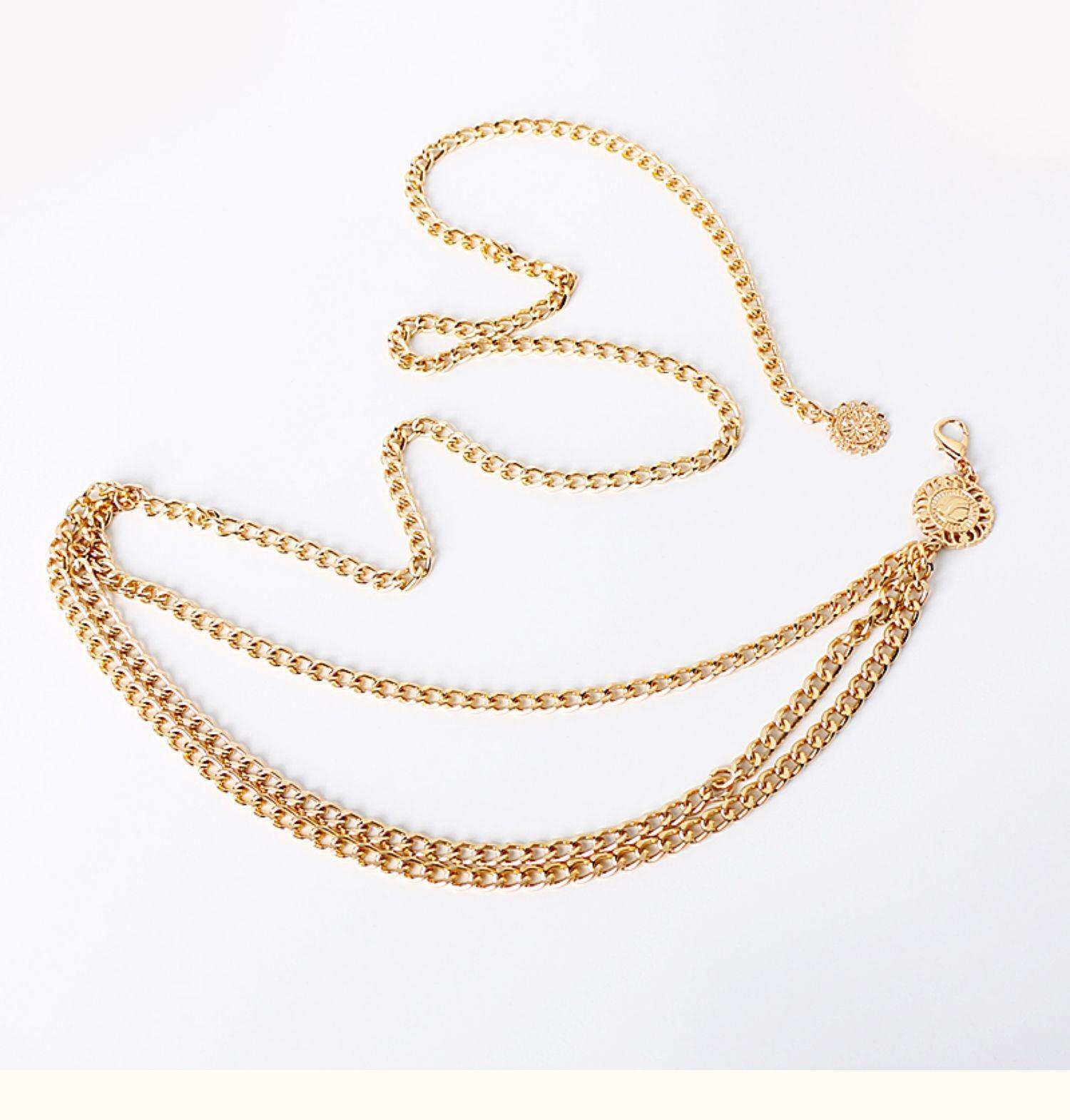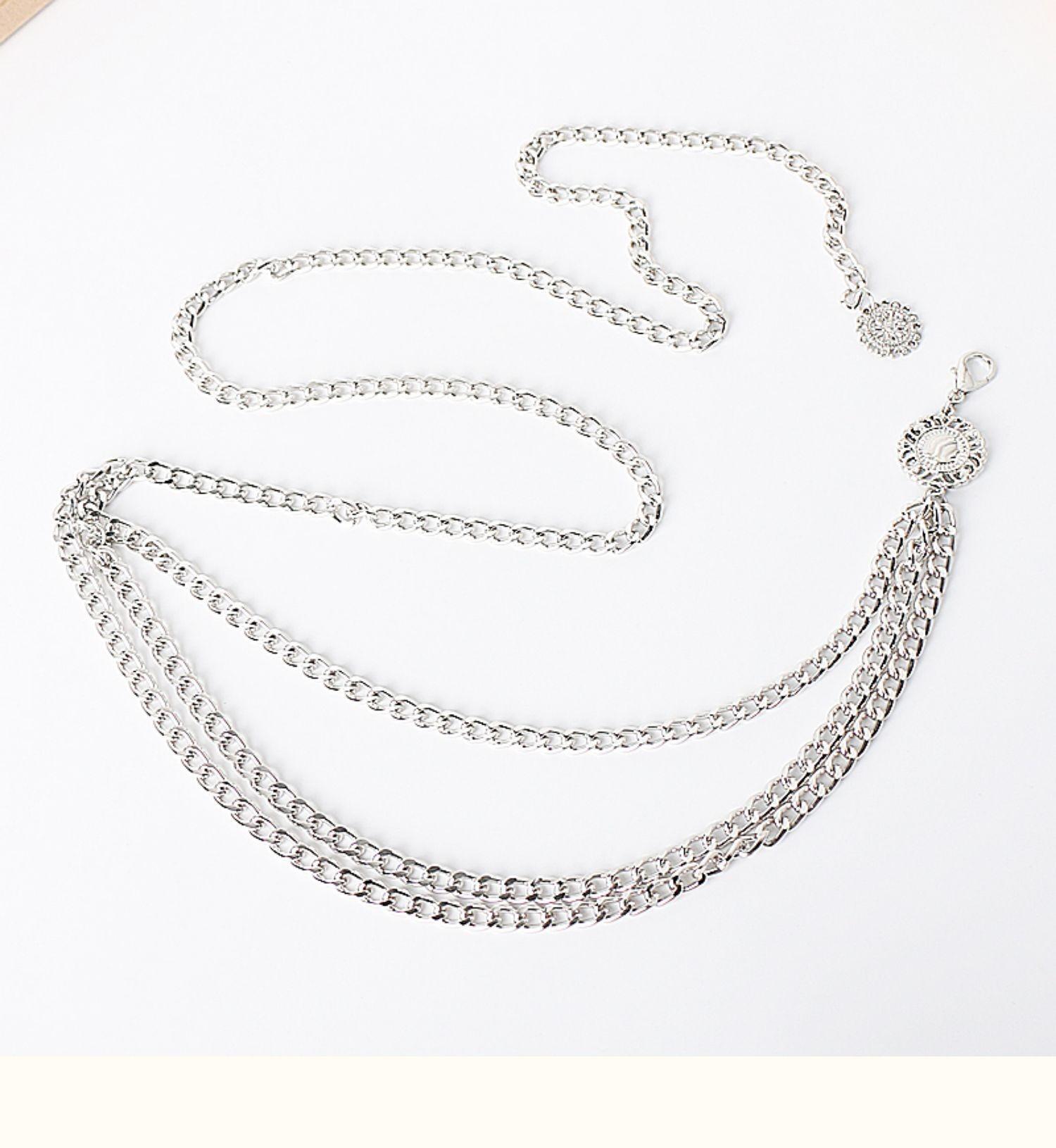 Cadena de cintura fina de metal de doble capa transfronteriza europea y americana para mujer, falda, decoración versátil, cinturón de cadena para vestido, accesorios ajustados a la cintura