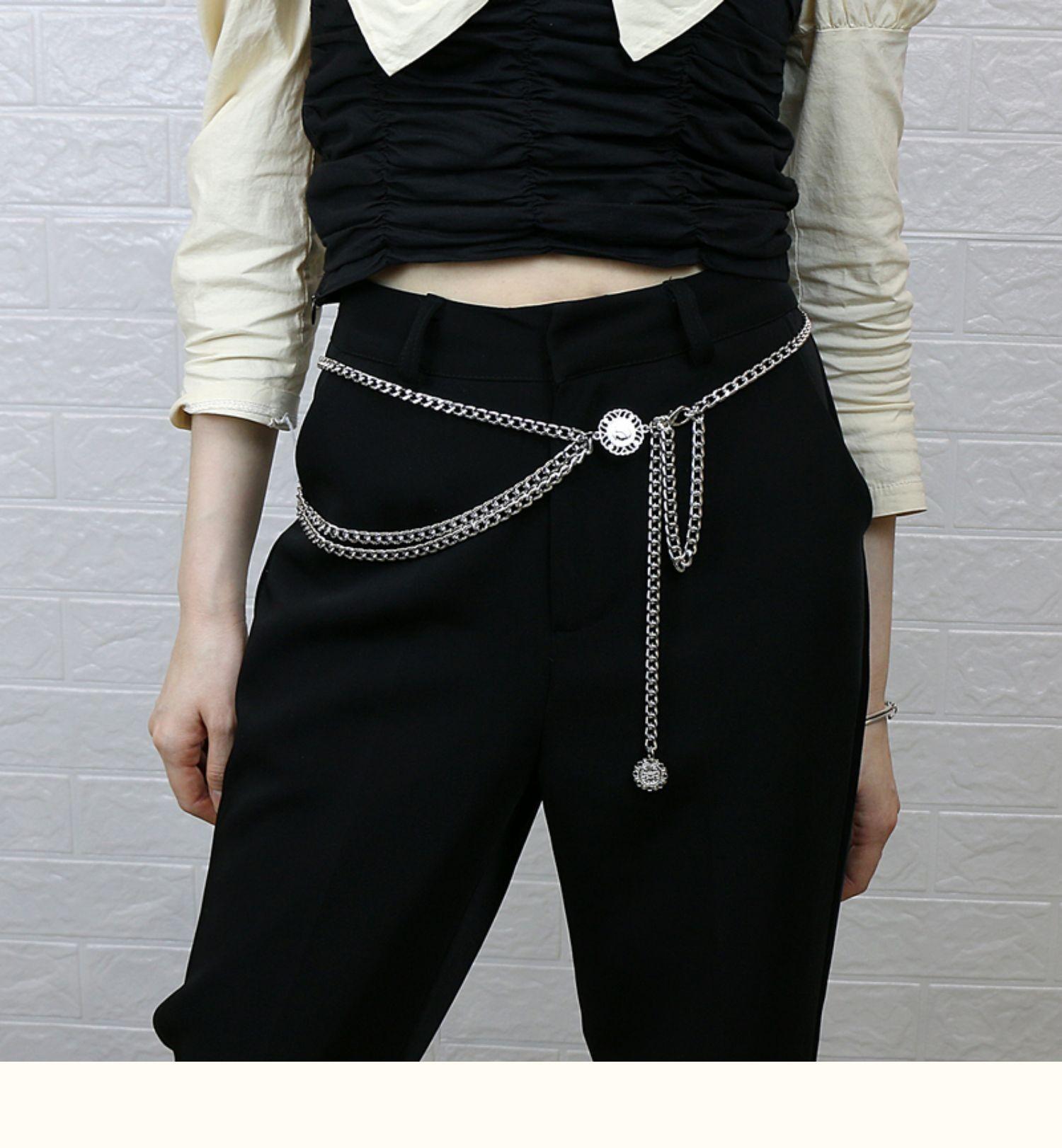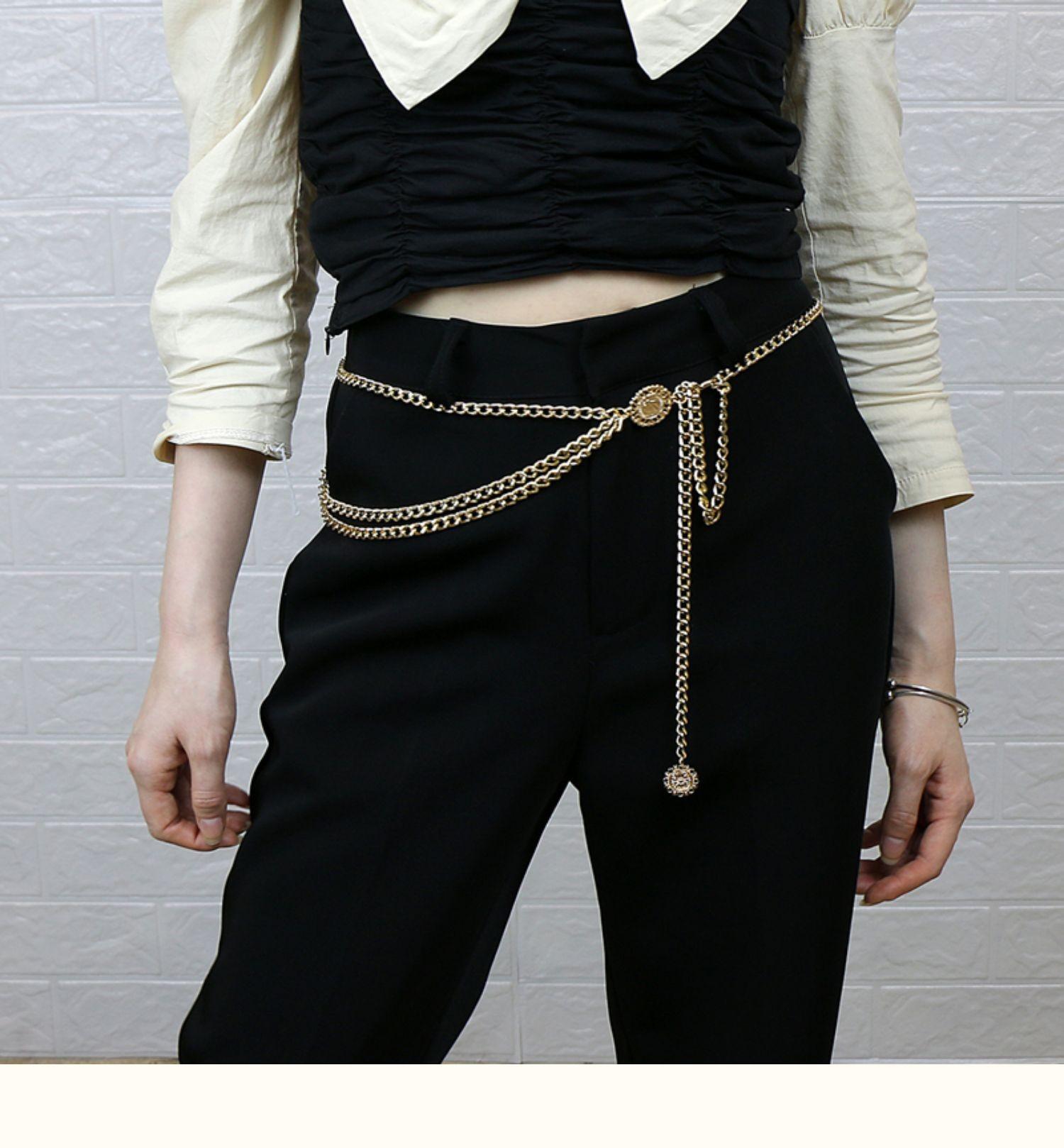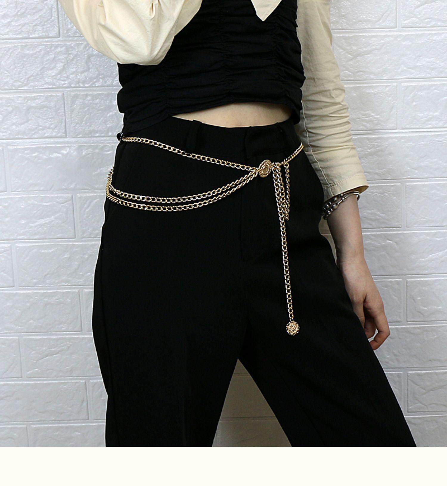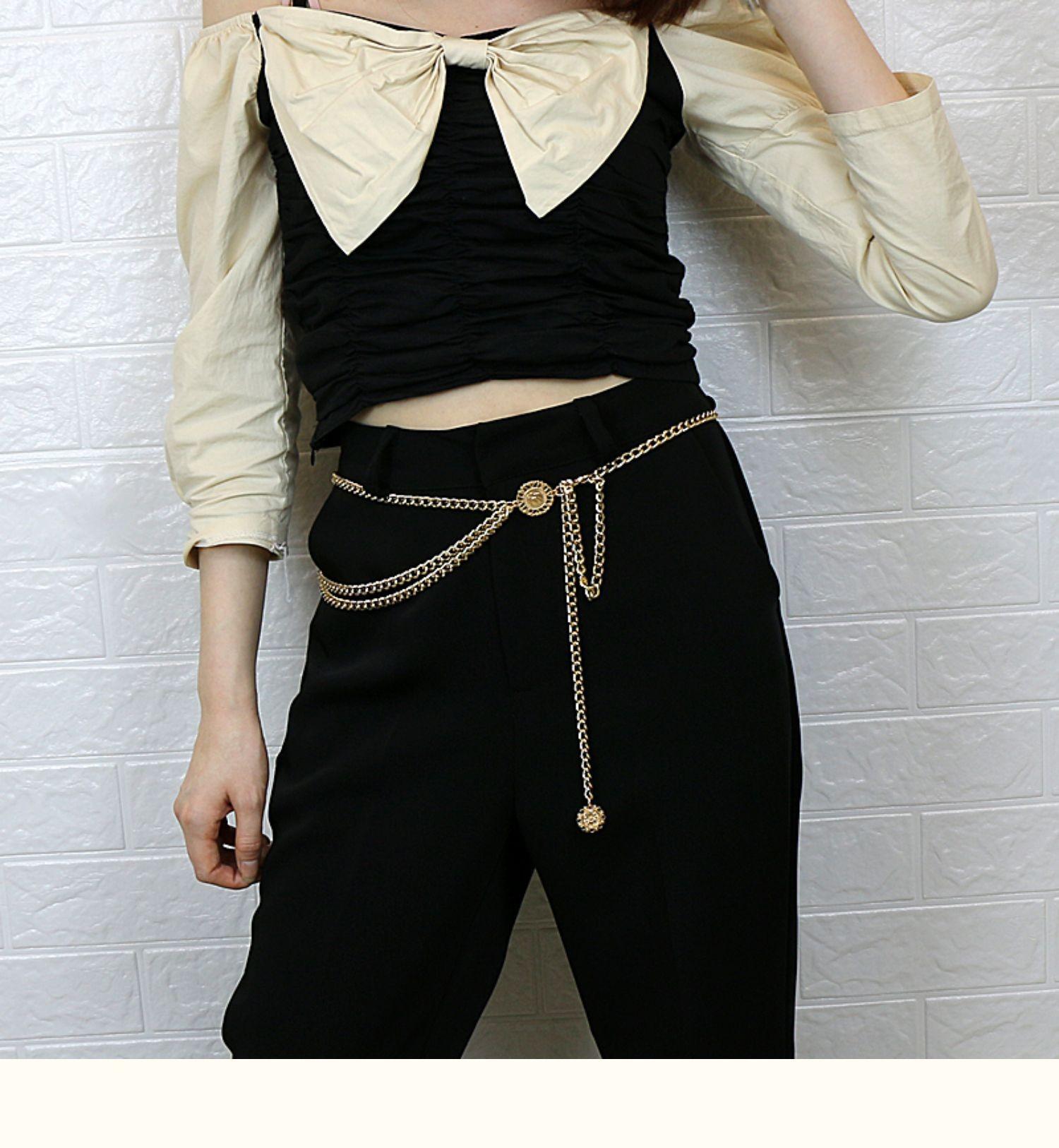 Cadena de cintura fina de metal de doble capa transfronteriza europea y americana para mujer, falda, decoración versátil, cinturón de cadena para vestido, accesorios ajustados a la cintura