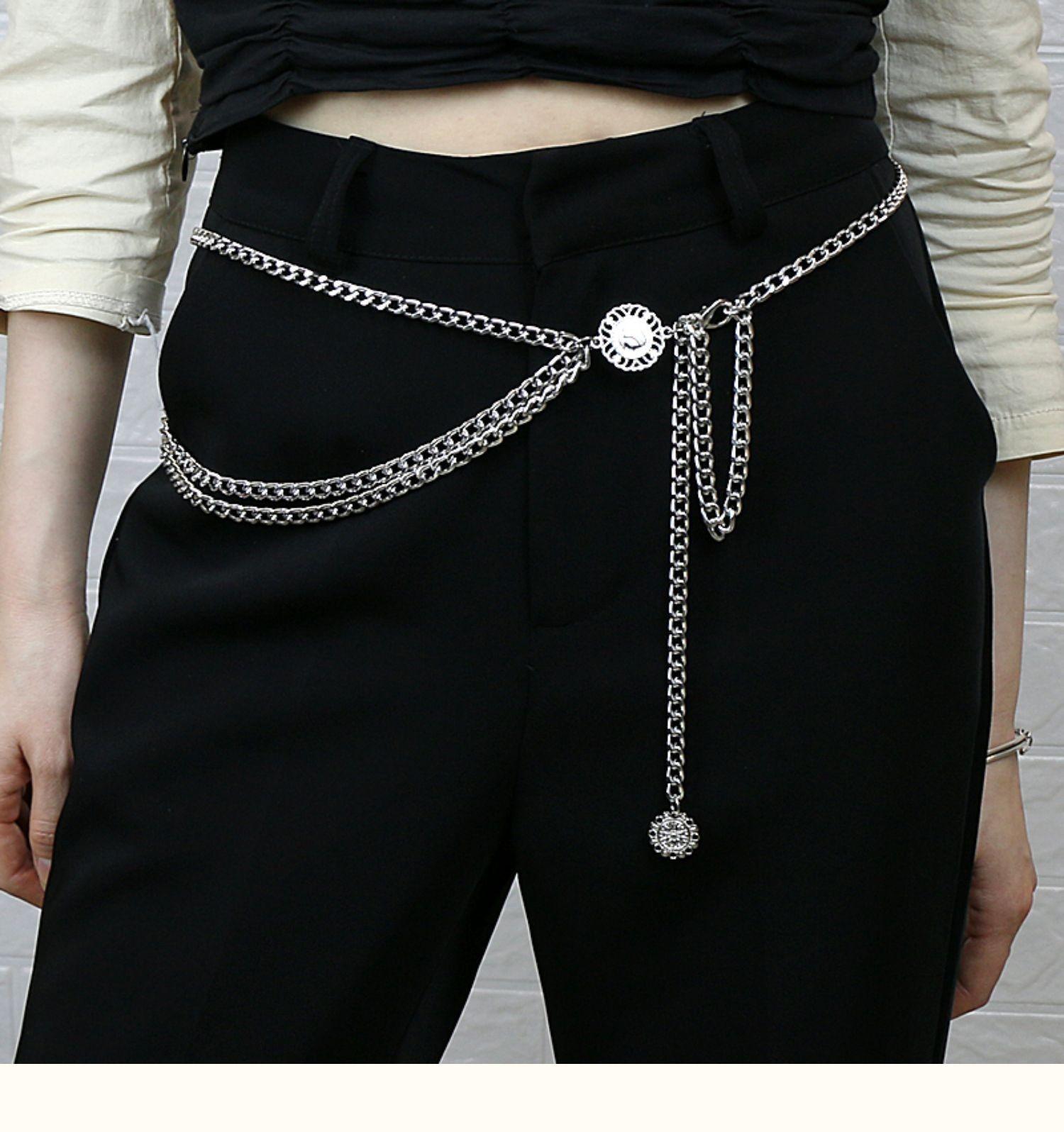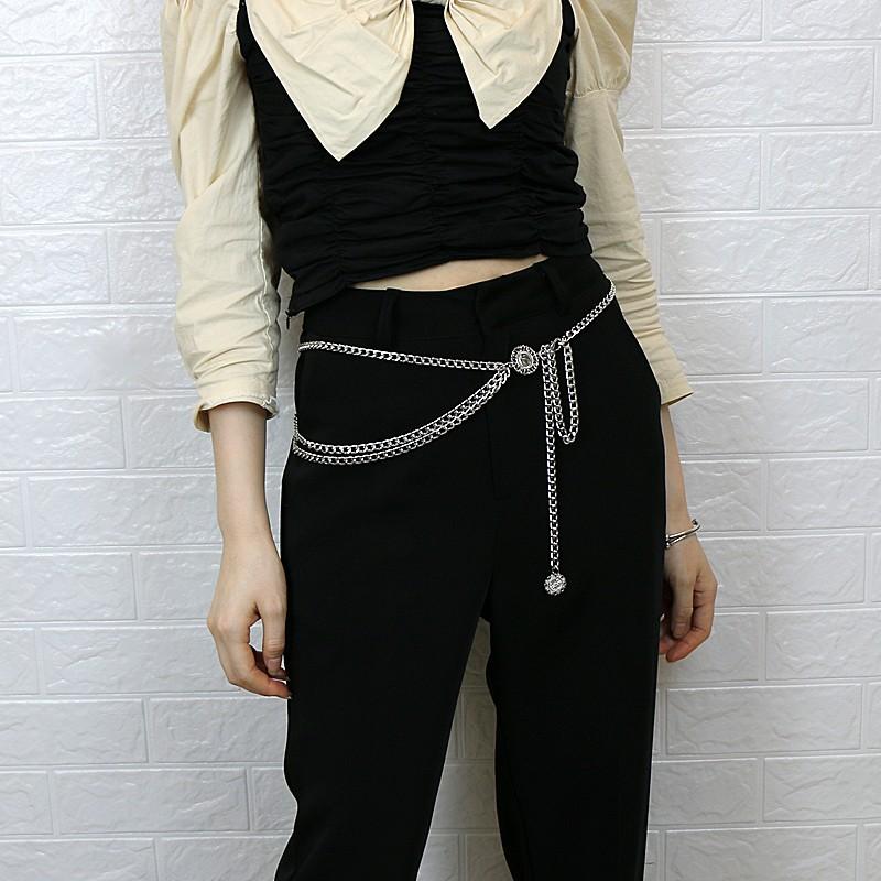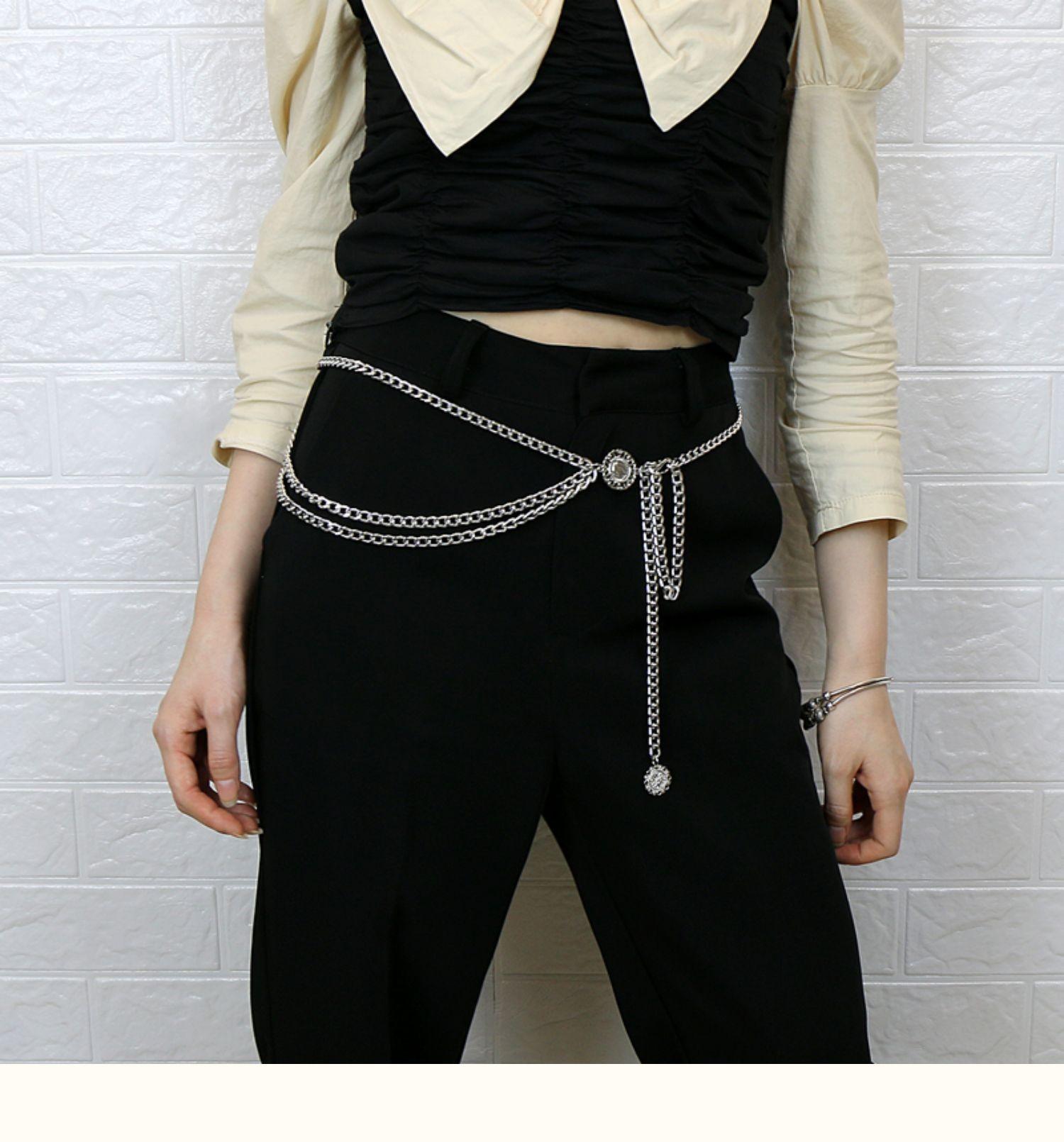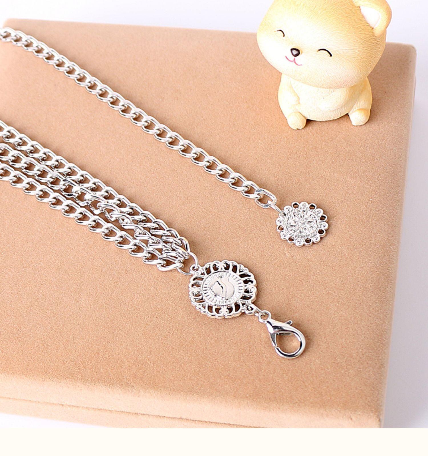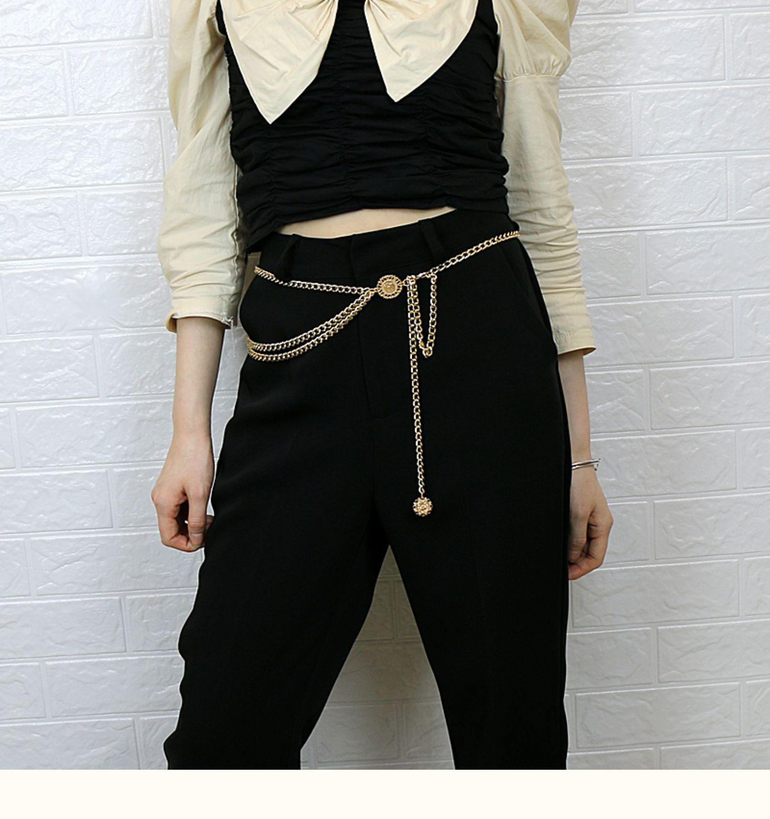 Cadena de cintura fina de metal de doble capa transfronteriza europea y americana para mujer, falda, decoración versátil, cinturón de cadena para vestido, accesorios ajustados a la cintura