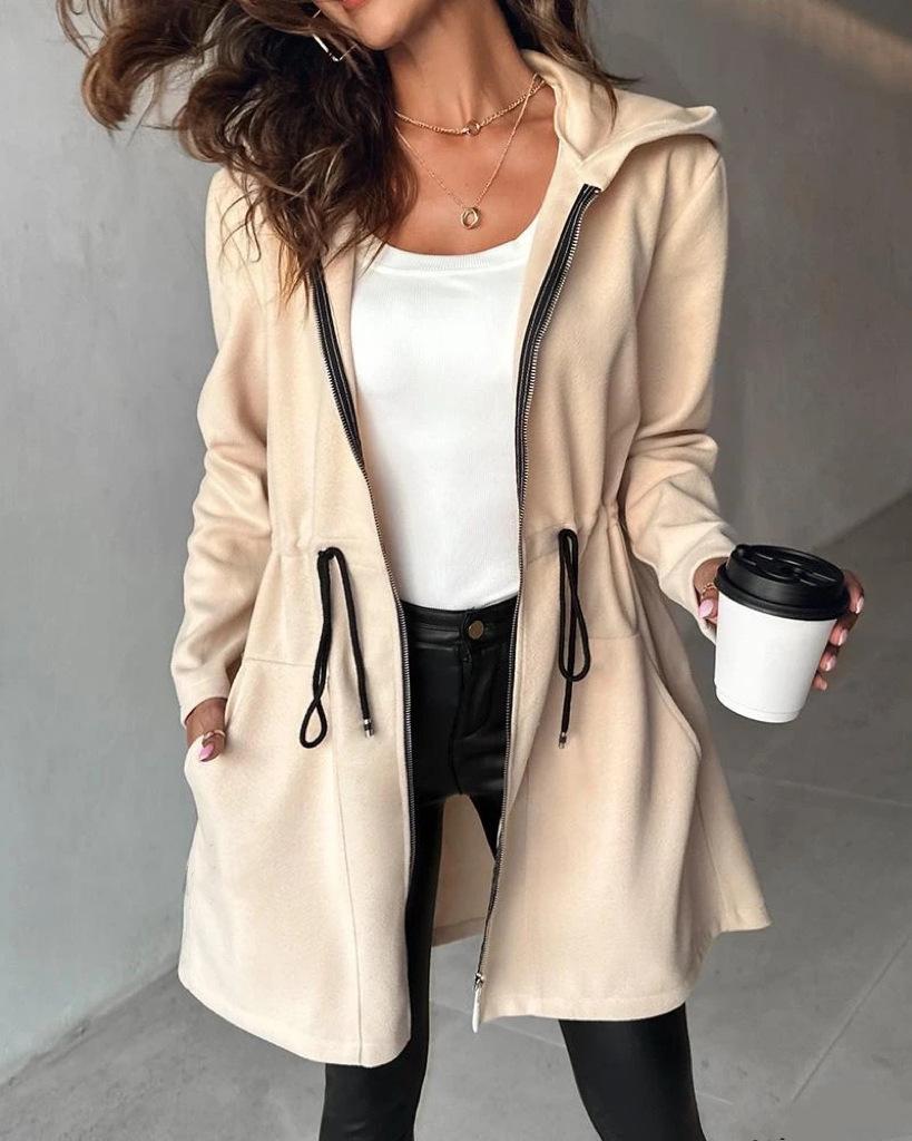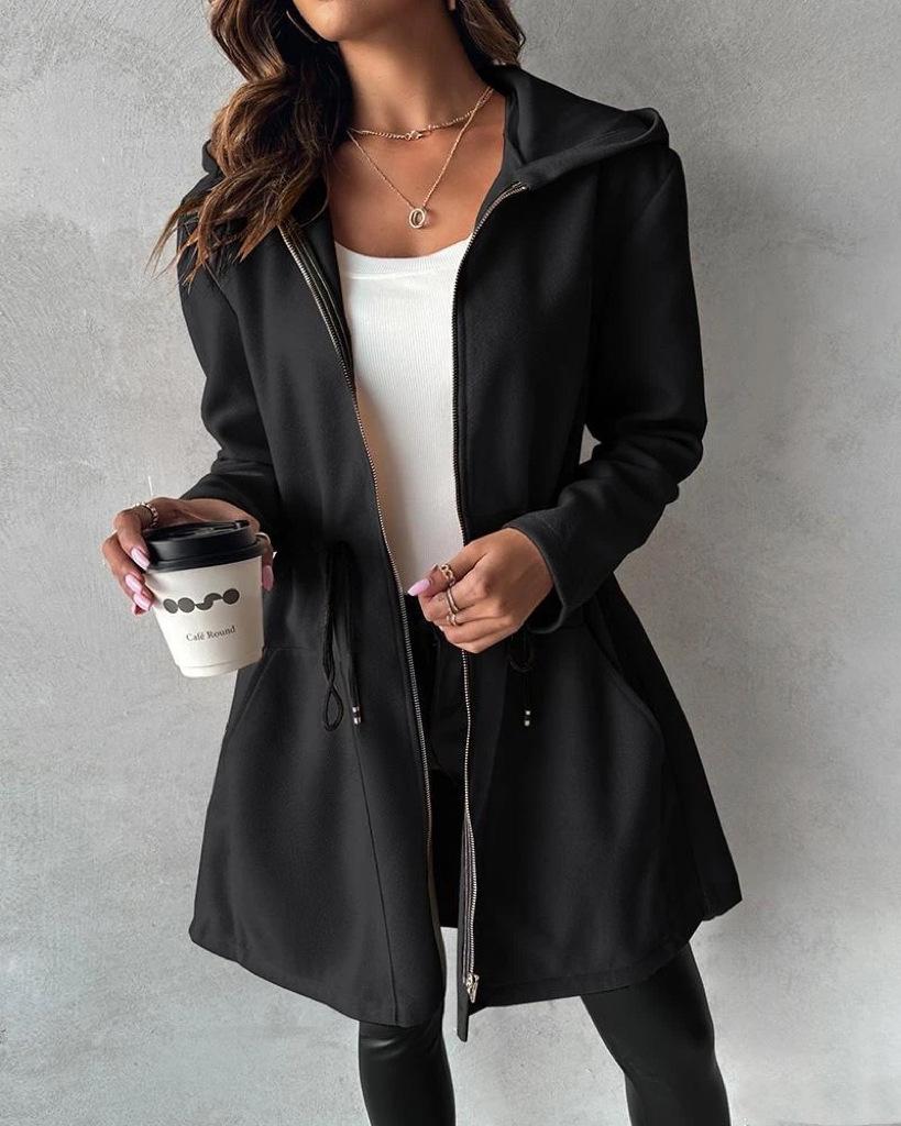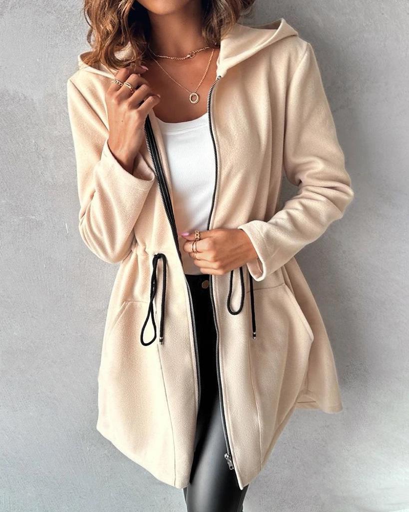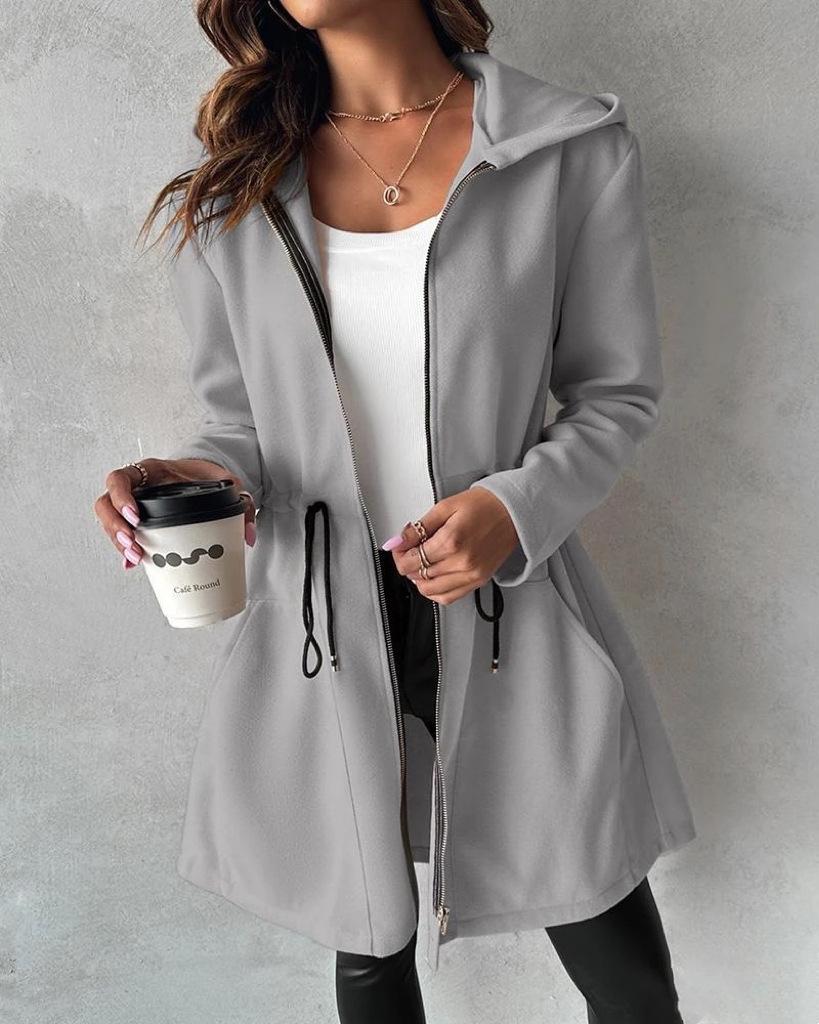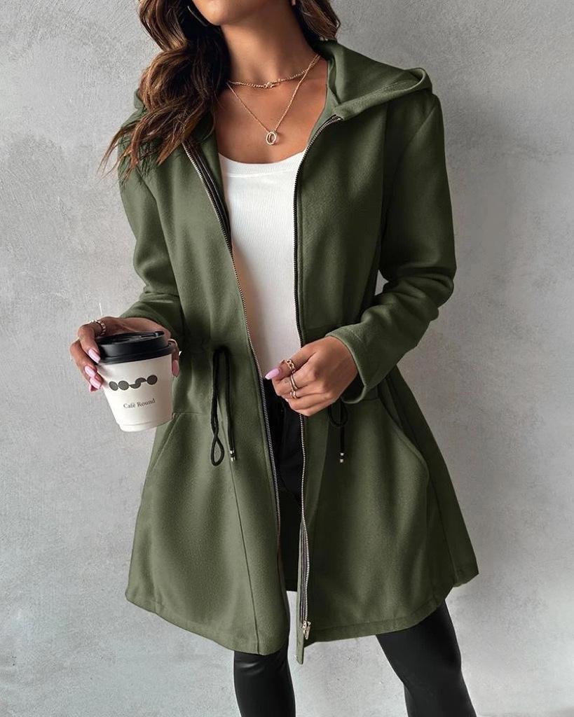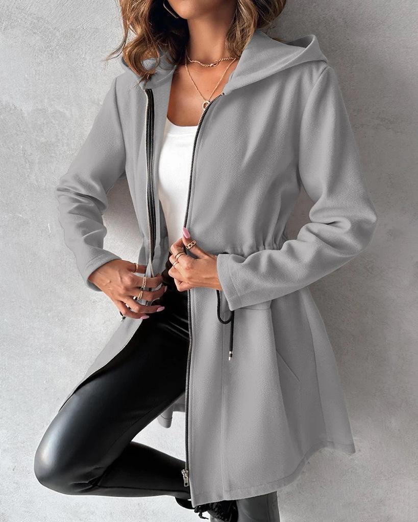 2024 Europa y América Amazon Transfronterizo Casual Chaqueta con Capucha Cremallera Color Sólido Sudadera Chaqueta de Lana Abrigo