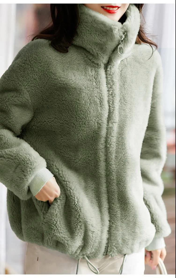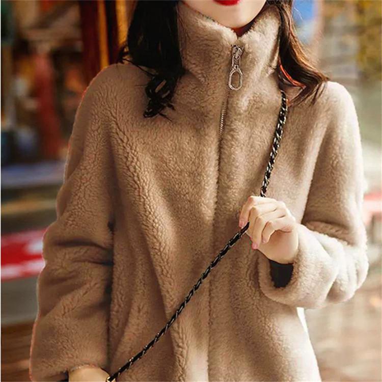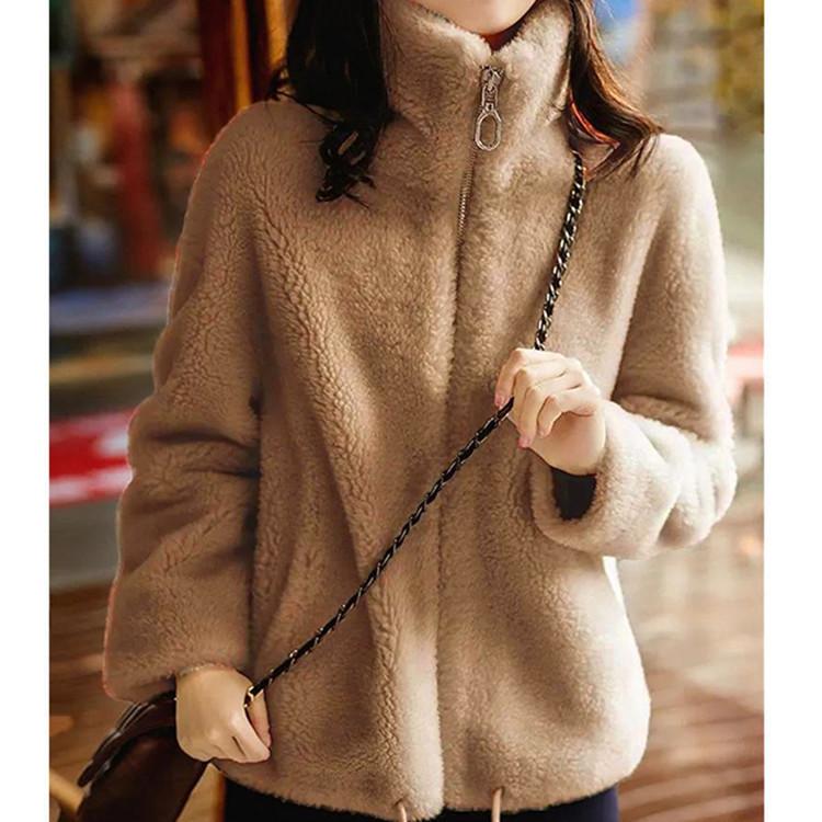2023 otoño e invierno Nuevo suéter de cremallera de forro polar coral para mujer, forrado de vellón grueso, vellón de doble cara, cálido, cuello alto, abrigo de moda