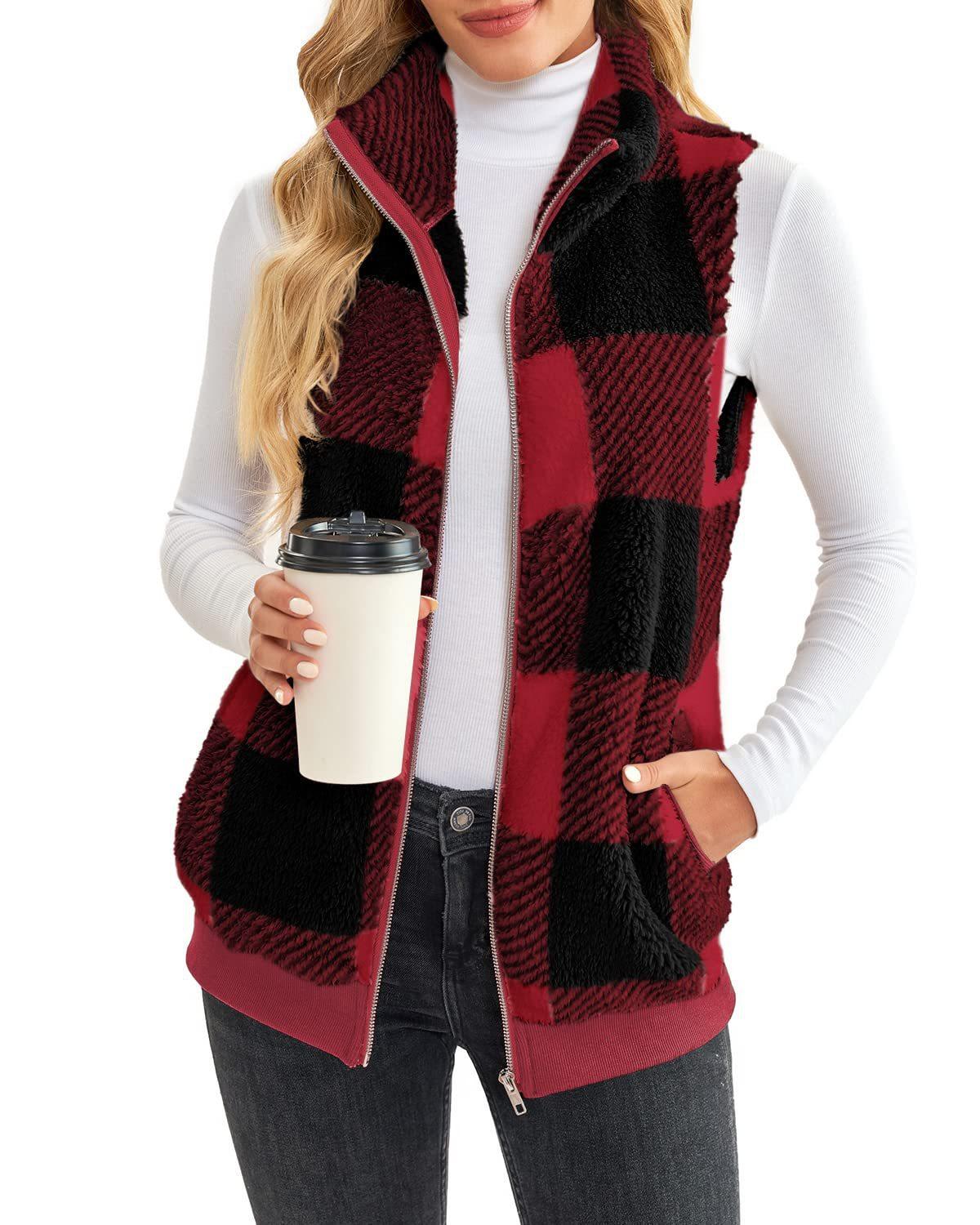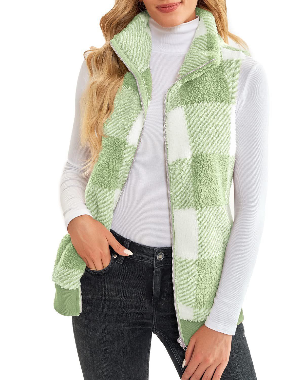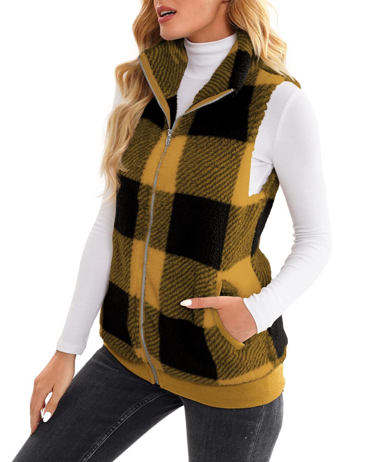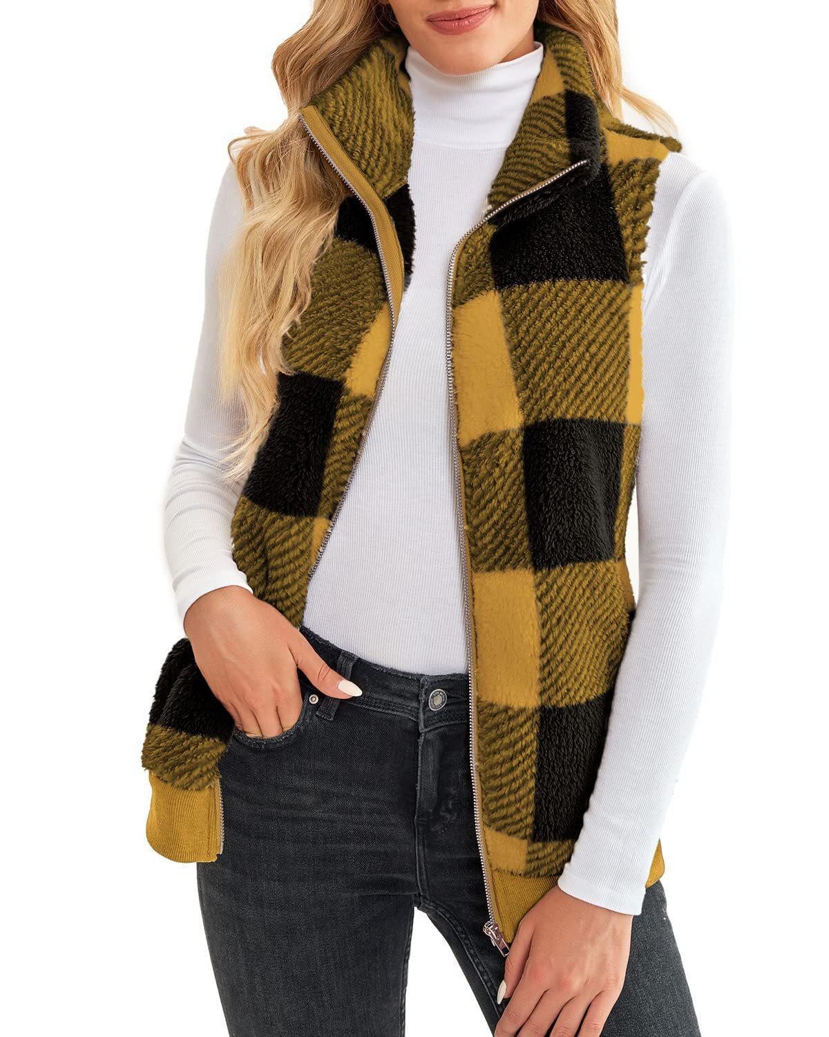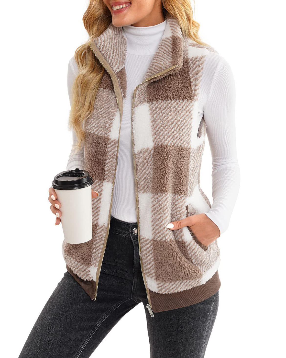 Chaleco Cárdigan de Gamuza a Cuadros Europeo y Americano de Gran Venta de Amazon Cuello Alto Sin Mangas Cómodo Retro para Mujer Chaqueta Chaleco