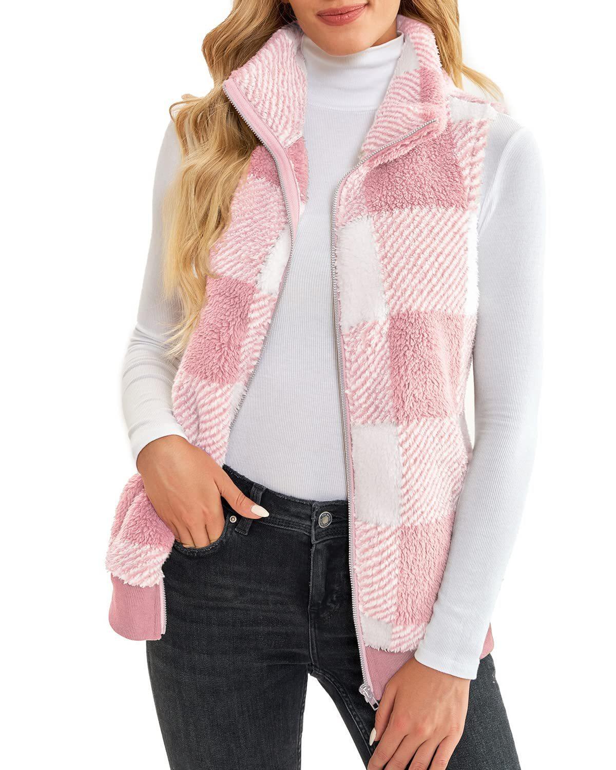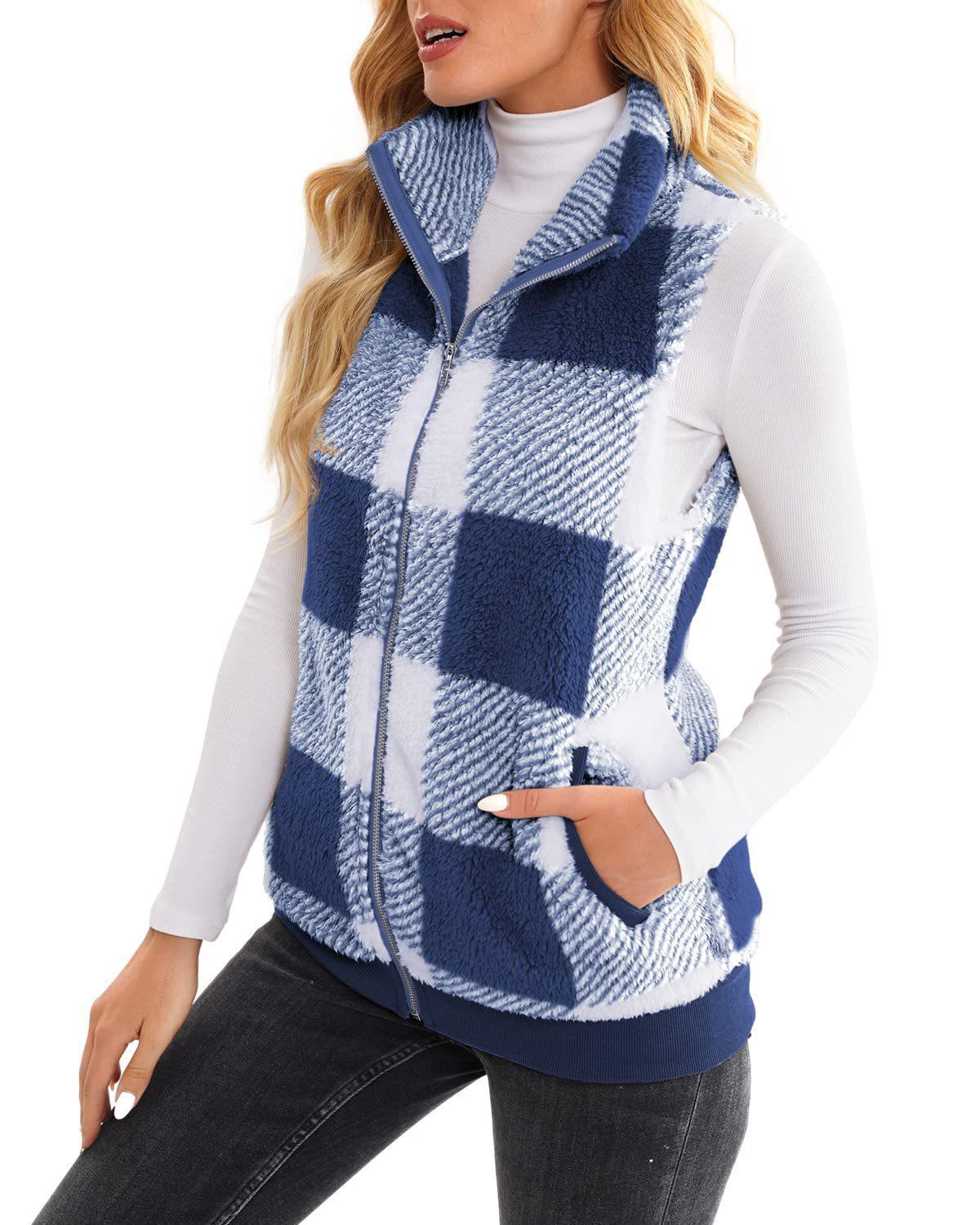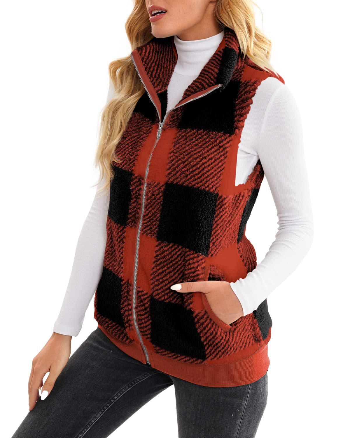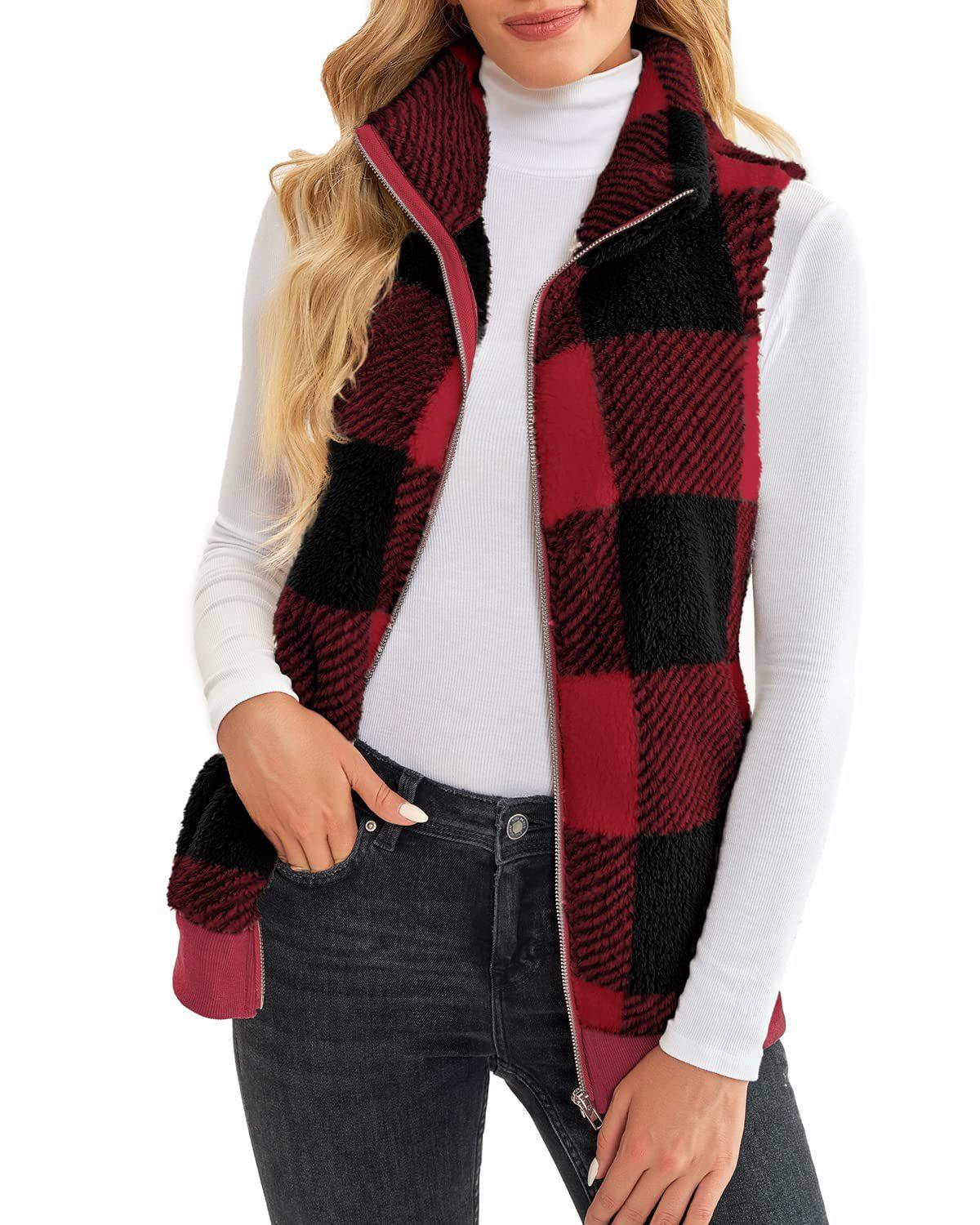 Chaleco Cárdigan de Gamuza a Cuadros Europeo y Americano de Gran Venta de Amazon Cuello Alto Sin Mangas Cómodo Retro para Mujer Chaqueta Chaleco