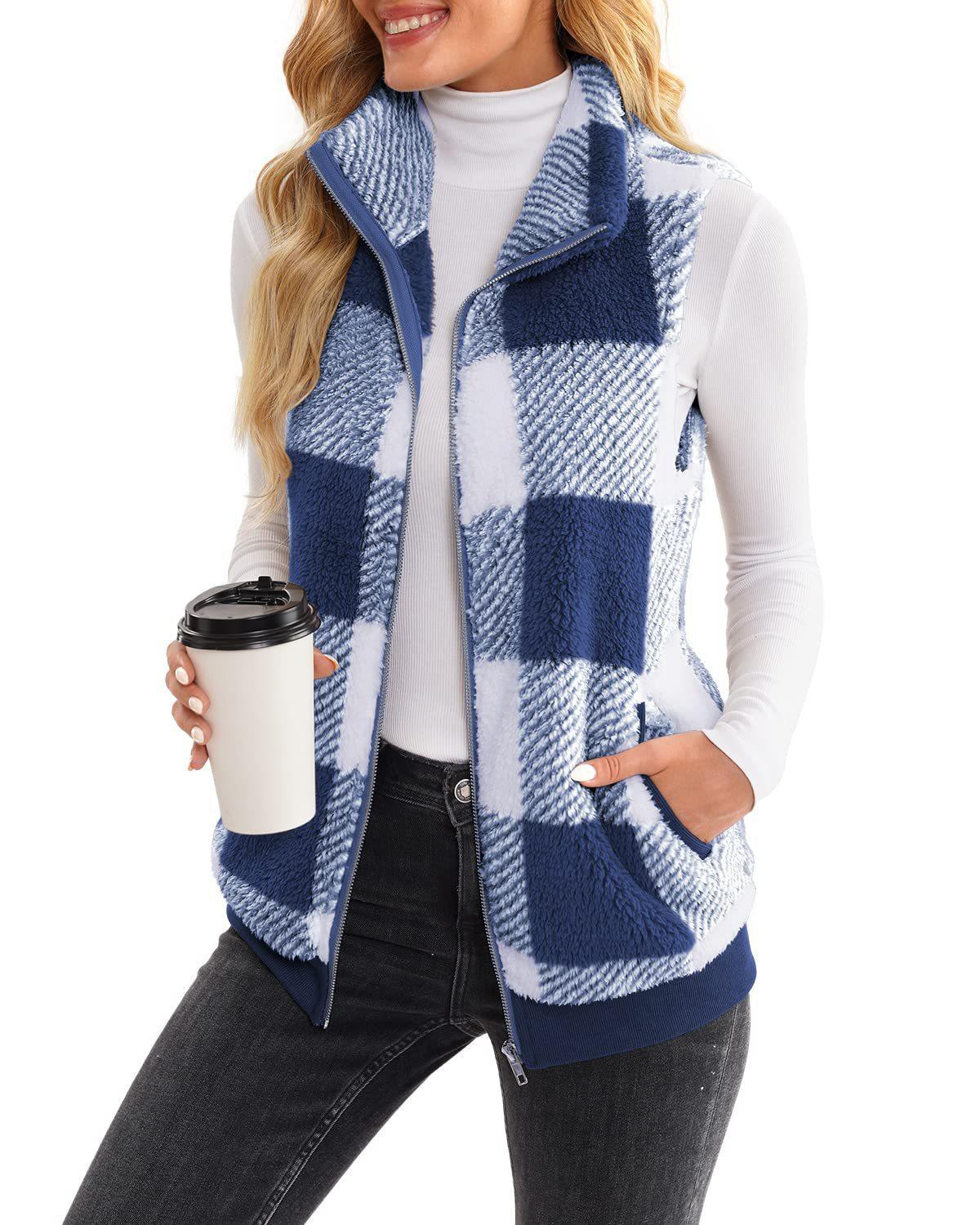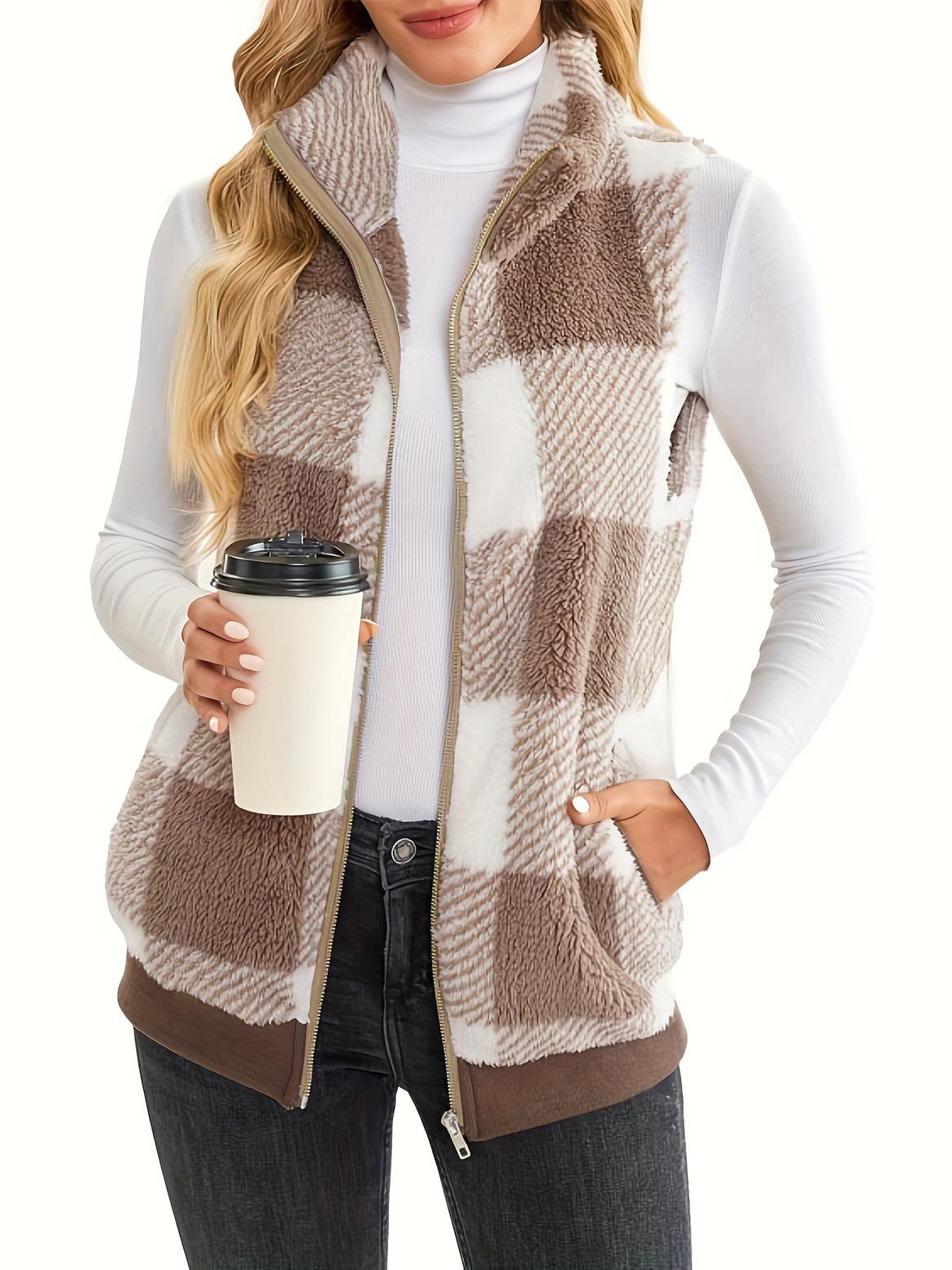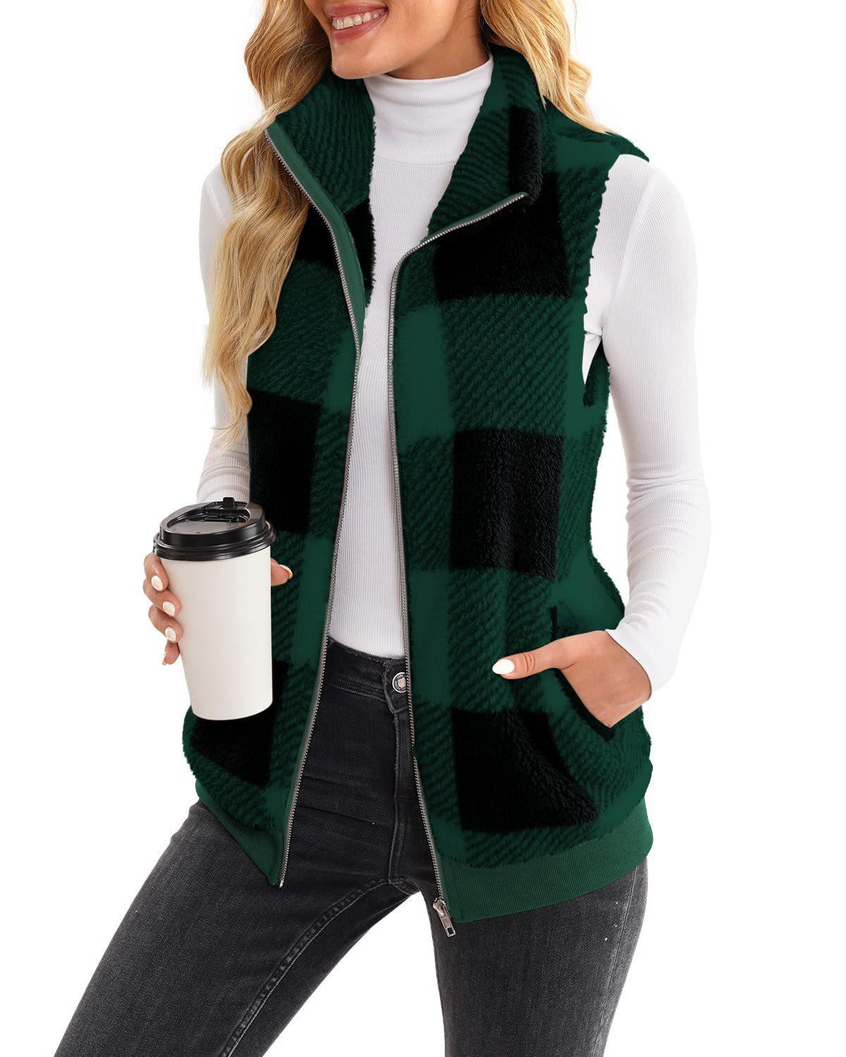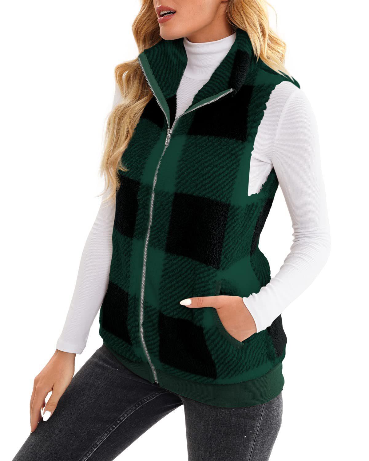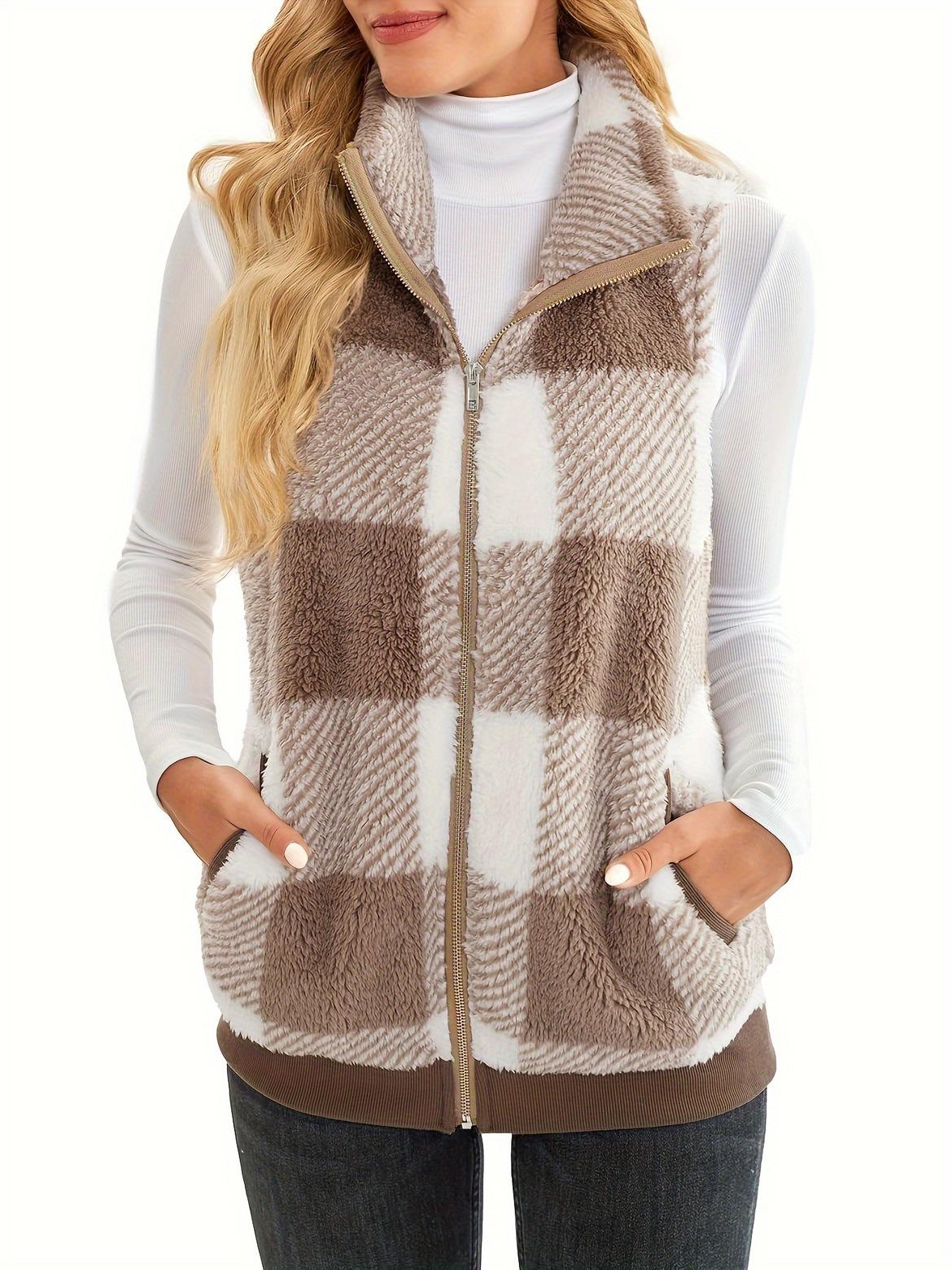 Chaleco Cárdigan de Gamuza a Cuadros Europeo y Americano de Gran Venta de Amazon Cuello Alto Sin Mangas Cómodo Retro para Mujer Chaqueta Chaleco