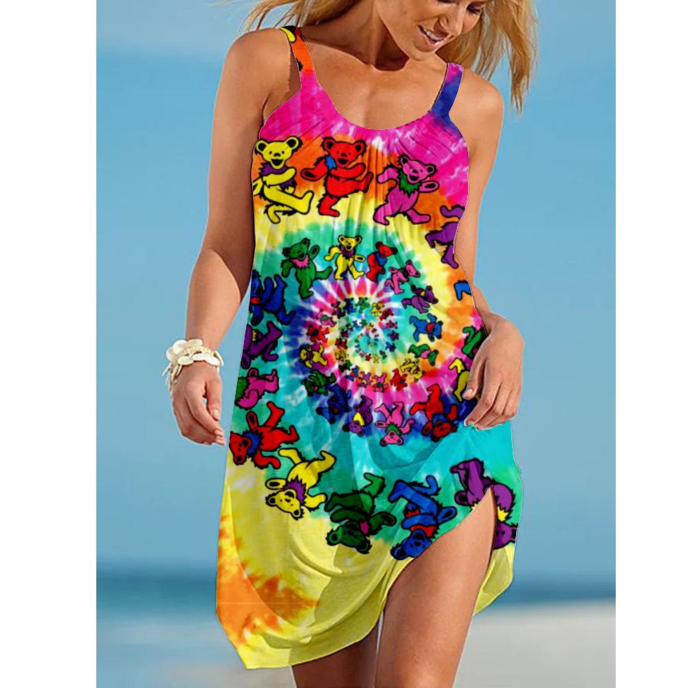 Vestido de Tirantes sin Mangas para Mujer Verano Nuevo 2024 Europeo y Americano Vestido Midi de Vuelo Grande Vestido de Tirantes para Playa