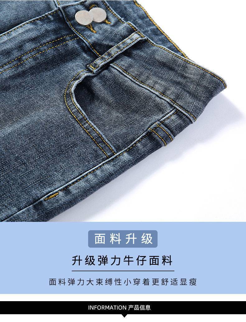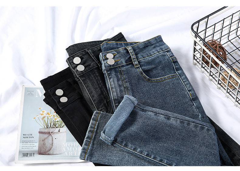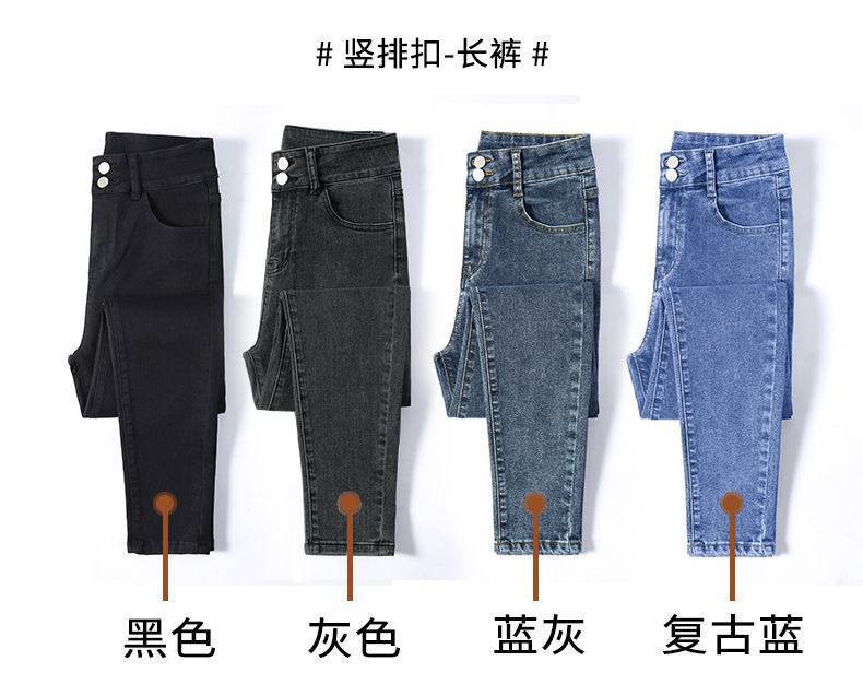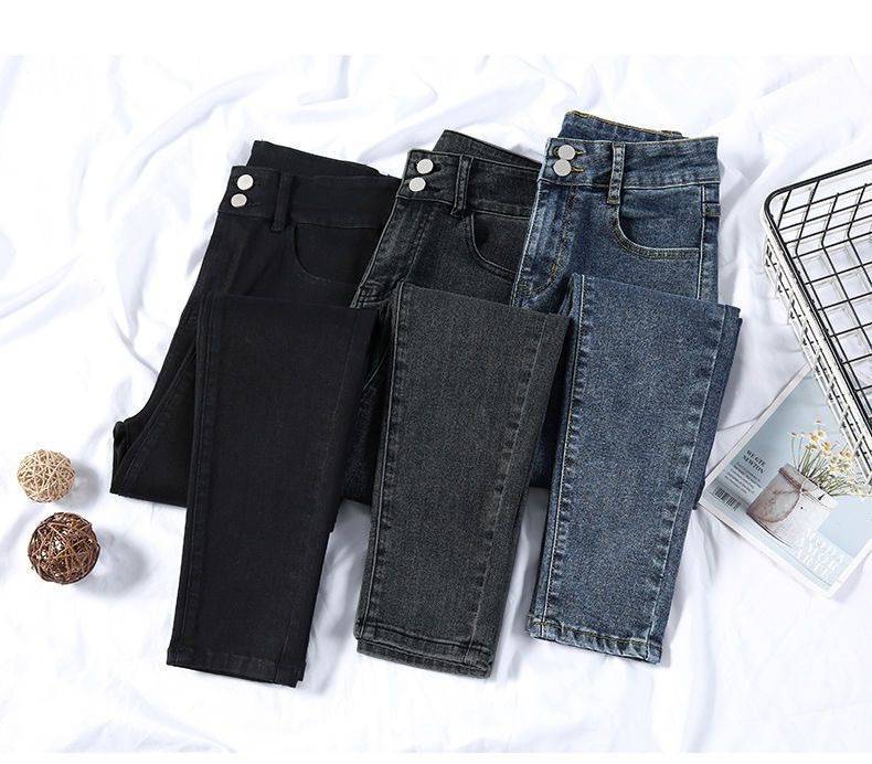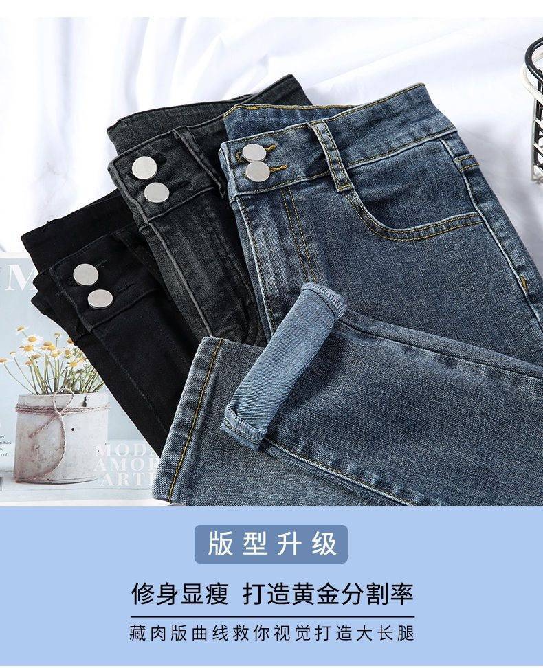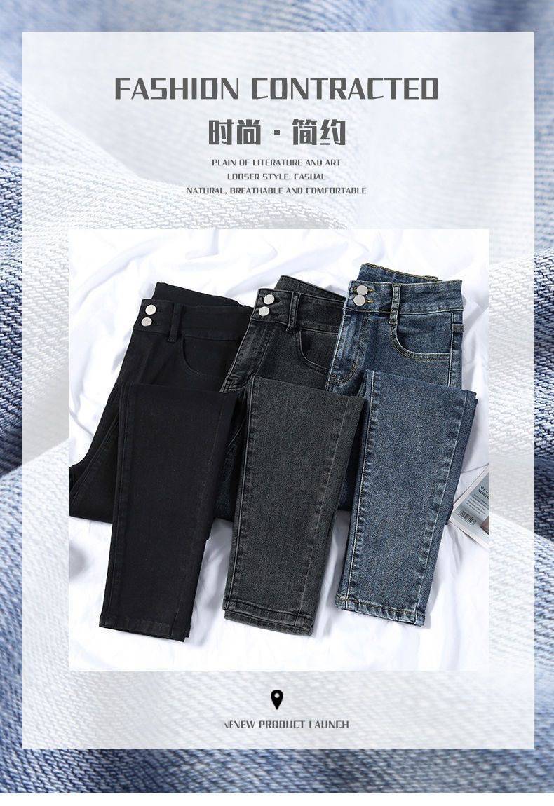 Jeans azules retro para mujer Primavera y Otoño Nuevo estilo coreano cintura alta elásticos pantalones pitillo versátiles corte ajustado pantalones lápiz ropa exterior