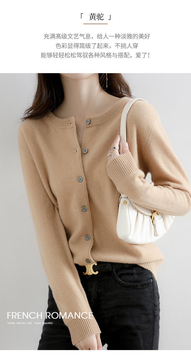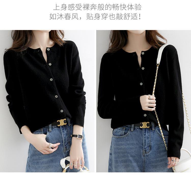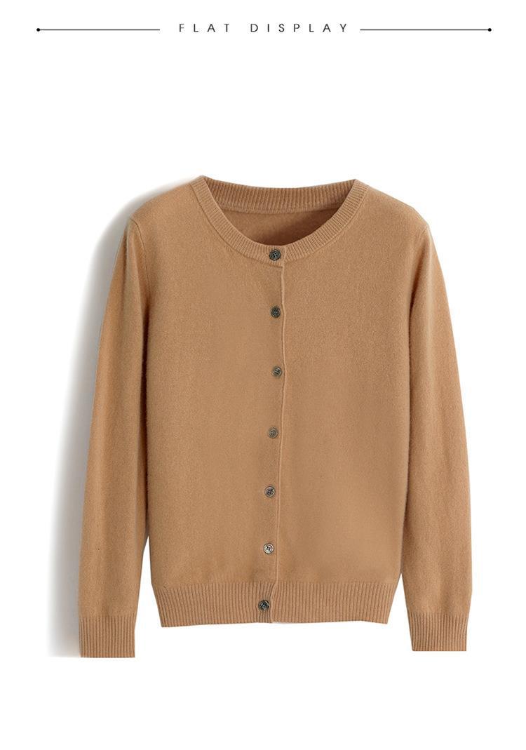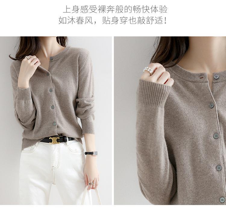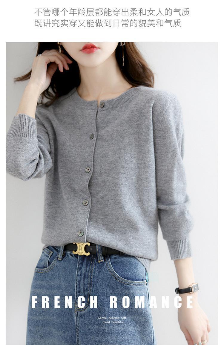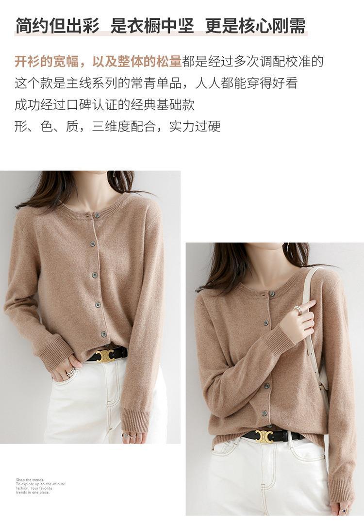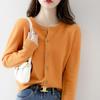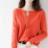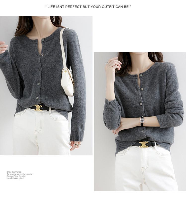 Cárdigan de punto con cuello redondo y suave encerado para mujer, chaqueta holgada de color liso, chaqueta de manga larga de otoño para mujer
