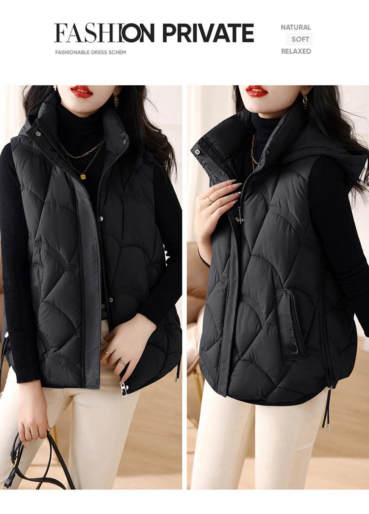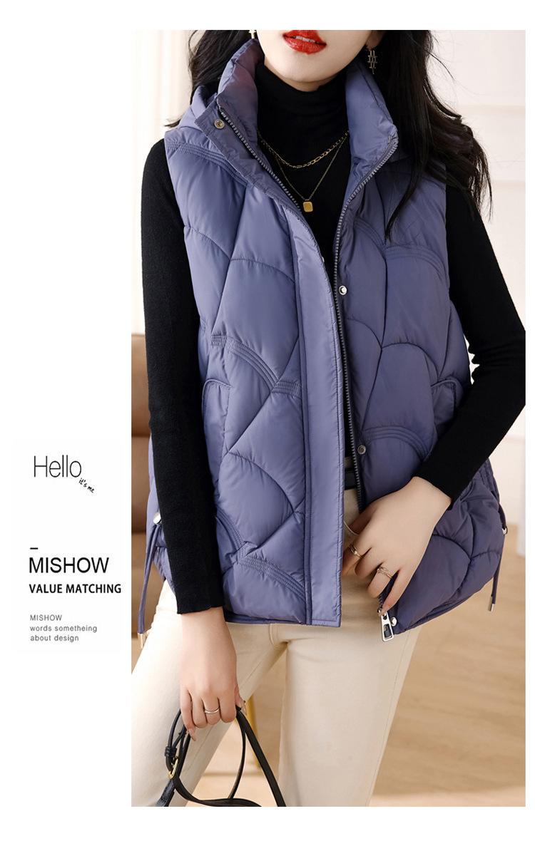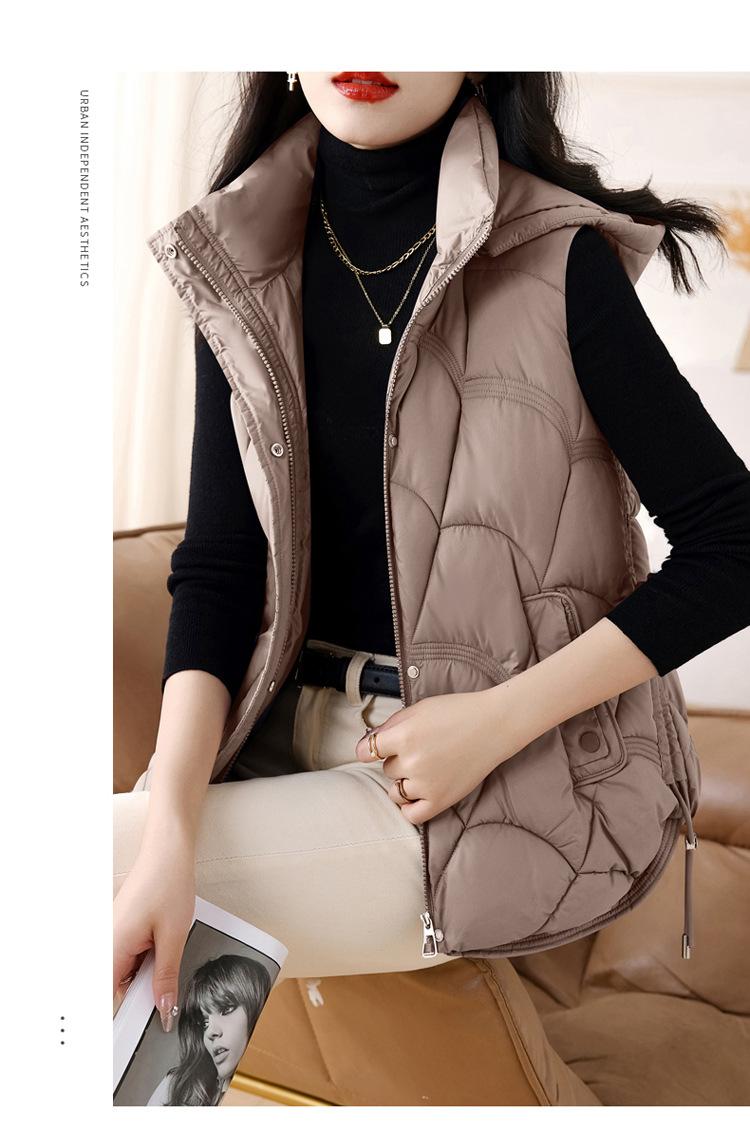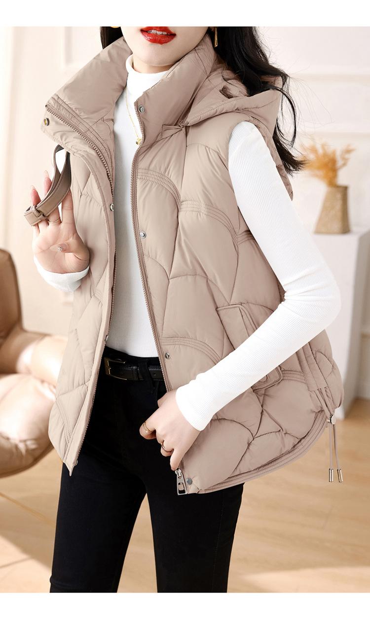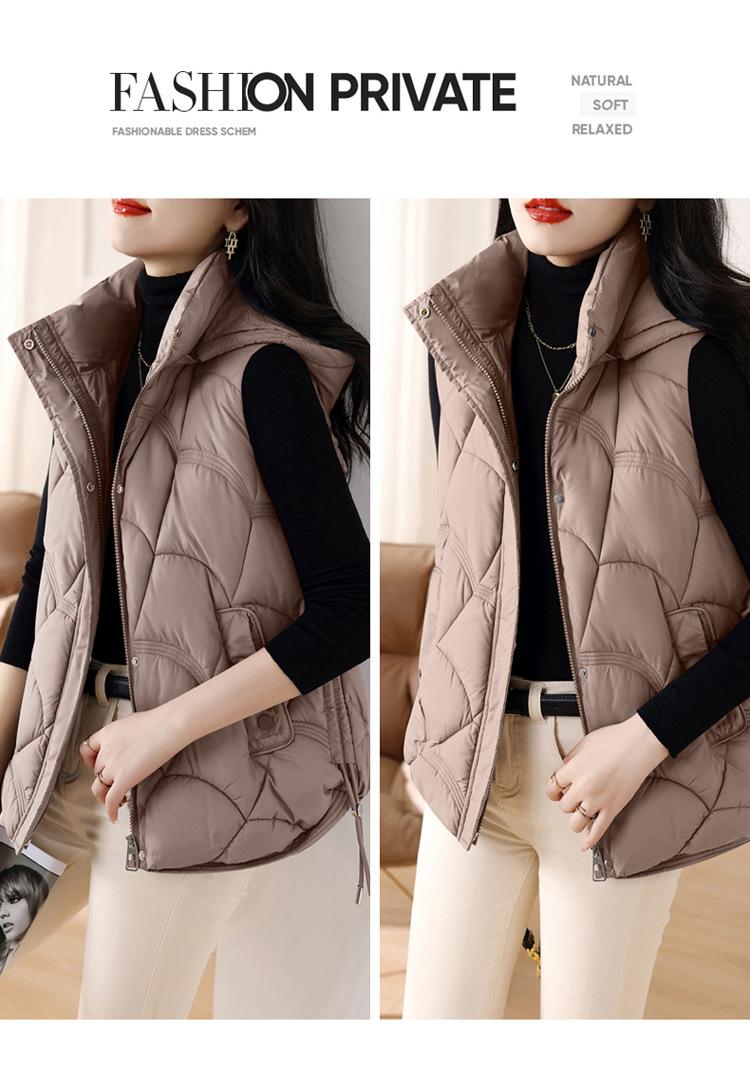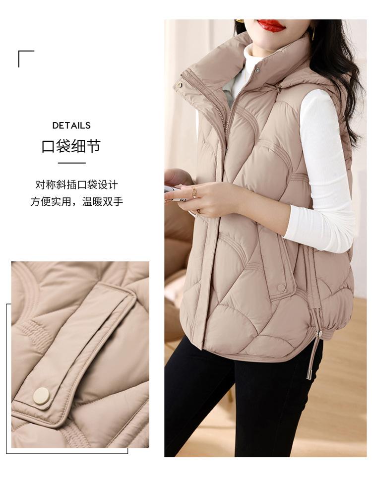 Chaqueta de plumón de algodón para mujer, otoño e invierno 2024, nuevo y elegante, con cuello de algodón, chaleco corto de plumón.