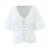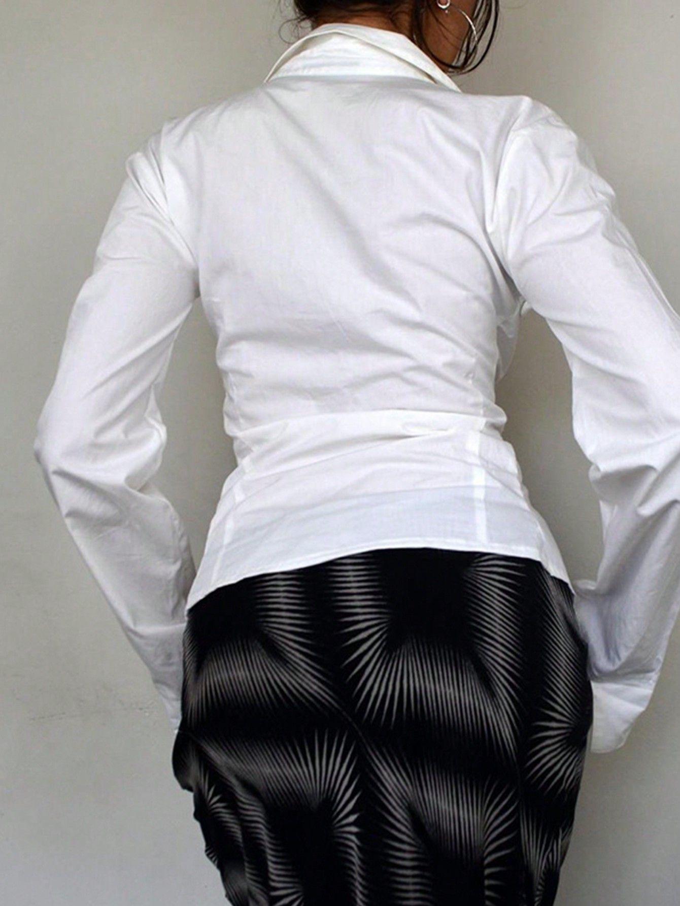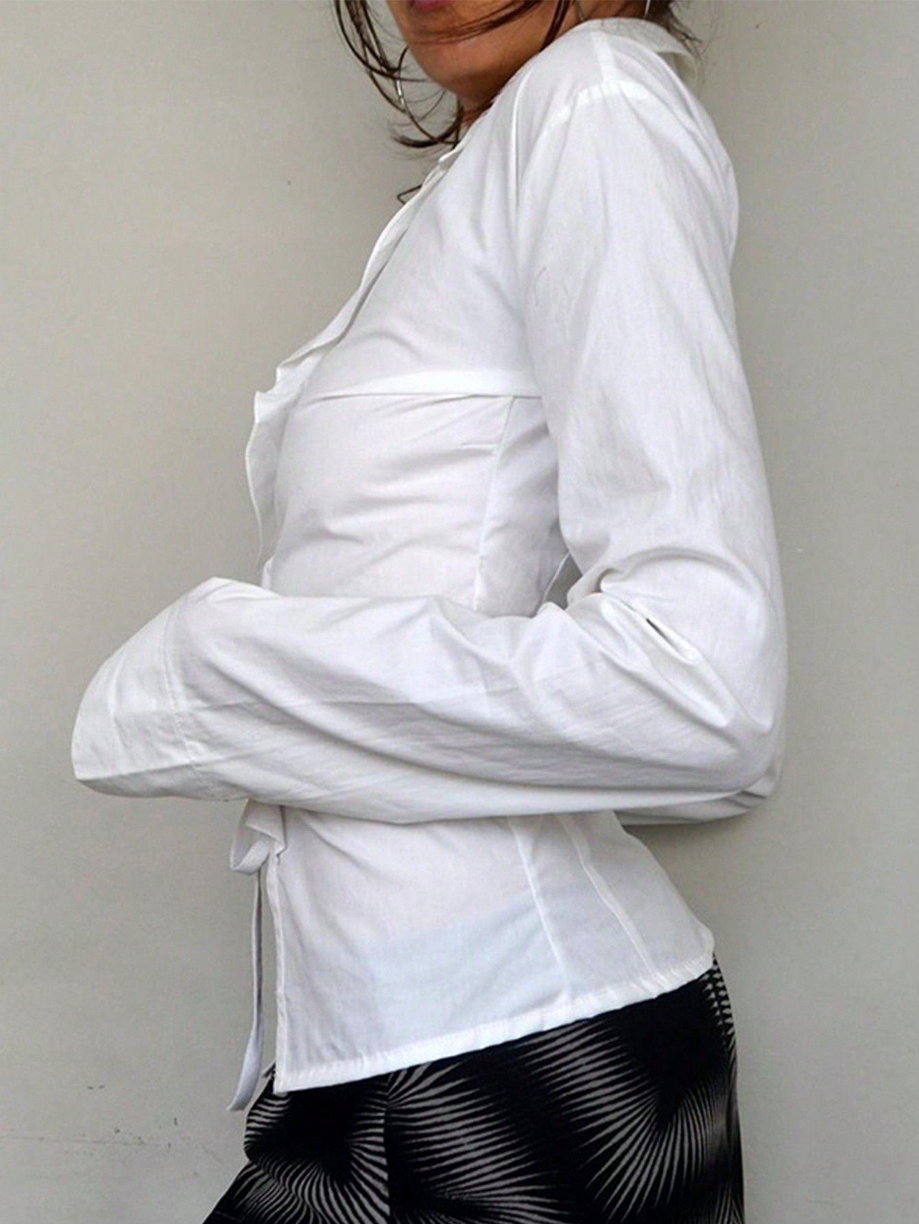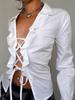 Camisa Sexy de Tirantes Huecos con Solapa con Volantes de Manga Larga Europea y Americana Transfronteriza, Color Sólido, Cintura Ajustada, Adelgazante, Elegante Top para Mujer
