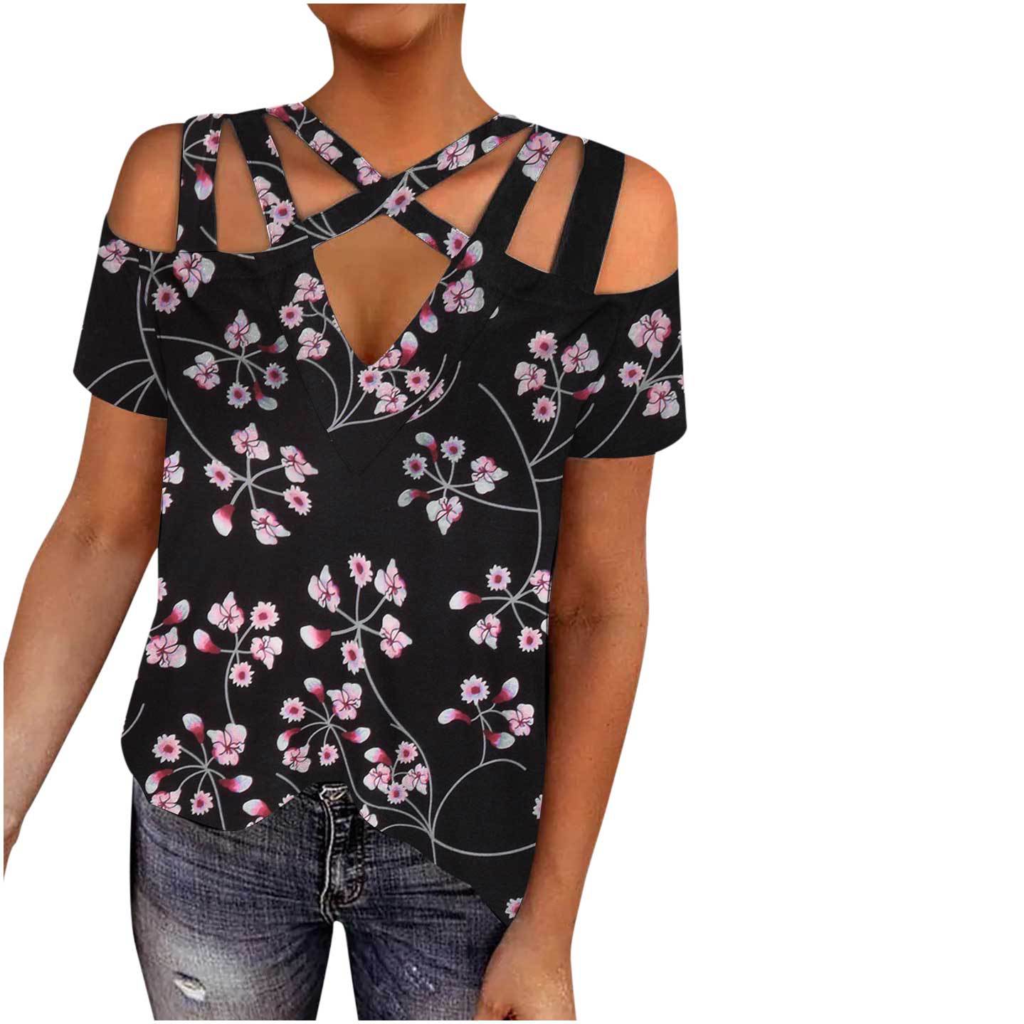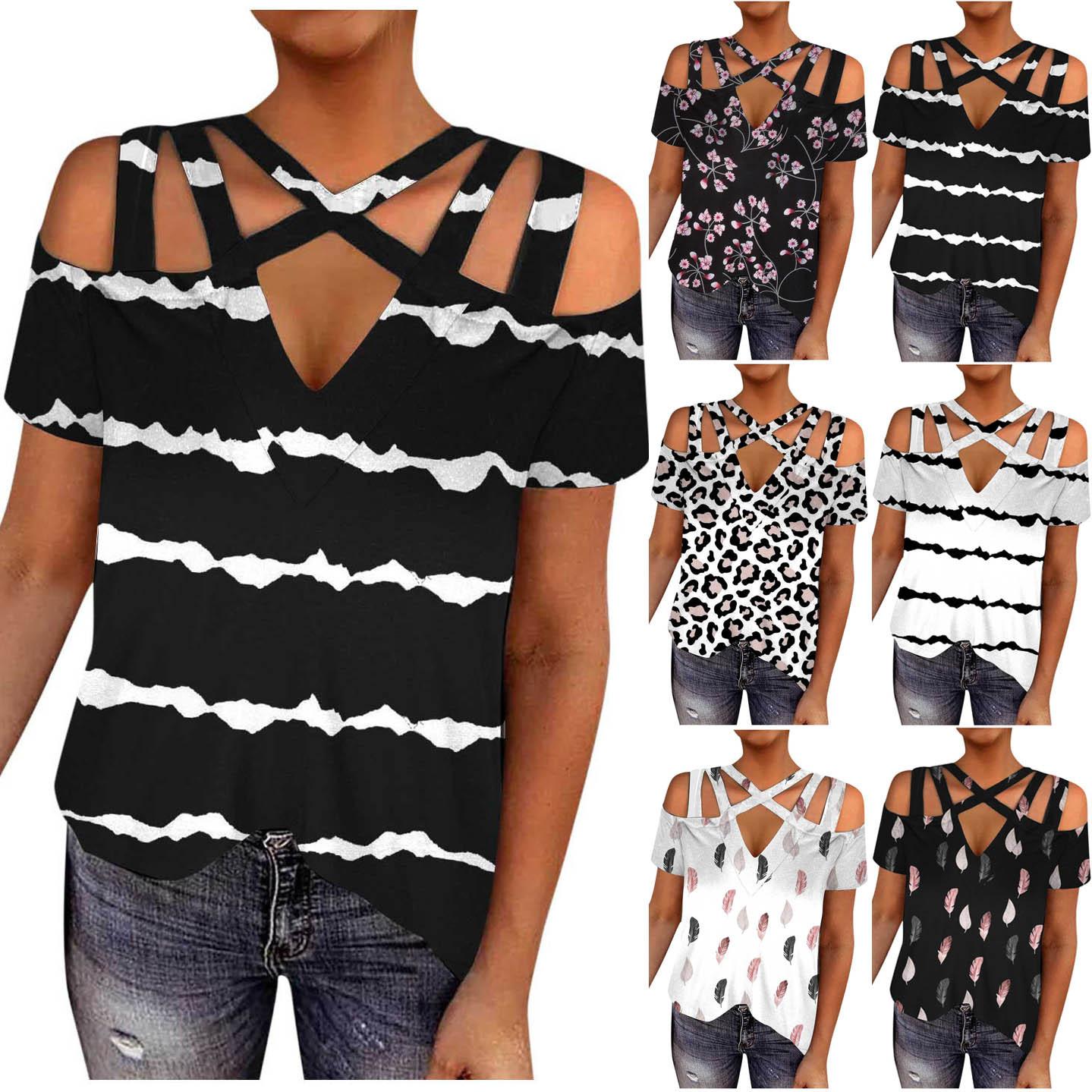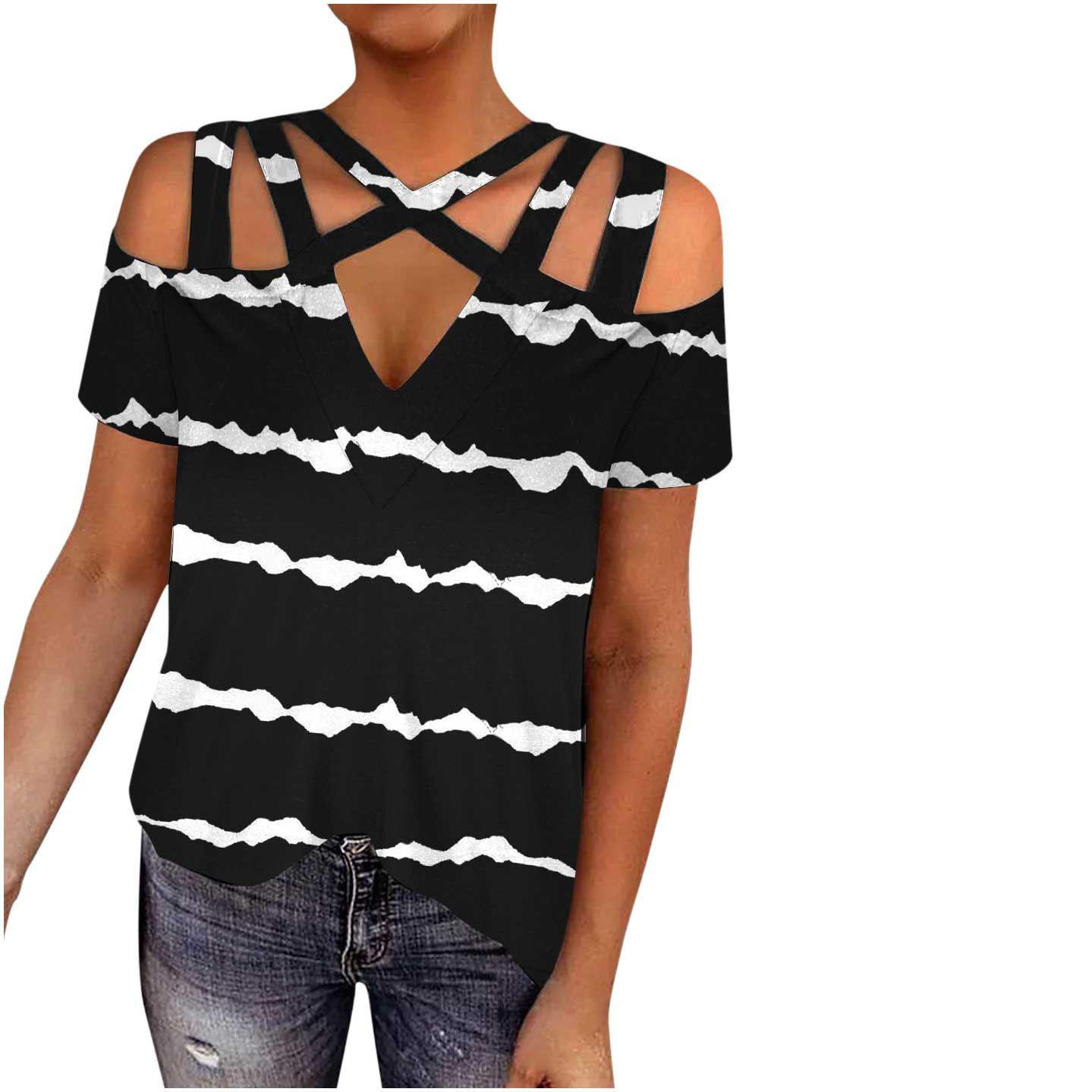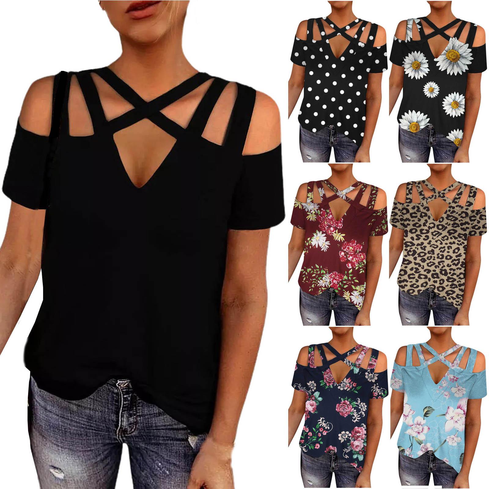 Camiseta de manga corta europea y americana para mujer, de verano, Amazon Cross-border, nueva, con cuello en V, color liso, holgada, informal, para mujer