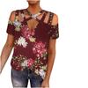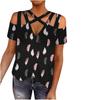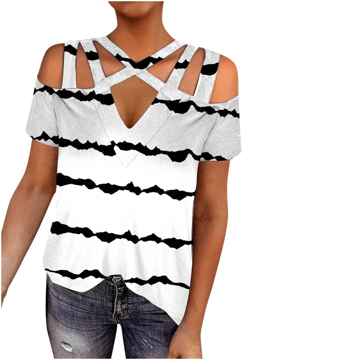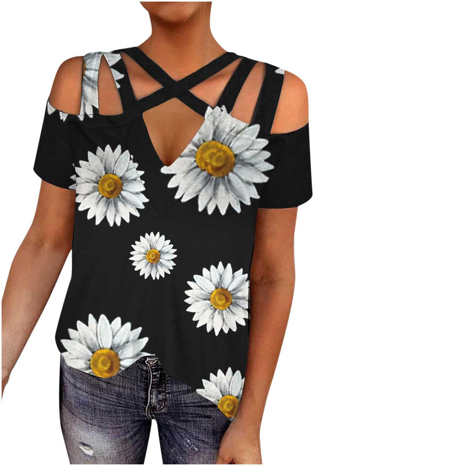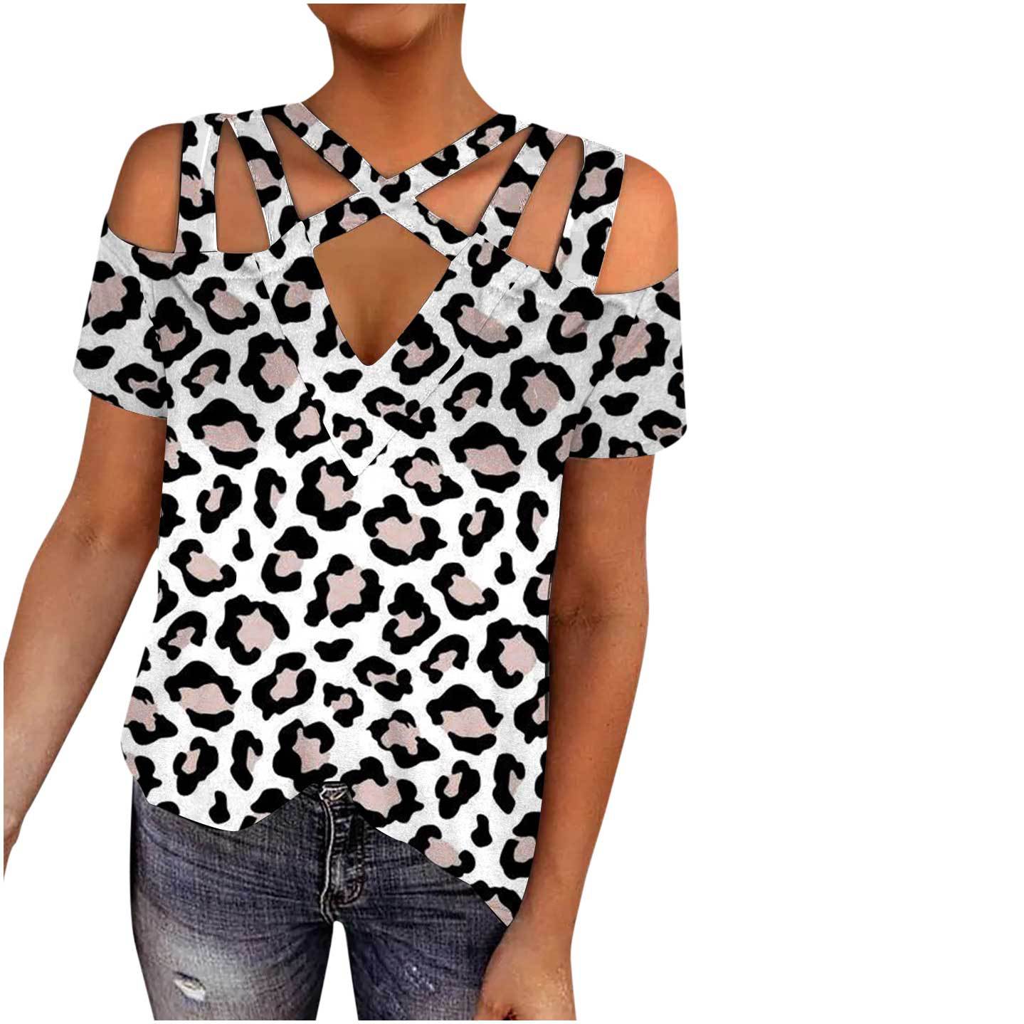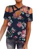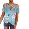 Camiseta de manga corta europea y americana para mujer, de verano, Amazon Cross-border, nueva, con cuello en V, color liso, holgada, informal, para mujer