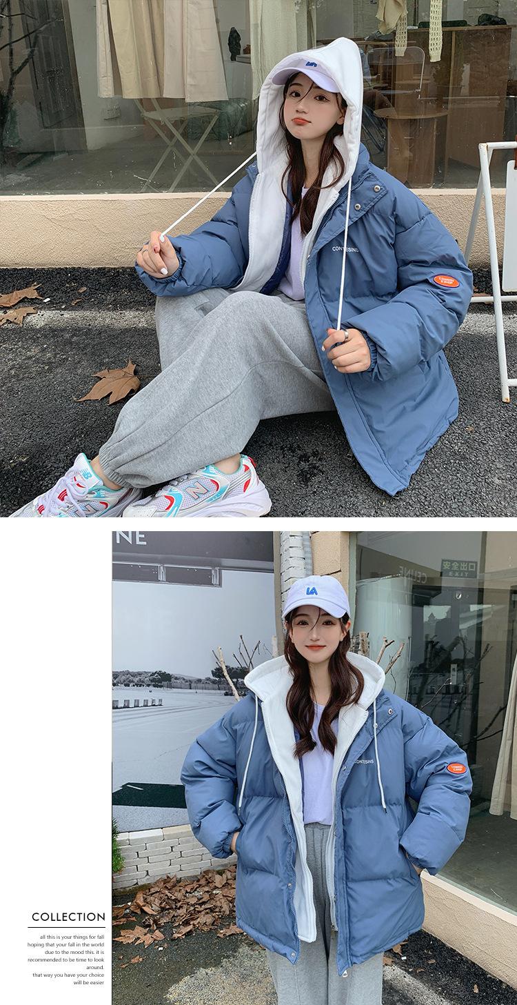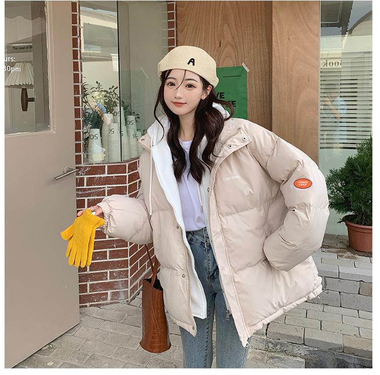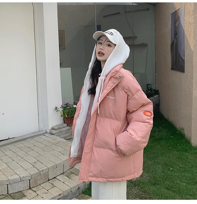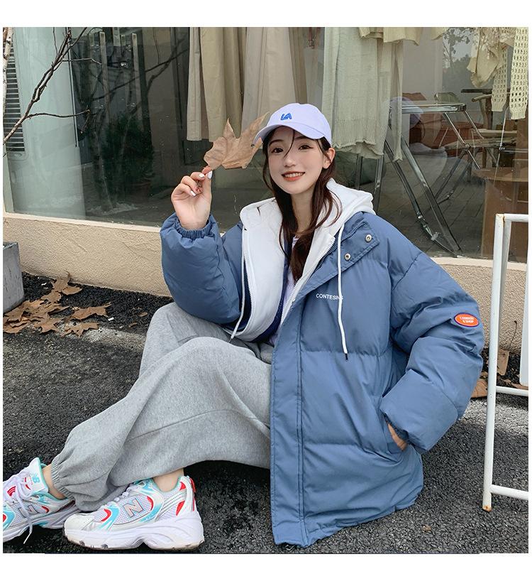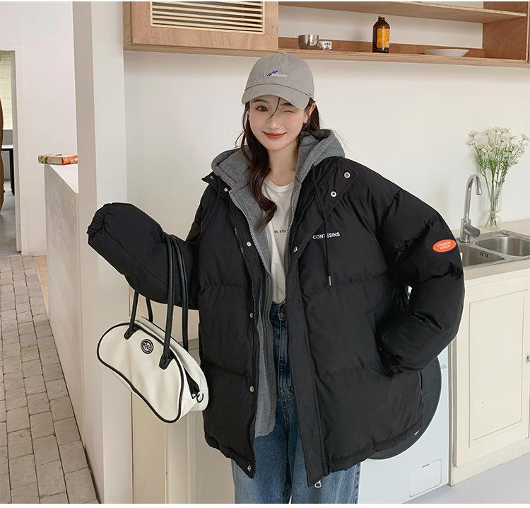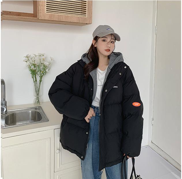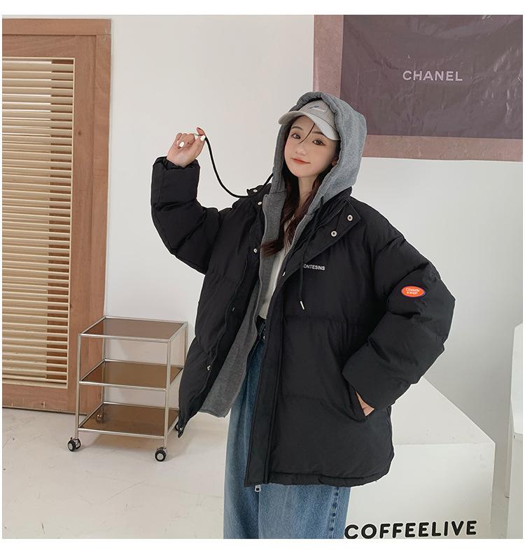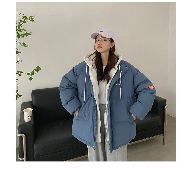 Chaqueta acolchada de plumón para mujer abrigo de invierno 2022 nueva versión coreana de chaqueta acolchada de algodón suelta pan corta falsa de dos piezas chaqueta acolchada de algodón