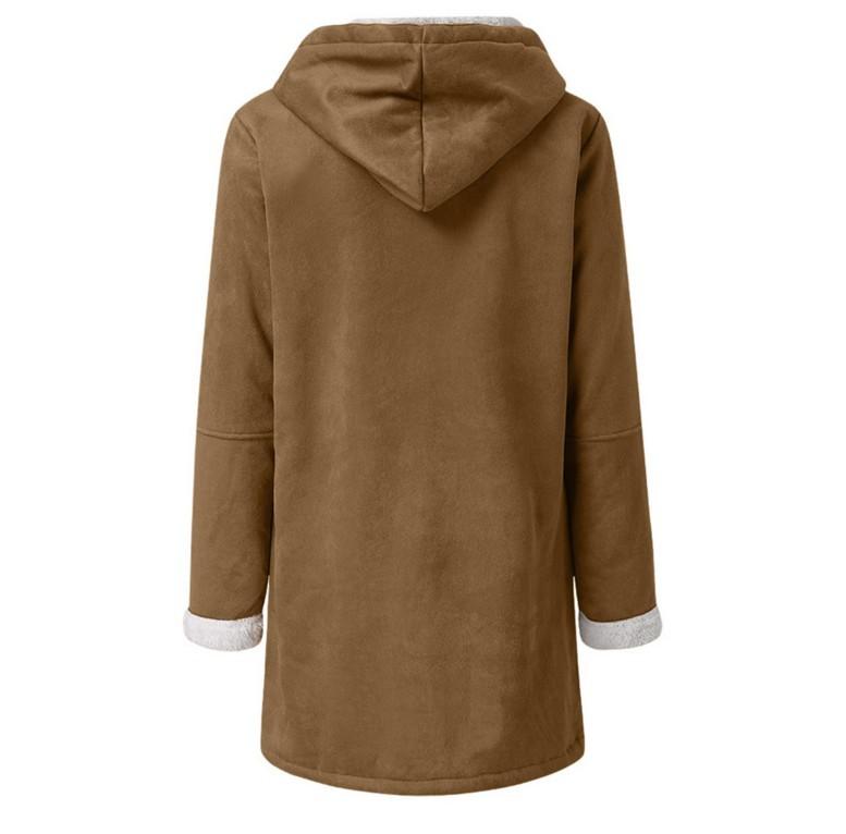Cárdigan informal con botones, color sólido, transfronterizo de Amazon, cálido, de longitud media, con capucha y bolsillo, para mujer, estilo europeo y americano 2021