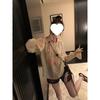 El cuello y los puños de la camisa están incrustados con exquisito encaje de algodón