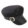 Boina de lana negra estilo coreano para hombre y mujer, sombrero militar retro británico de copa plana, gorra casual con visera, moderna para otoño e invierno