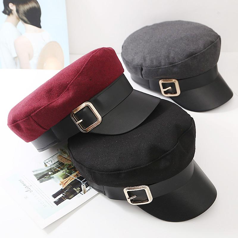 Beret belt military cap-Gray, Beret belt military cap-wine red, Beret belt military cap-Black