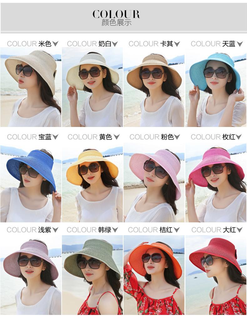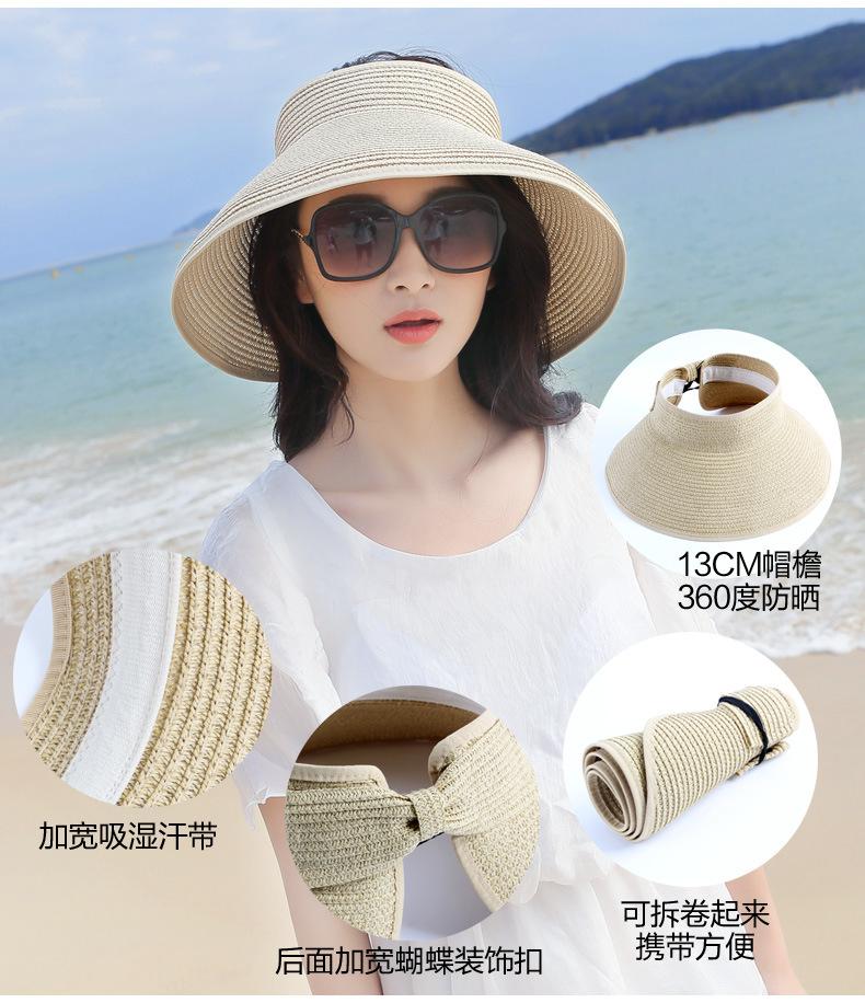 Sombrero de verano para mujer Sombrero para el sol protección solar sombrero de playa portátil para exteriores sombrero para el sol ala grande plegable copa vacía sombrero de paja