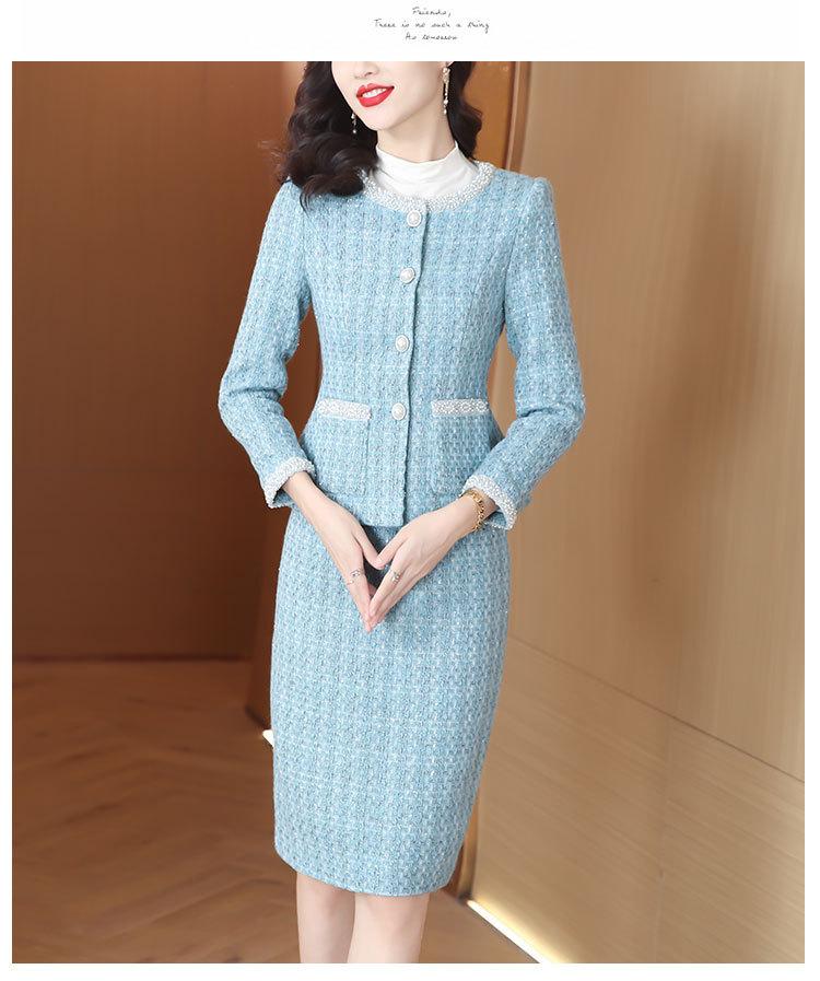 Conjunto de dos piezas de garantía de calidad talla grande estilo Chanel retro corte entallado adelgazante Otoño Nuevo traje casual de moda elegante