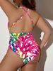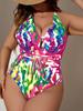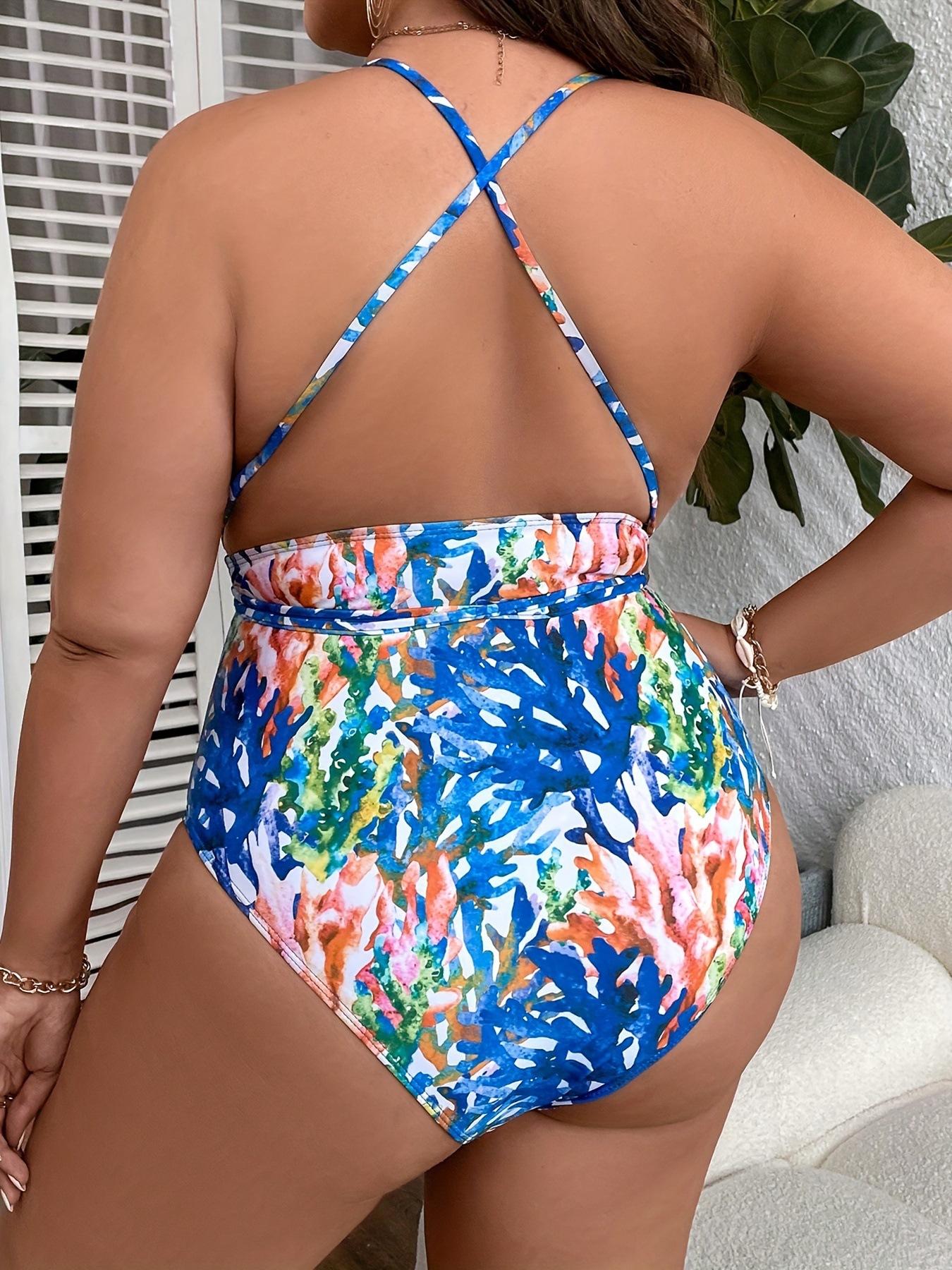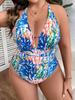 Bikini de una pieza de talla grande con estampado de color y escote en V profundo, sexy, sin espalda, para mujer, comercio exterior europeo y americano, 2025