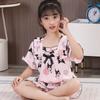 Pijamas de verano para niños, nuevos, de manga corta, de seda helada, para niñas, con aire acondicionado, conjunto de ropa para el hogar con solapa de dibujos animados para niñas pequeñas
