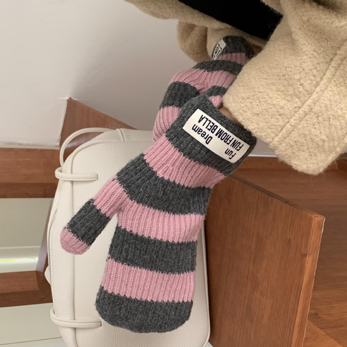 Guantes de Punto de Lana Estilo Coreano Otoño e Invierno Cálidos a Rayas Estudiante Pareja Combinan con Todo Lindos Guantes a la Moda a Prueba de Frío