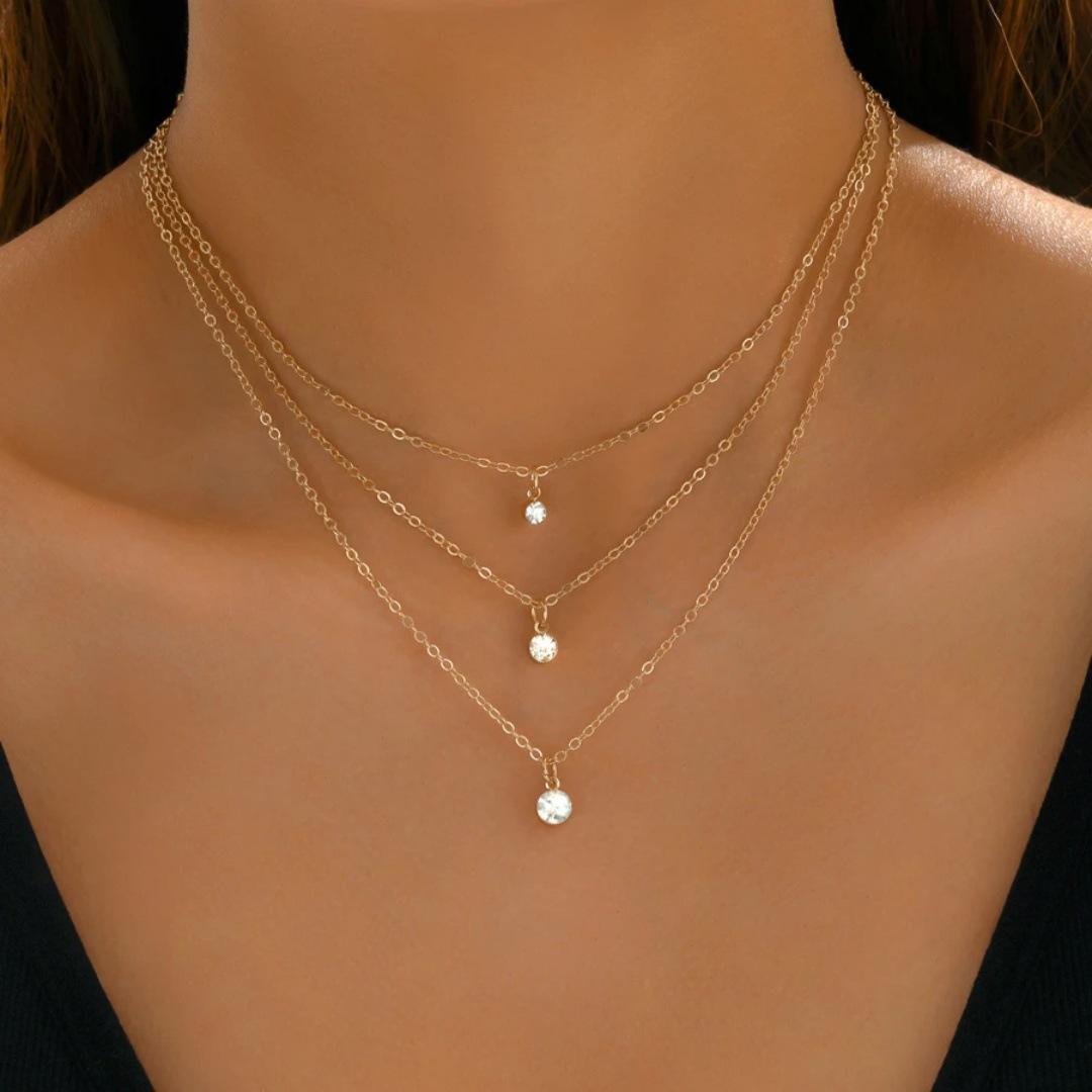 Collar con colgante de diamantes de imitación multicapa con personalidad de moda transfronteriza de Europa y Estados Unidos, cadena de clavícula de diamantes sexy con temperamento femenino al por mayor